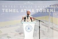 Diyanet İşleri Başkanımız Prof. Dr. Ali Erbaş konuşmasında Cami ve Camia kelimelerinin kökenlerine değinerek Cami'nin ibadet edilen, bir araya gelinen yer olduğunu Camia’nın ise Arapça’da üniversite anlamına geldiğini, dolayısıyla Cami ve Camia’nın bugün temeli atılan Üniversite Camii ile anlam bütünlüğünü yakaladığını ifade etti.