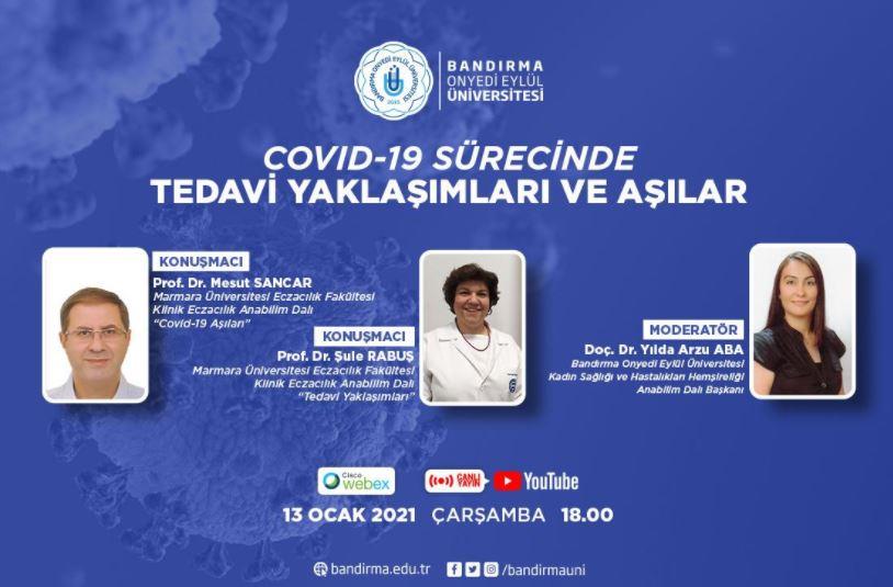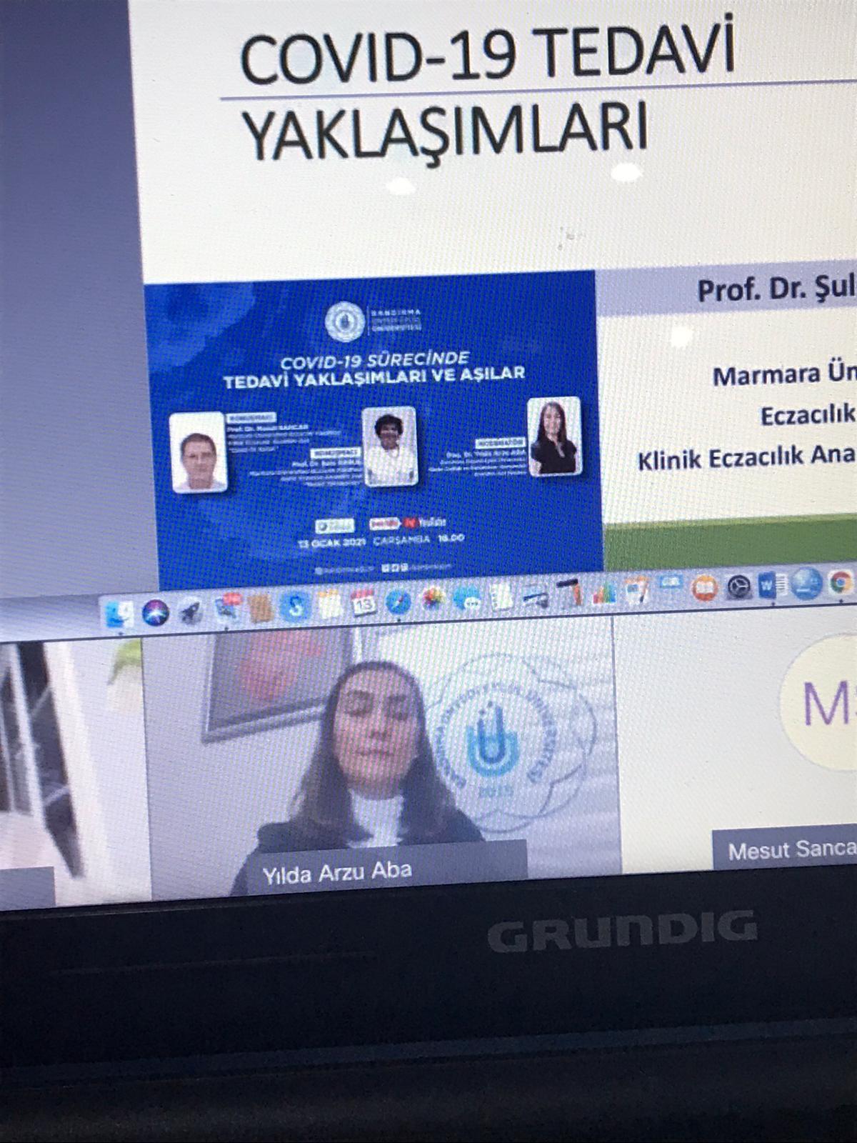 Fakültemiz tarafından 13.01.2021 Çarşamba günü saat 18.00’da “Covid-19 Sürecinde Tedavi Yaklaşımları ve Aşılar” konulu panel düzenlendi. Cisco Webex üzerinden ve Üniversitemiz Youtube kanalından canlı olarak yayınlanan ve moderatörlüğünü Sağlık Bilimleri Fakültesi Hemşirelik Bölümü Öğretim Üyemiz Doç. Dr. Yılda Arzu Aba’nın yaptığı panelde Marmara Üniversitesi Eczacılık Fakültesi Öğretim Üyeleri Prof. Dr. Mesut SANCAR ile Prof. Dr. Şule RABUŞ Covid-19-Sürecinde Tedavi Yaklaşımları ve Aşılar konusunda en güncel bilgileri katılımcılar ile paylaştılar.