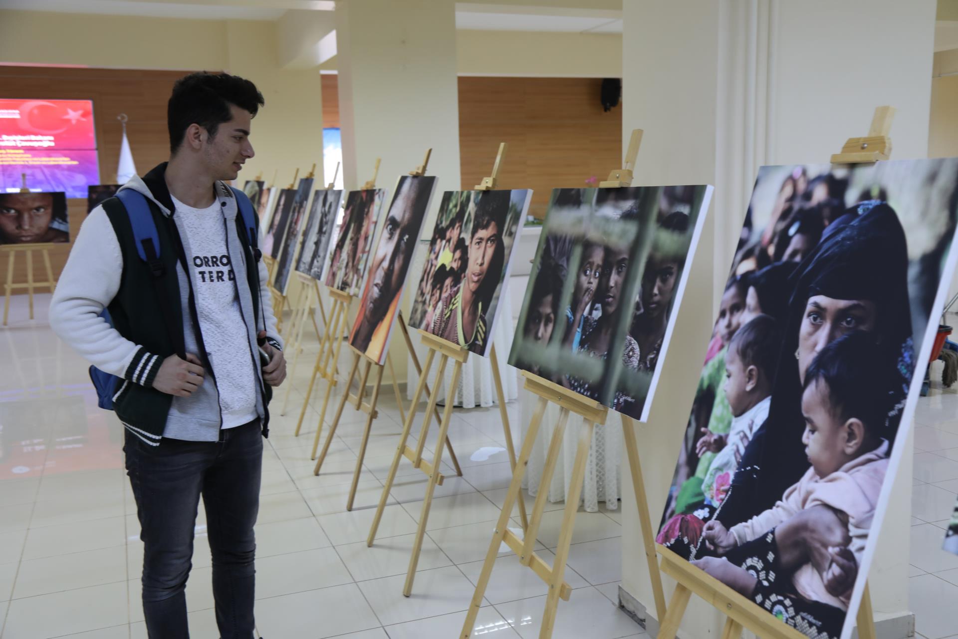 Karşılama töreni ardından Rektörlük Fuaye Alanımızda, Dışişleri Bakanımız Sayın Mevlüt Çavuşoğlu tarafından Üniversitemiz Fotoğrafçısı Edib Kurt’un büyük bir insanlık dramının yaşandığı Arakan’da çekmiş olduğu fotoğraflardan oluşan “Uluslararası Göç ve Mültecilik” temalı “Rohingya’nın Gözleri” (Eyes of Rohingya) adlı fotoğraf sergisi açılışı gerçekleşti.