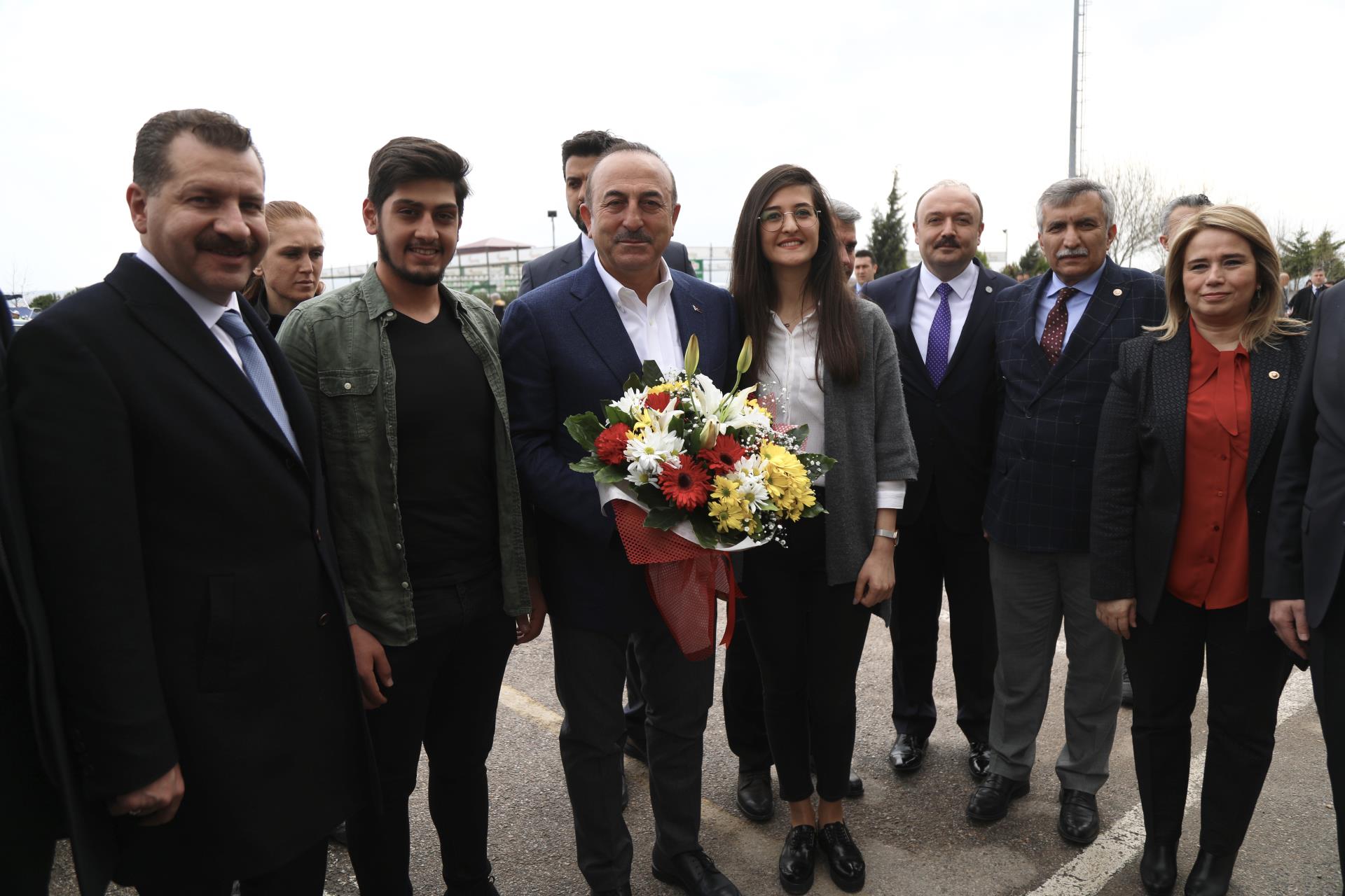 Üniversitemizi teşriflerinde, Rektörümüz Prof. Dr. Süleyman Özdemir ve Balıkesir Valimiz Ersin Yazıcı başta olmak üzere il ve ilçe protokolümüzün Üniversitemiz Rektörlük Binası girişinde karşılama gerçekleştirdiği Dışişleri Bakanımız Sayın Mevlüt Çavuşoğlu’na lisans ve yüksek lisans öğrencilerimiz tarafından çiçek takdiminde bulunuldu.