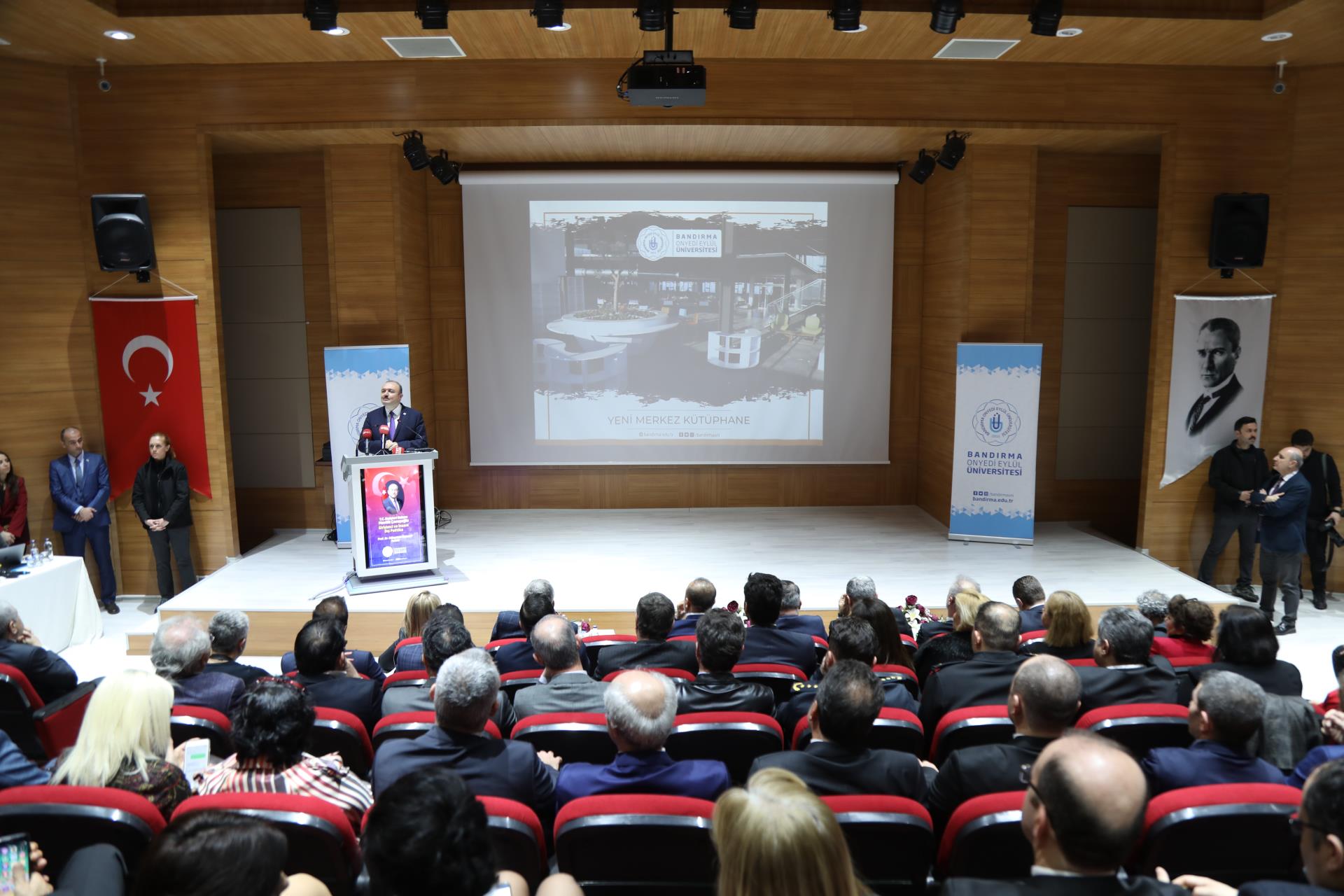 Dışişleri Bakanımız Sayın Mevlüt Çavuşoğlu’nun konuşmalarının ardından program, Rektörümüz Prof. Dr. Süleyman Özdemir’in, Dışişleri Bakanımız Sayın Mevlüt Çavuşoğlu’na günün anısına plaket ve Bandırma Vapuru maketi takdimiyle devam etti.