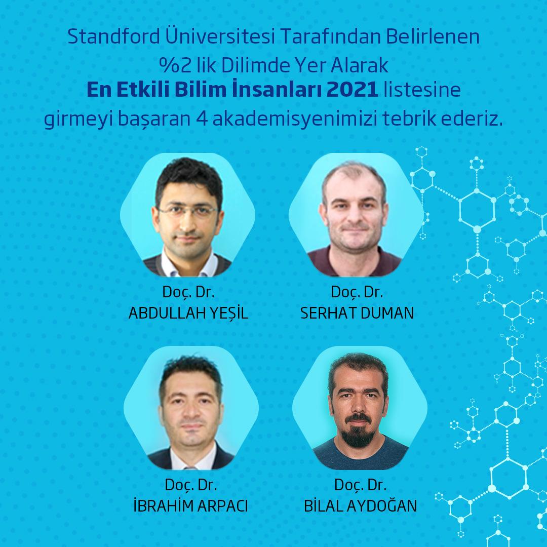 Stanford Üniversitesi bilim insanlarından Prof. Dr. John P.A. IOANNIDIS ve araştırma ekibi tarafından, 22 anabilim dalı ile 176 alt bilim dalında dünyadaki bilim insanı arasından ilk yüzde 2'lik dilime giren 200.409 bilim insanının yer aldığı liste Elsevier veri tabanında yayımlandı. 10 Ekim 2022 tarihinde Stanford Üniversitesi tarafından Elsevier veri tabanında yayımlanan ve 2021 alıntı yılına göre, ilk %2 lik dilimde bulunan "Dünyanın En Etkili Bilim İnsanları" listesi, "Kariyer boyu etki" ve "Yıllık etki (2021 yılı çalışmalar)" olarak iki kategoride listelendi.