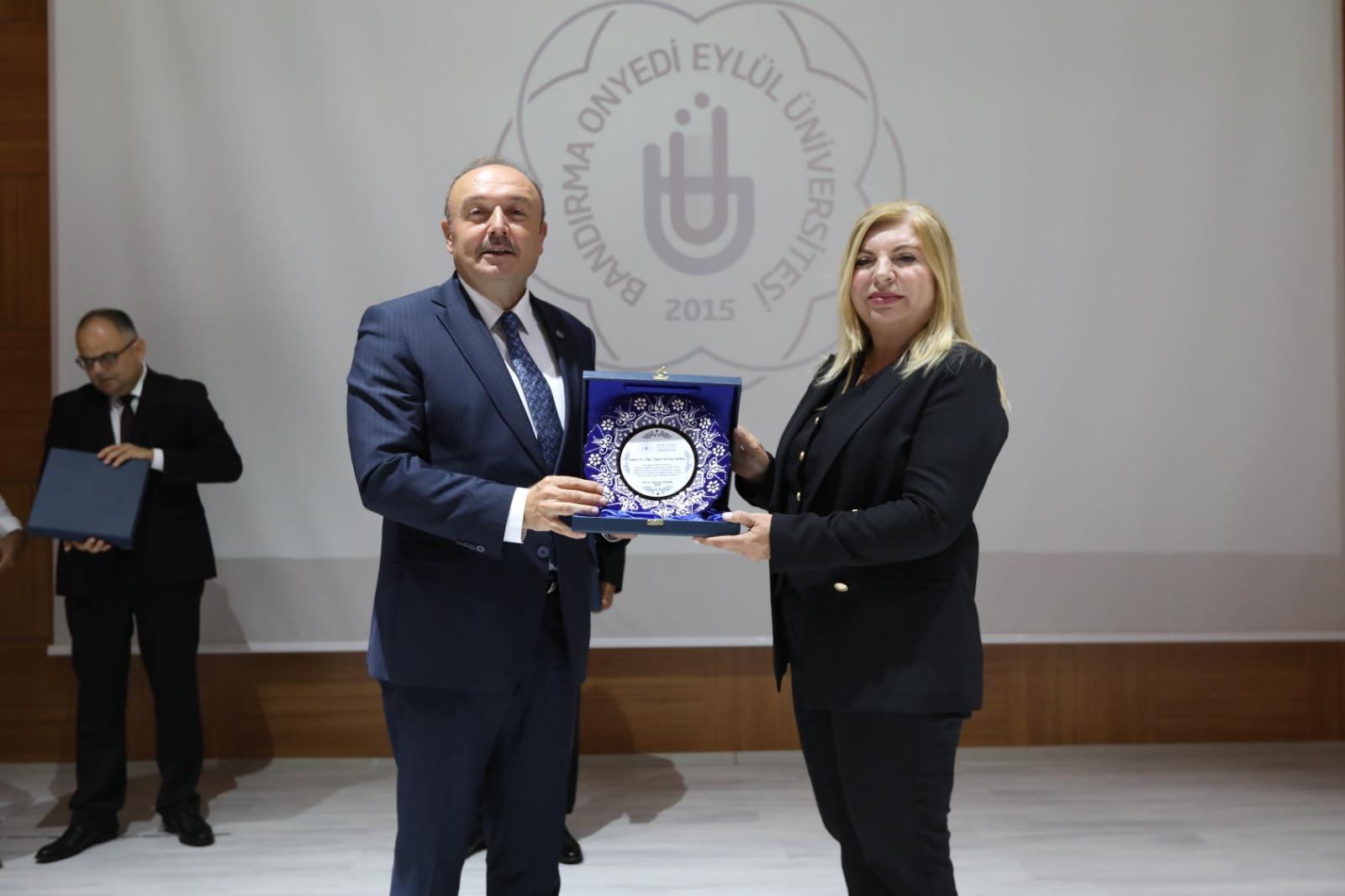 Program sonunda Rektörümüz Prof. Dr. Süleyman Özdemir tarafından emektar hocalarımıza plaket takdim edildi.