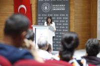 Prof. Dr. Fuat Sezgin Konferans Salonu’nda gerçekleşen programa Rektör Yardımcımız Prof. Dr. Alpaslan Serel, Genel Sekreterimiz Cihangir Boz, İktisadi ve İdari Bilimler Fakültesi Dekanımız Prof. Dr. Serap Palaz Çakır’ın yanı sıra Üniversitemizden birçok akademisyenimiz katıldı.