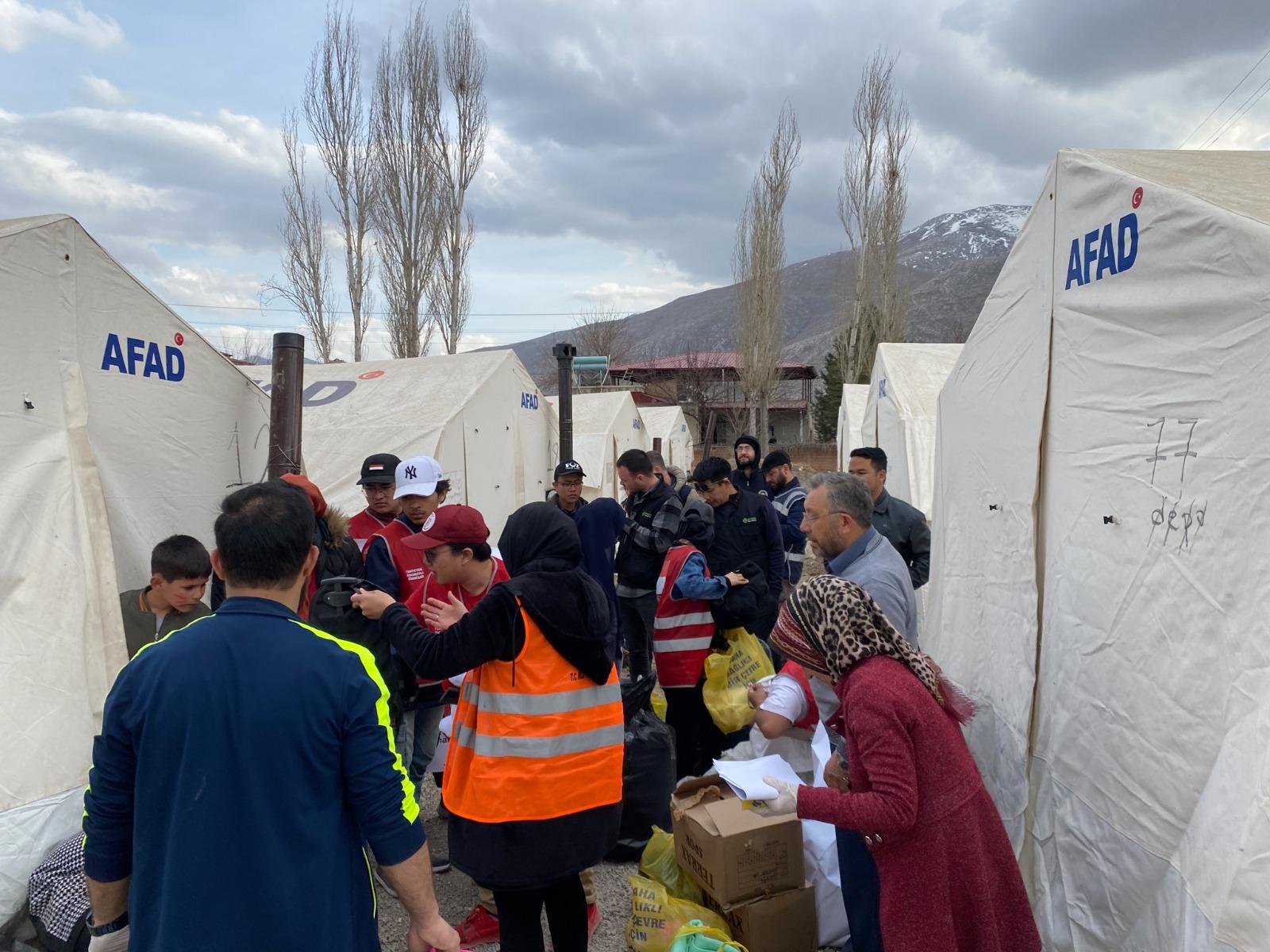 AFAD koordinasyonunda faaliyet gösteren, Türkçe ve Yabancı Dil Öğretimi Uygulama ve Araştırma Merkezi (BANÜ-TÖMER) akademisyenlerimizden Öğr. Gör. Muhammed Salih Kapcı ve 12 Endonezya’lı öğrenciden oluşan gönüllü ekibimiz, aynı bölgede çocuklara kırtasiye malzemesi ve yetişkinlere yönelik mont ve battaniye dağıtımı gerçekleştirdi. Ayrıca Kahramanmaraş’ta akşam yemeği için 7000 kişiye yemek ikramında bulunan öğrencilerimiz, Kahramanmaraş’ın Elbistan ilçesinde bulunan çadır kente 1000 kişilik yemek ikramı, çocuklara kırtasiye malzemesi ve oyuncak dağıtımı gerçekleştirdi.
