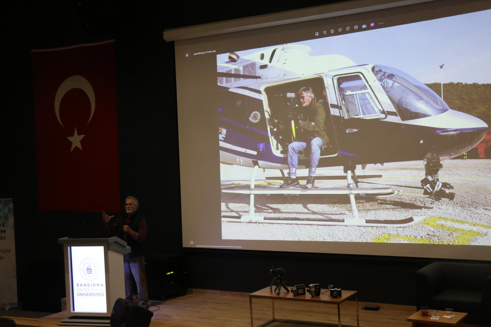 Öğrenci Merkezi Gri Salon’da yapılan etkinliğe konuk olarak TRT Görüntü Yönetmeni Ömer Faruk Aksoy katıldı. Aksoy etkinlikte meslek yaşamına dair değerli bilgiler paylaştı. Aksoy ayrıca programda yaptığı çekimlere dair örneklerden oluşan sunum yaptı. Programa öğrencilerin ilgisi yoğun oldu.