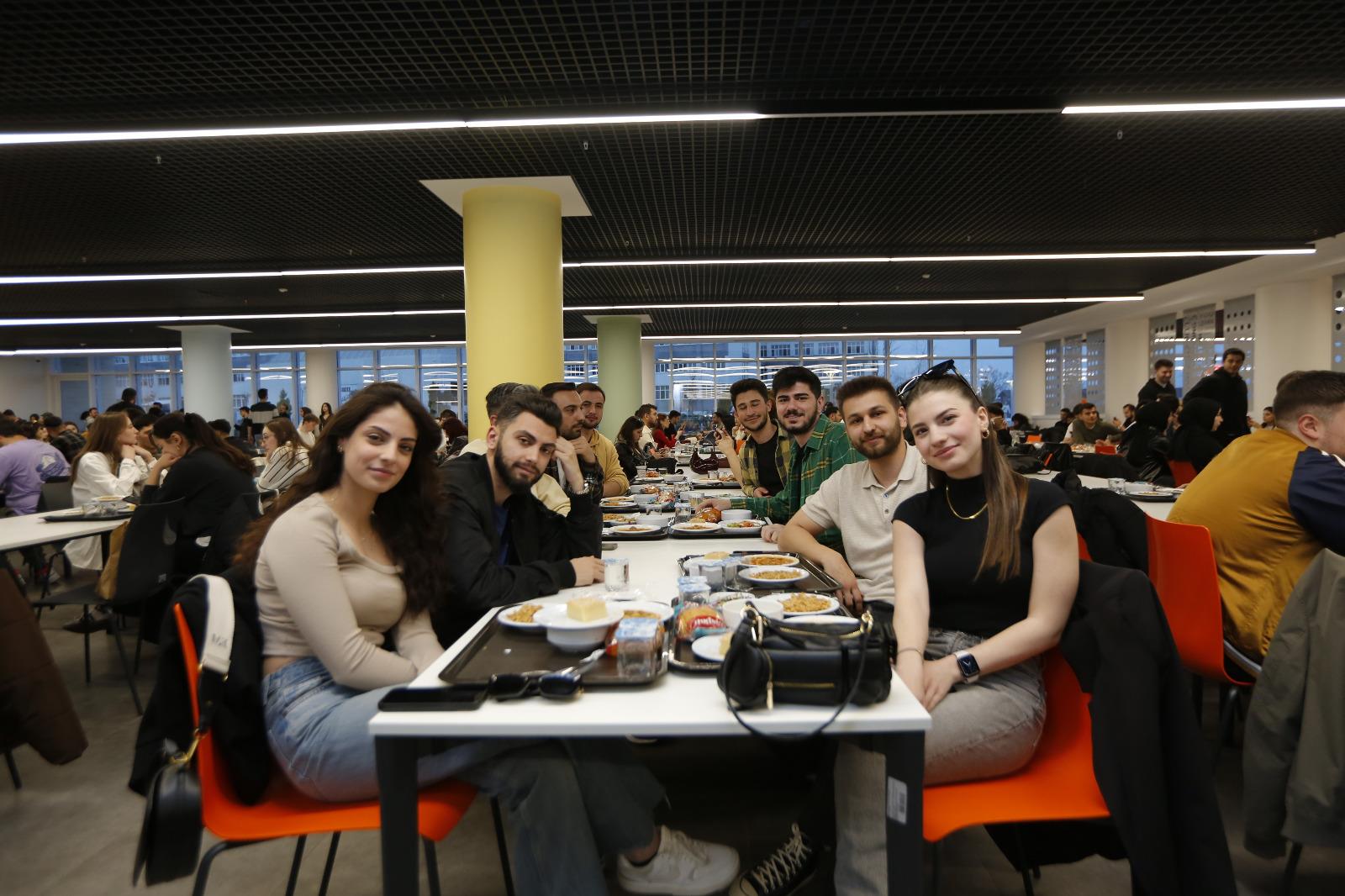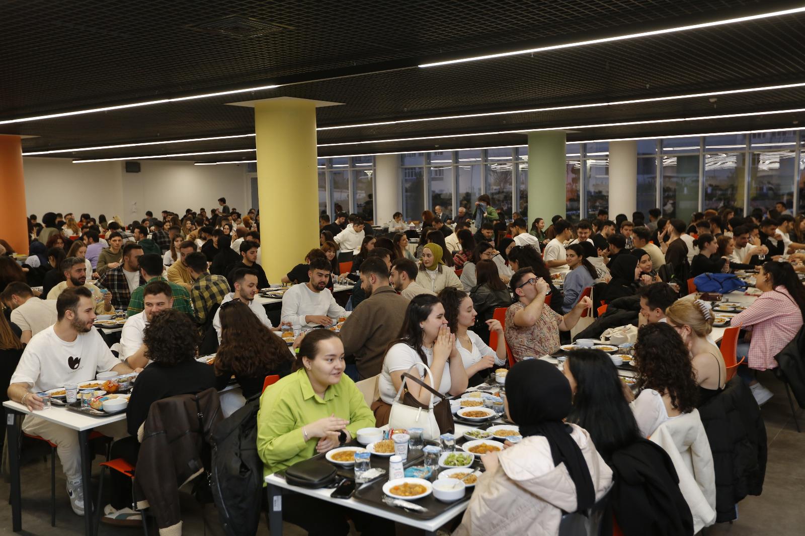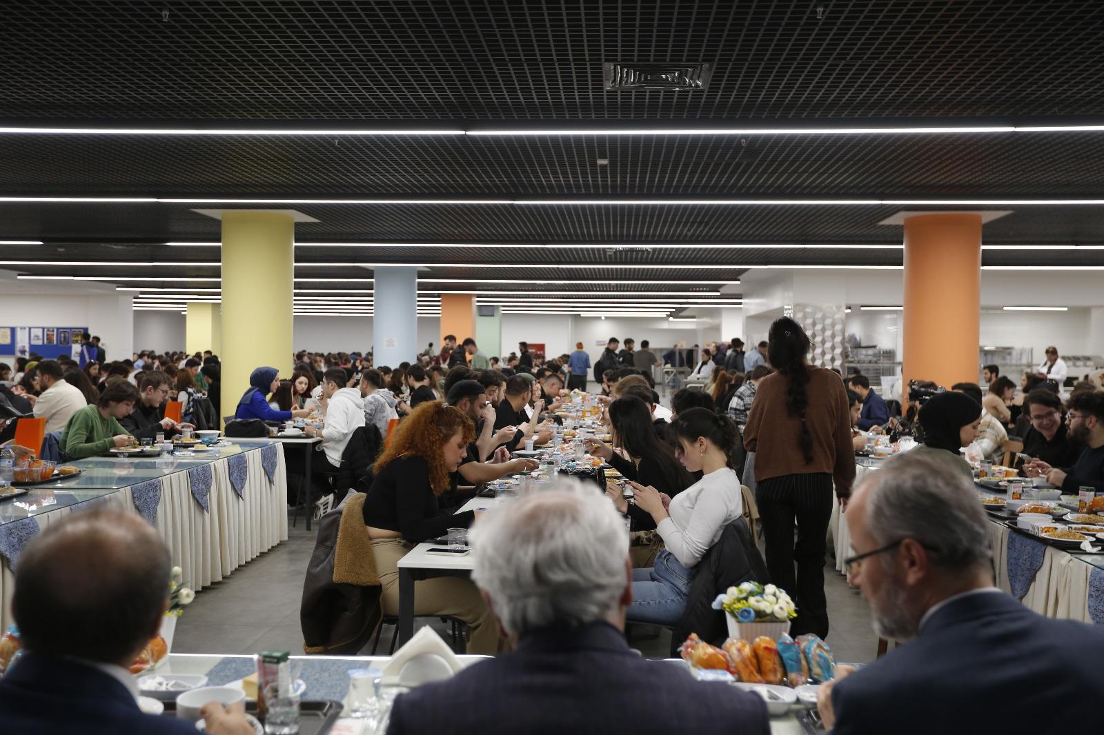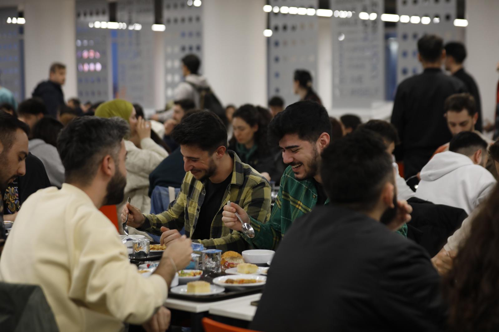 Üniversitemizde her yıl düzenlenen geleneksel öğrenci iftarı, bu yıl da yoğun bir katılımla gerçekleşti. Merkez Yerleşkemizdeki öğrenci yemekhanesinde gerçekleşen iftar programına Rektör Yardımcımız Prof. Dr. Alpaslan Serel, Genel Sekreter Vekilimiz Faruk Küçük, Öğrenci İşleri Daire Başkanımız Davut Araç ve öğrencilerimiz katıldı.