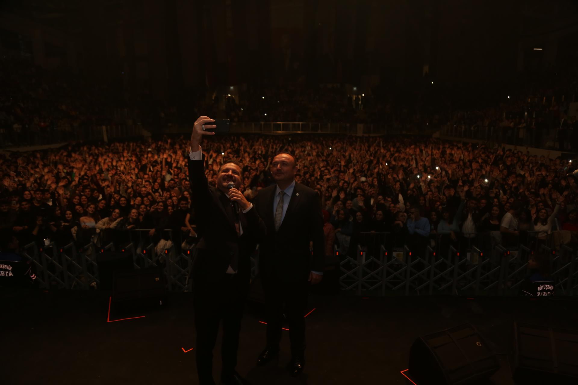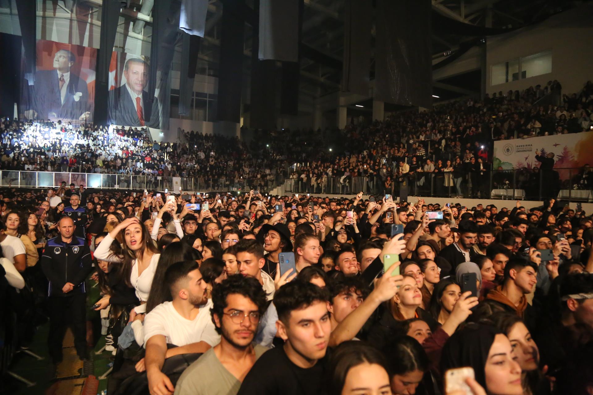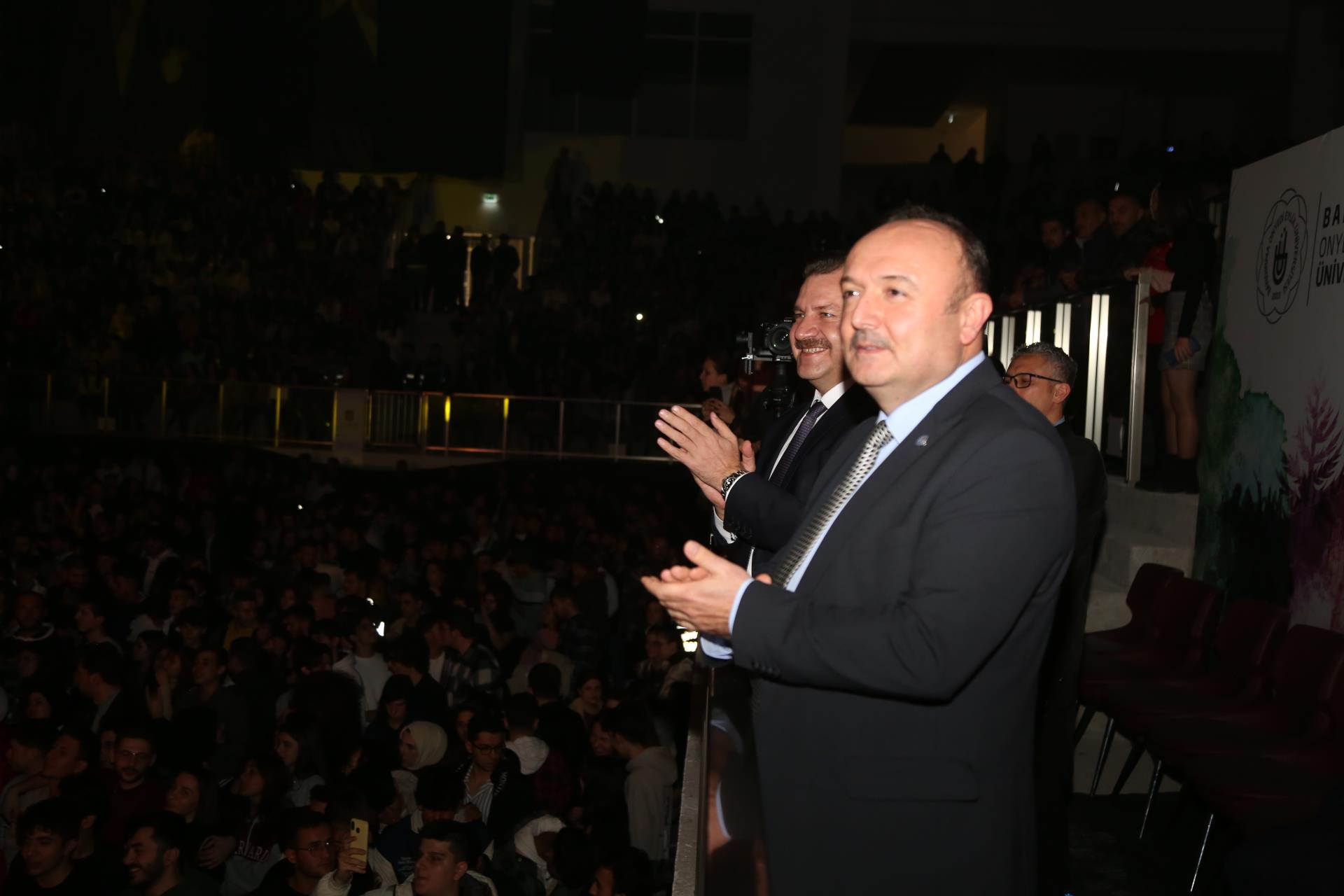 Üniversitemiz tarafından 22-24 Kasım tarihleri arasında düzenlenen “2022 Güz Şenlikleri” kapsamındaki üçüncü ve son gün programı Emir Can İğrek konseri ile sonlandı. Balıkesir Büyükşehir Belediye Başkanı Yücel Yılmaz, Rektörümüz Prof. Dr. Süleyman Özdemir, Balıkesir Büyükşehir Belediyesi Genel Sekreteri Dr. Mustafa Küçükkaptan ve Genel Sekreterimiz Cihangir Boz’un teşrifleriyle gerçekleşen konser öncesi yeni Spor Salonu’muzun açılışı gerçekleştirildi. Programın açılış konuşmasını gerçekleştiren Rektörümüz, yeni Spor Salonu’muzun rekor bir katılımla gerçekleştiğini ifade ederek sevilen sanatçı Emir Can İğrek’in bu anlamlı günde aramızda olmasından dolayı teşekkürlerini iletti. Ardından konuşmalarını gerçekleştirmek üzere sahneye çıkan Balıkesir Büyükşehir Belediye Başkanı Yücel Yılmaz, sözlerine sevilen sanatçı Emir Can İğrek’e teşekkürlerini ileterek kendisini Üniversitemiz bahar şenliklerine de misafir olarak davet etmek istediklerini dile getirdi. Akabinde Rektörümüz İğrek’e çiçek ve hediye takdiminde bulunurken Balıkesir Büyükşehir Belediye Başkanı Yücel Yılmaz ise kendisine Balıkesir’in coğrafi tescilli dokuma kilimini hediye etti.