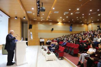Öğrencilerin ilgi ile takip ettiği konferans bir saat sürdü. Konferans sonunda Rektör Yardımcımız Prof. Dr. Alpaslan Serel, Prof. Dr. Zeynel Dinler’e teşekkür plaketi takdim etti.