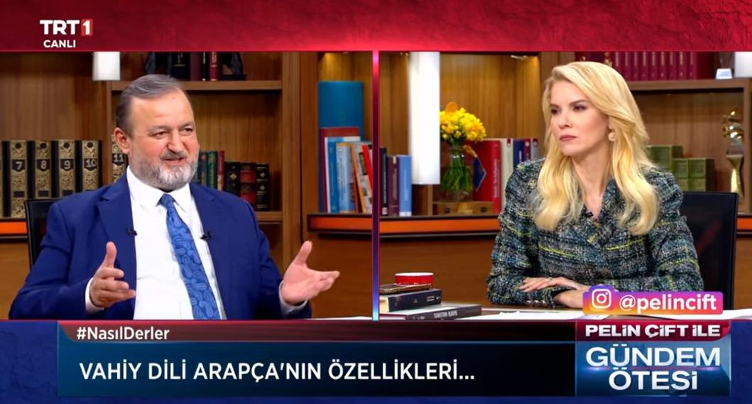 İslami İlimler Fakültesi Dekanımız Prof. Dr. Abdurrahman Özdemir TRT 1’de canlı yayınlanan ve Pelin Çift’in hazırlayıp sunduğu “Gündem Ötesi” programına konuk oldu. 18 Mart Cumartesi günü yayınlanan programda Prof. Dr. Abdurrahman Özdemir; Arapça’nın doğuşu ve Antik dünyanın hangi dilleri ile akraba olduğu, Cahiliye Dönemi’nde şiirin önemi ve vahiy dili Arapça’nın özellikleri ile ilgili değerli görüşlerini paylaştı.