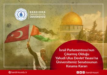 İsrail Parlamentosu’nun Çıkarmış Olduğu Yahudi Ulus Devlet Yasası’na Üniversitemiz Senatosunun Kınama Kararı