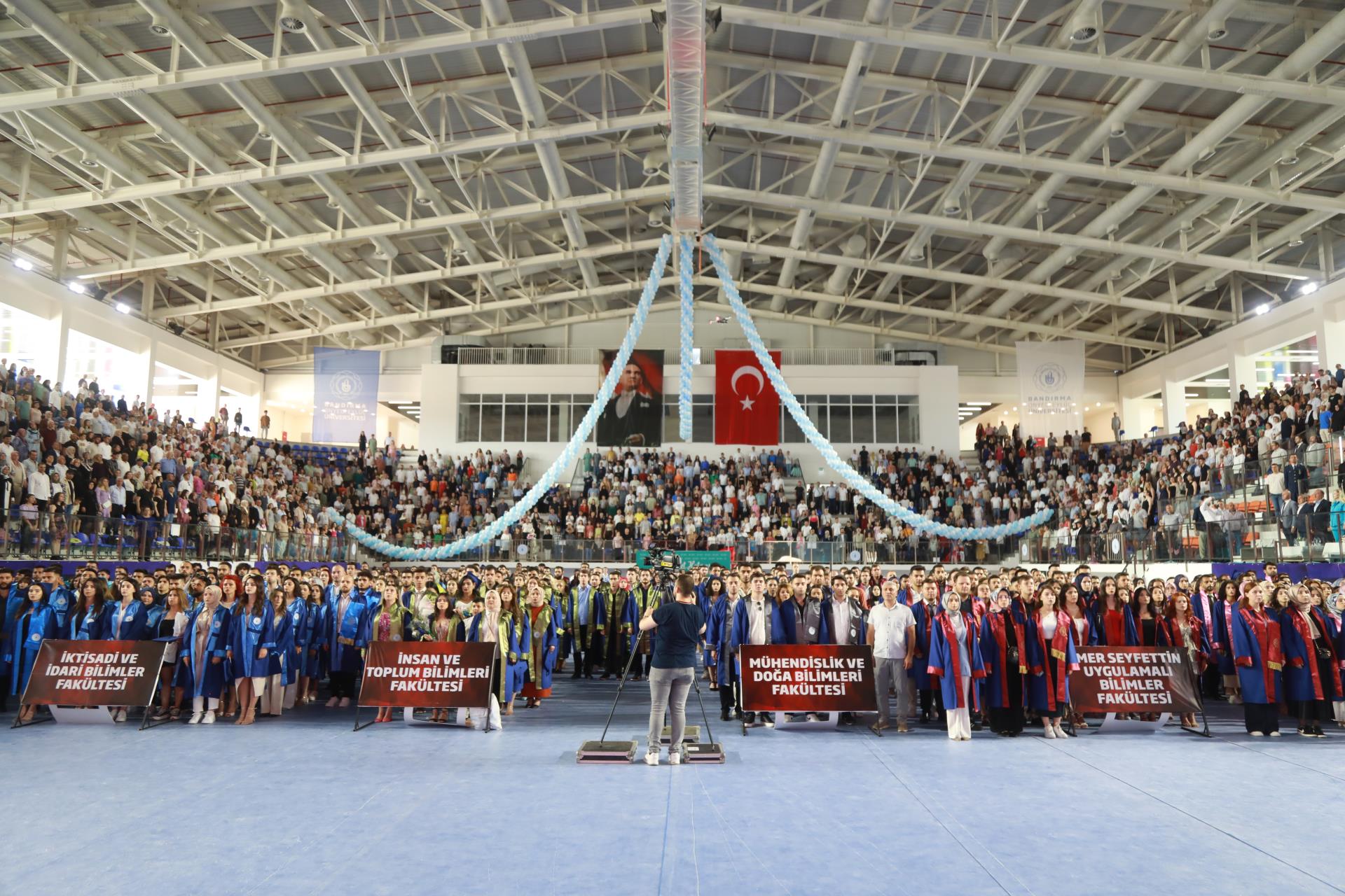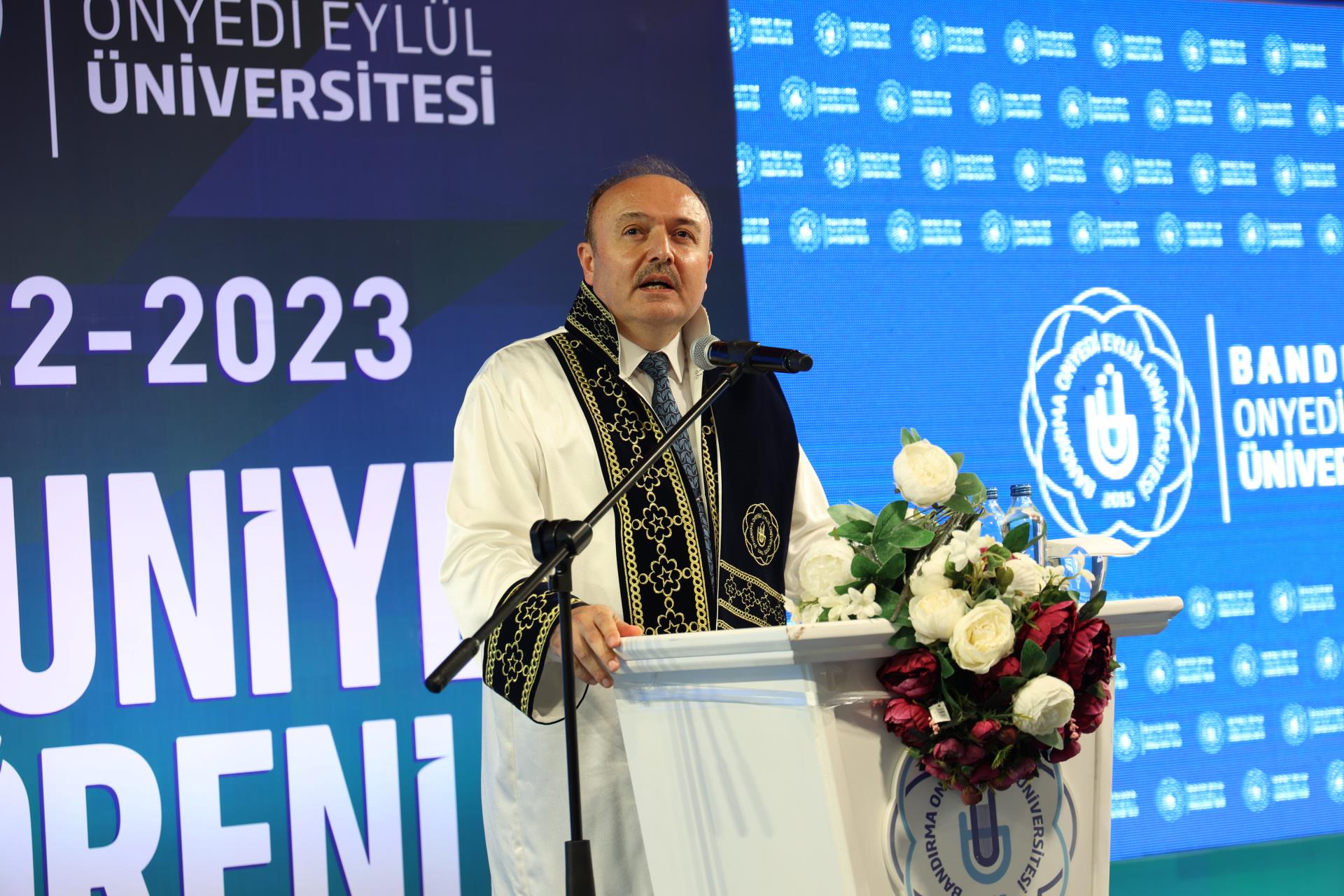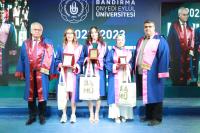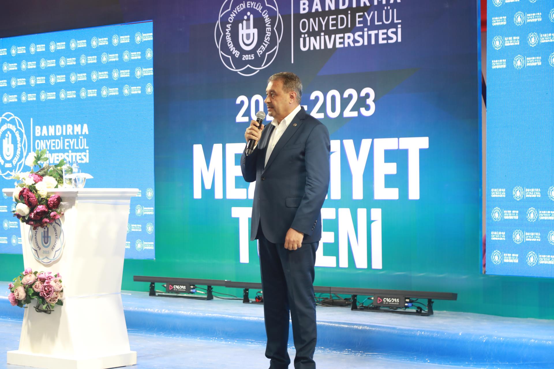Üniversitemiz 2023 yılı lisans mezunlarına yönelik Merkez Yerleşkemizdeki Spor Vadisi’nde yer alan Kapalı Spor Salonu’muzda düzenlenen mezuniyet törenimiz büyük bir coşkuyla gerçekleşti. Rektörümüz Prof. Dr. Süleyman Özdemir’in ev sahipliği yaptığı törene Balıkesir Valisi Hasan Şıldak, Balıkesir Milletvekili Ali Taylan Öztaylan, MSÜ Kara Asb. MYO k. Tuğg. Mahmut Büyükcingi, Garnizon Komutanı Hv. Plt. Tuğ. Gen. Selahattin Akalp, Bandırma Kaymakamı Engin Aksakal, Balıkesir İl Emniyet Müdürü Hasan Onar, İl Jandarma Komutanı J. Kd. Alb. Ali Yıldız, Rektör Yardımcılarımız Prof. Dr. Alpaslan Serel, Prof. Dr. Feyzullah Temurtaş ve Prof. Dr. Celalettin Yanık, Genel Sekreterimiz Cihangir Boz, il ve ilçe protokolü, siyasi parti ve sivil toplum kuruluşlarımızın temsilcileri, akademik ve idari personelimiz, basın mensupları, öğrencilerimiz ve velileri katılım gösterdi.