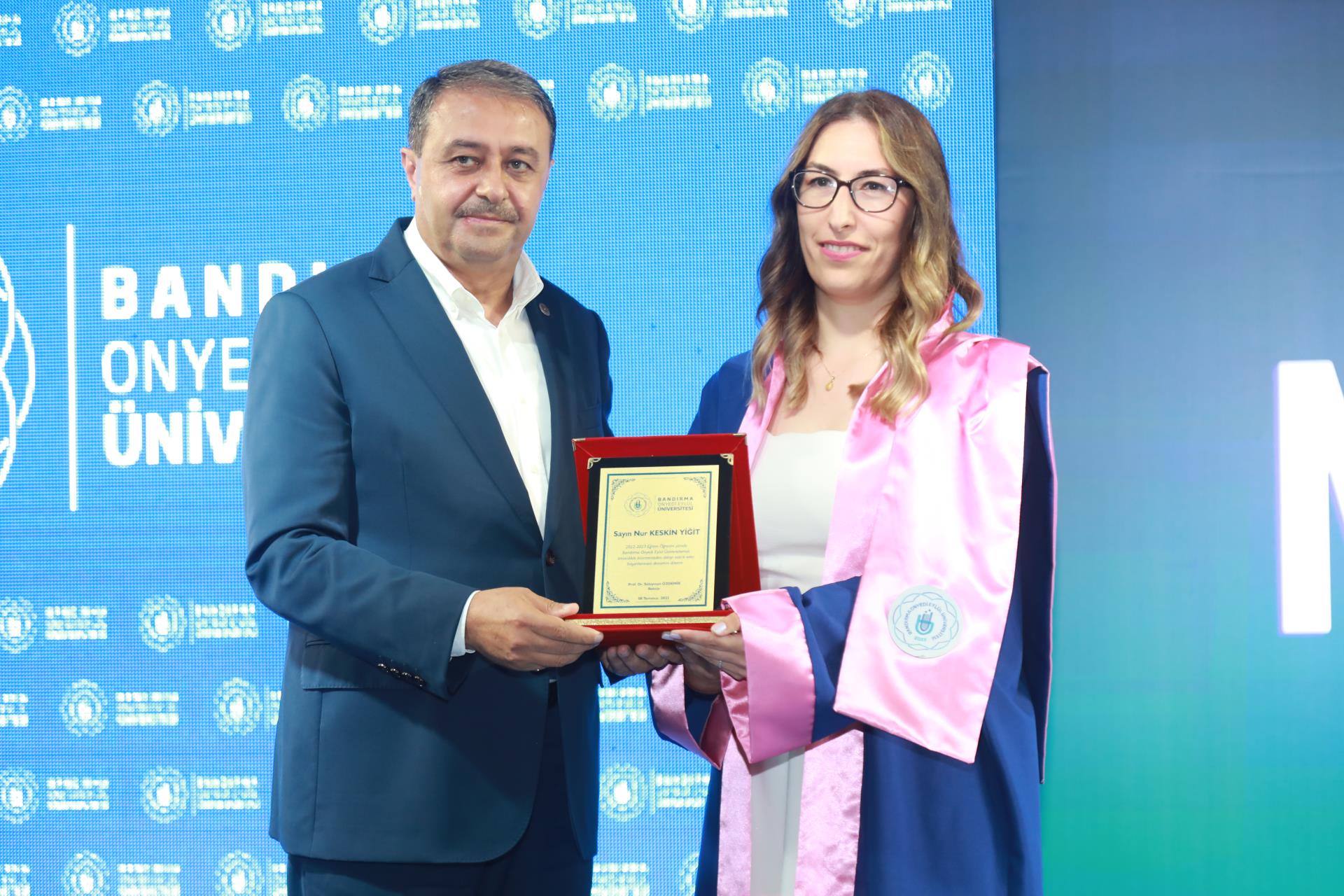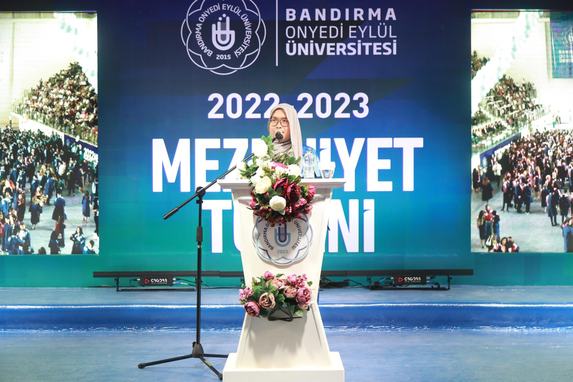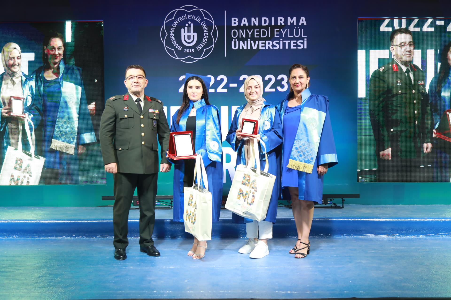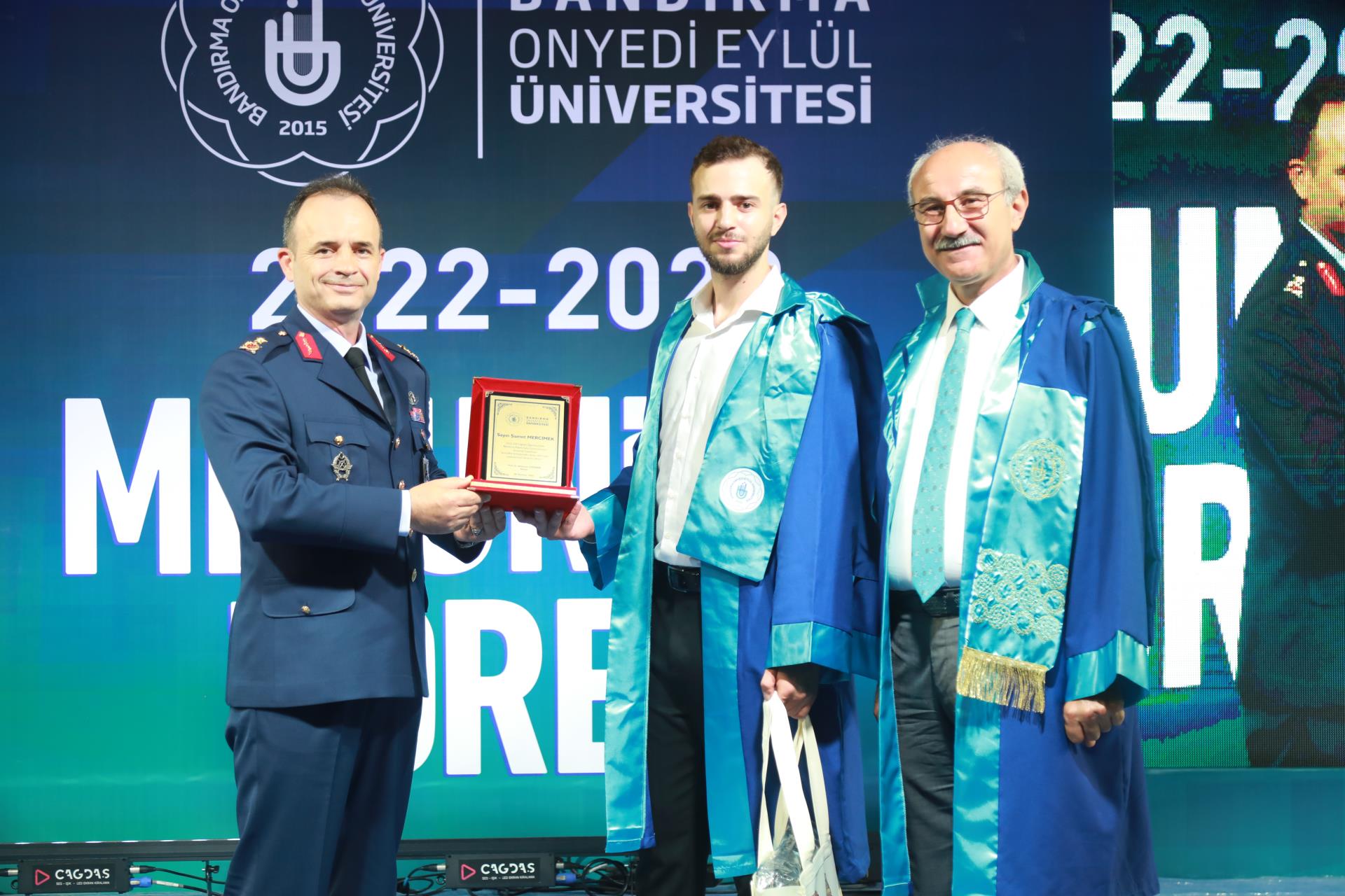 Üniversitemiz 2023 yılı lisans mezunlarına yönelik Merkez Yerleşkemizdeki Spor Vadisi’nde yer alan Kapalı Spor Salonu’muzda düzenlenen mezuniyet törenimiz büyük bir coşkuyla gerçekleşti. Rektörümüz Prof. Dr. Süleyman Özdemir’in ev sahipliği yaptığı törene Balıkesir Valisi Hasan Şıldak, Balıkesir Milletvekili Ali Taylan Öztaylan, MSÜ Kara Asb. MYO k. Tuğg. Mahmut Büyükcingi, Garnizon Komutanı Hv. Plt. Tuğ. Gen. Selahattin Akalp, Bandırma Kaymakamı Engin Aksakal, Balıkesir İl Emniyet Müdürü Hasan Onar, İl Jandarma Komutanı J. Kd. Alb. Ali Yıldız, Rektör Yardımcılarımız Prof. Dr. Alpaslan Serel, Prof. Dr. Feyzullah Temurtaş ve Prof. Dr. Celalettin Yanık, Genel Sekreterimiz Cihangir Boz, il ve ilçe protokolü, siyasi parti ve sivil toplum kuruluşlarımızın temsilcileri, akademik ve idari personelimiz, basın mensupları, öğrencilerimiz ve velileri katılım gösterdi.