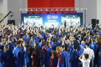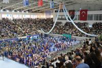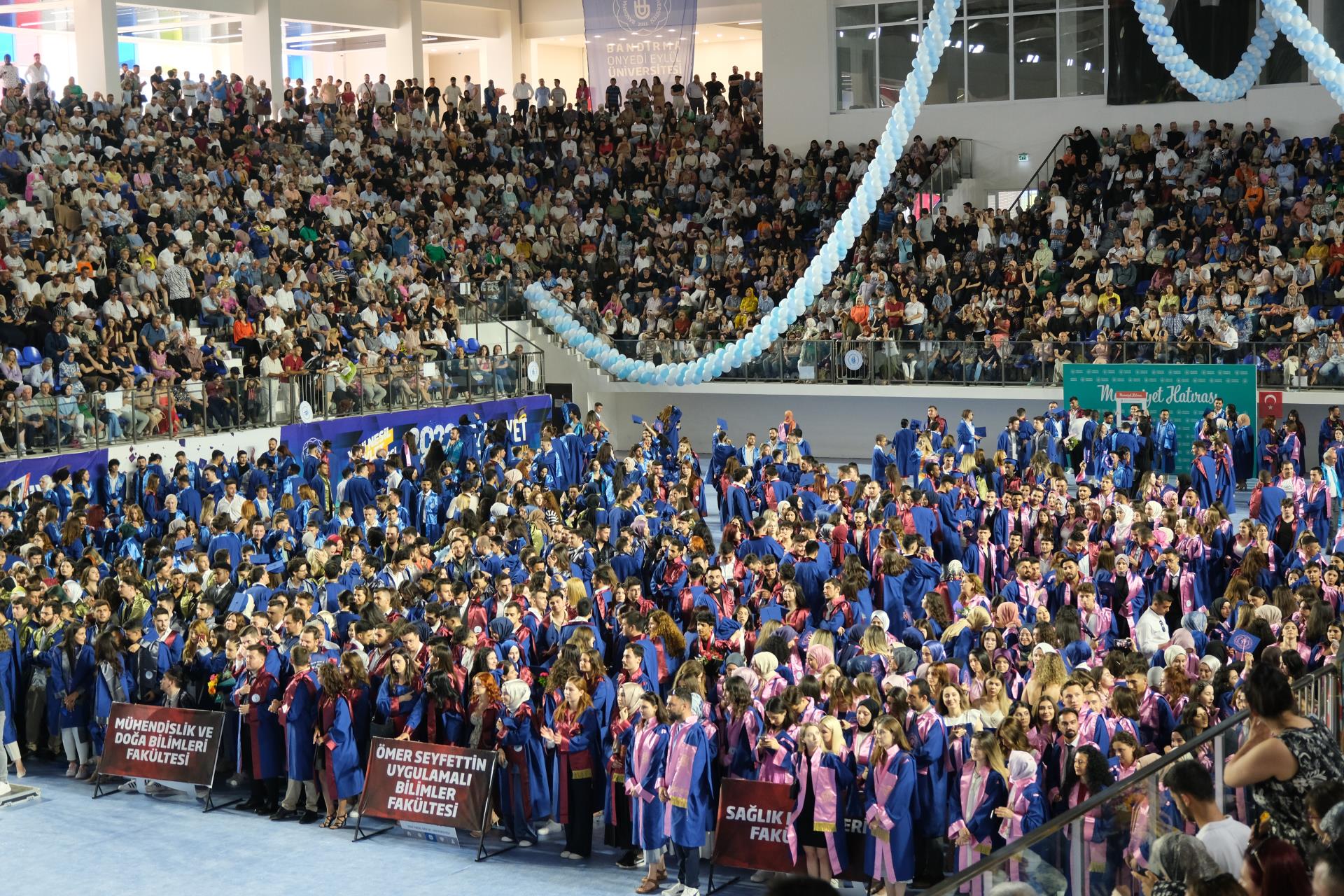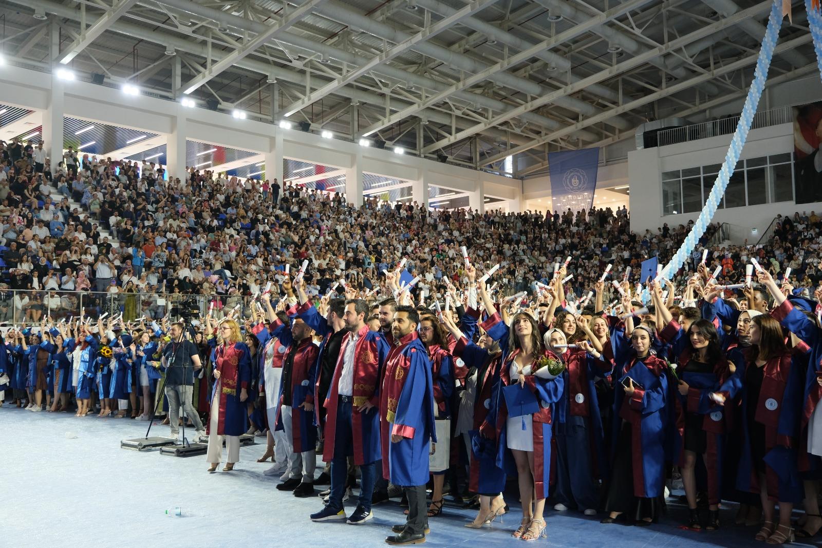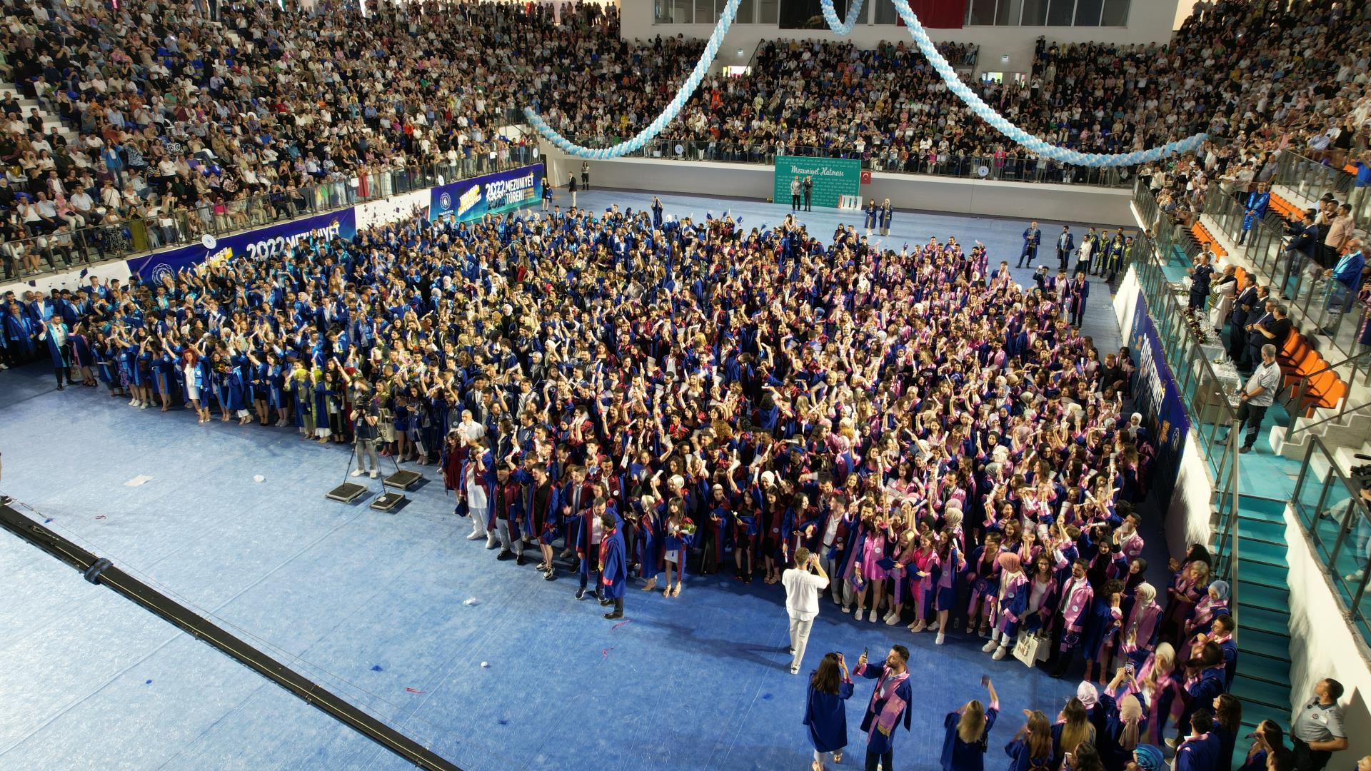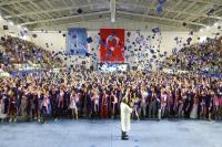 Çok yoğun bir katılım ve büyük bir coşkuyla gerçekleşen mezuniyet törenimiz Rektörümüz Prof. Dr. Süleyman Özdemir’in geri sayımı ve müzik eşliğinde mezun öğrencilerimizin keplerini havaya fırlatmasıyla son buldu. Yüzlerce kepin havada süzüldüğü bu güzel an fotoğraf ve video çekimleriyle ölümsüzleştirildi.