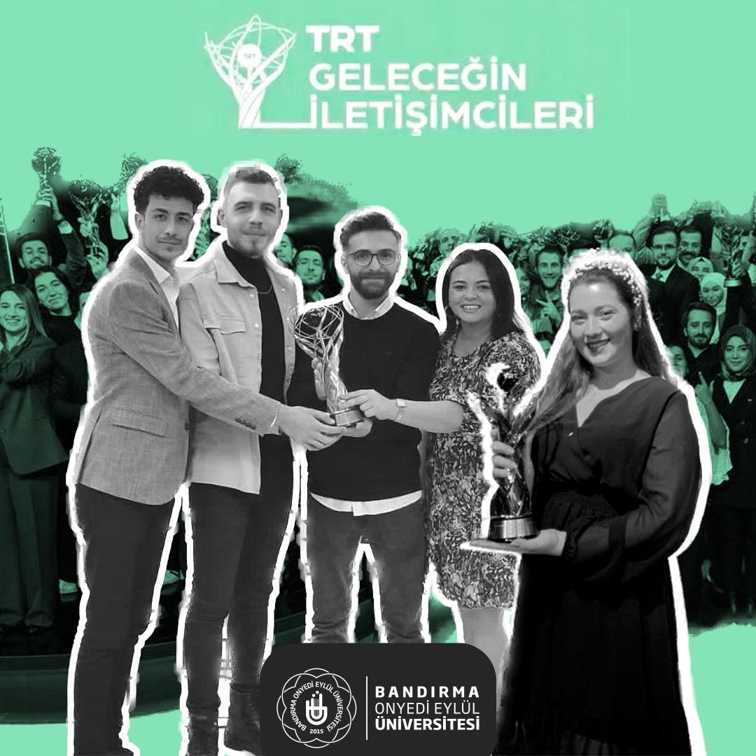 TRT tarafından her yıl düzenlenen Geleceğin İletişimcileri yarışmasına bu yıl Üniversitemizden iki kategoride başvuru yapan öğrencilerimiz iki kategoride de yaklaşık 110 üniversiteden 4.000’e yakın kişi arasında dereceye girmeyi başardı. Türkiye’nin alanındaki en prestijli iletişim öğrencileri yarışması olan “Geleceğin İletişimcileri” yarışmasında Bandırma Meslek Yüksek Okulu Medya ve İletişim Bölümü öğrencimiz Sude Yüksel “Arı Radyo/Çocuk Saati” isimli programı ile ‘Radyo Programı’ kategorisinde ikinci olmaya hak kazanırken, Ömer Seyfettin Uygulamalı Bilimler Fakültesi Yeni Medya ve İletişim Bölümü öğrencilerimiz Harun Erdal, Beyzanur Yurttutan ve Nurican Albayrak “Bandırma’dan Ay’a” isimli belgesel çalışmaları ile ‘Belgesel Film’ kategorisinde üçüncü oldular.