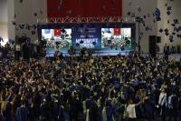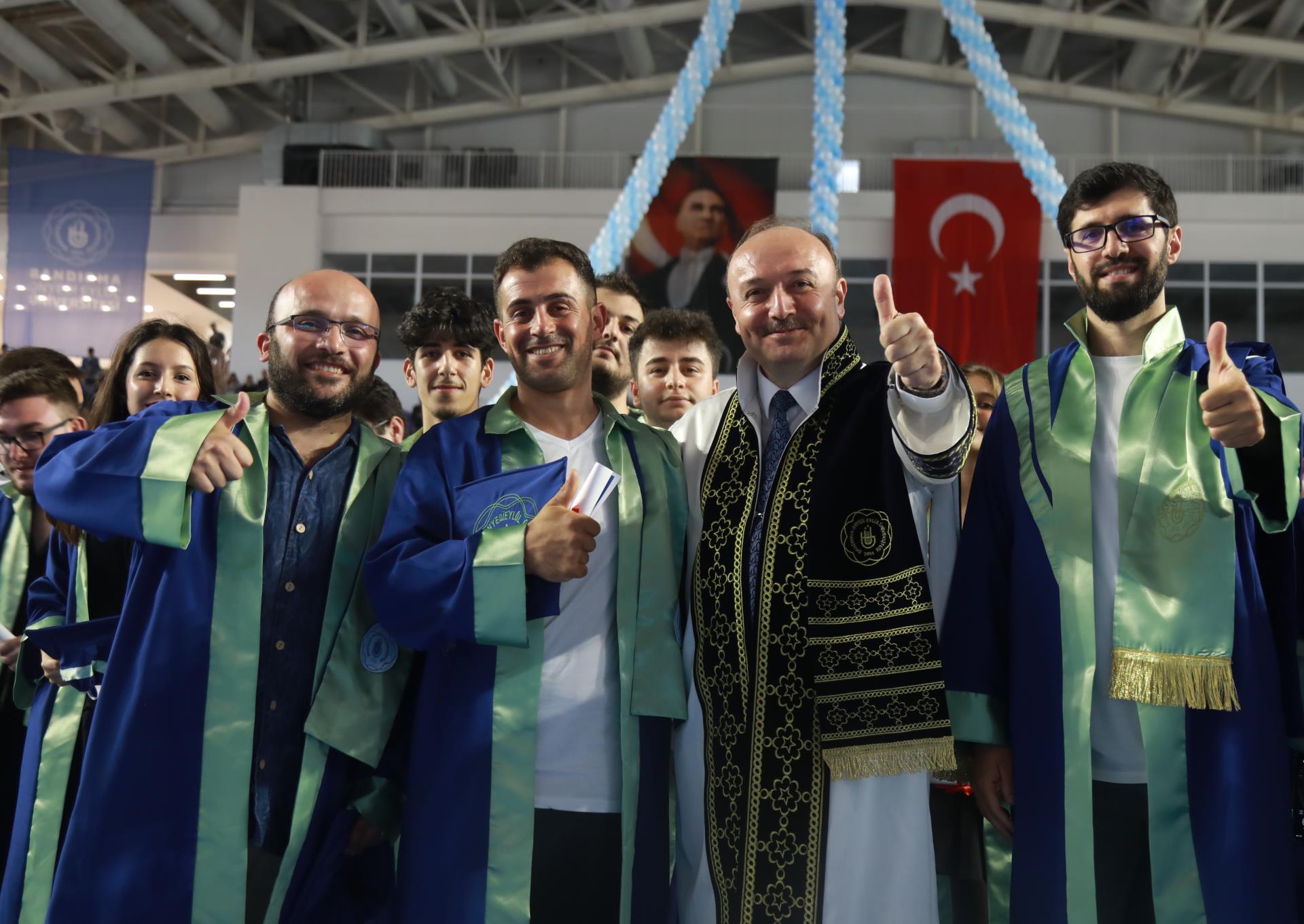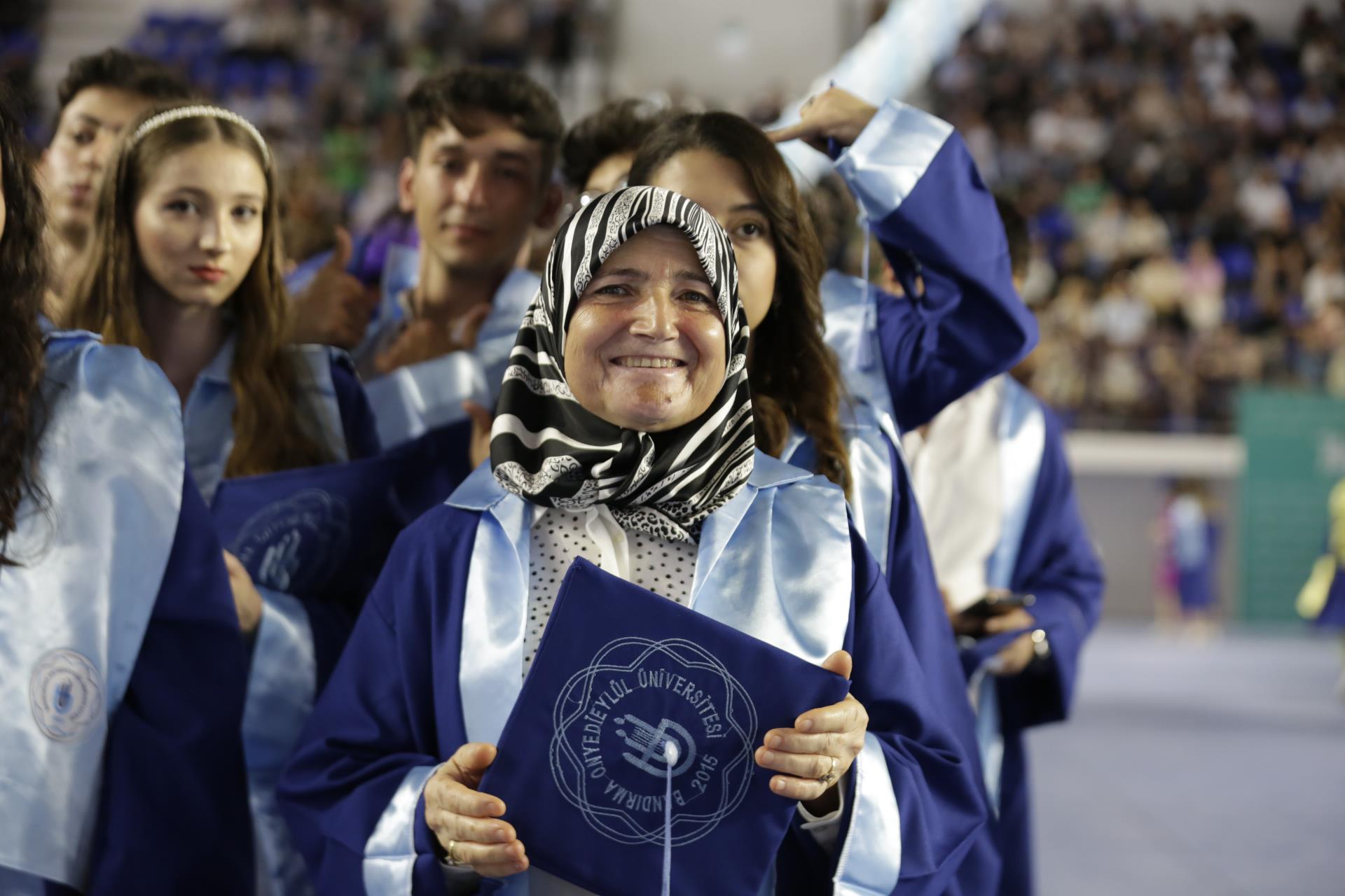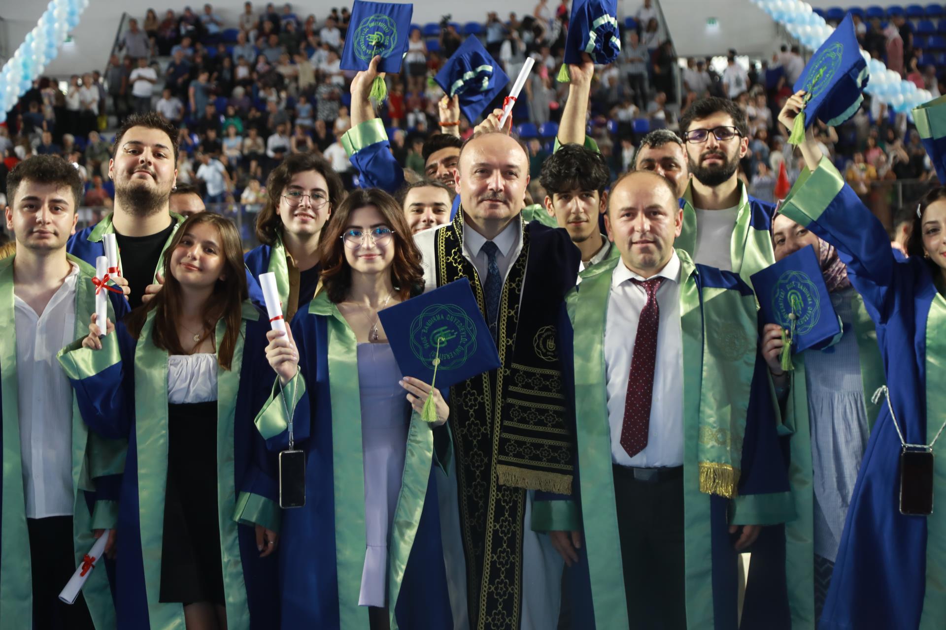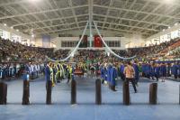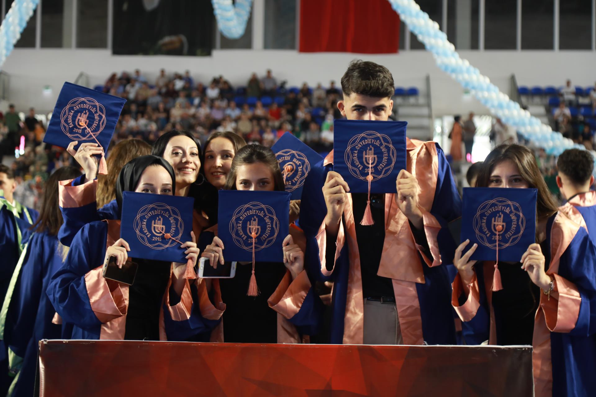 Üniversitemiz 2023 yılı önlisans mezunlarına yönelik düzenlenen mezuniyet törenimiz büyük bir coşkuyla gerçekleşti. Merkez Yerleşkemizdeki Spor Vadisi’nde yer alan Kapalı Spor Salonu’muzda gerçekleşen mezuniyet törenine Rektörümüz Prof. Dr. Süleyman Özdemir, Rektör Yardımcılarımız Prof. Dr. Alpaslan Serel, Prof. Dr. Feyzullah Temurtaş ve Prof. Dr. Celalettin Yanık, Genel Sekreterimiz Cihangir Boz, akademik ve idari birimlerimizin yöneticileri, basın mensupları, öğrenciler ve aileleri katıldı.
