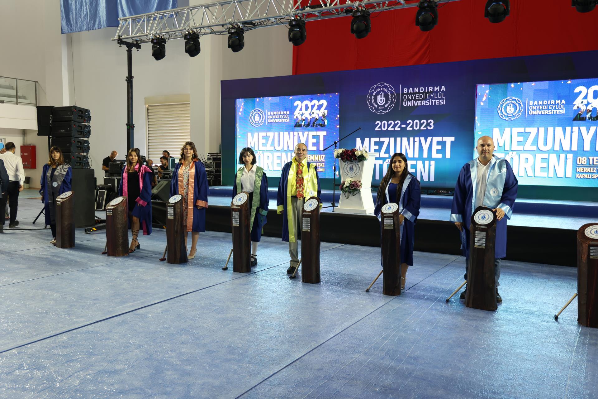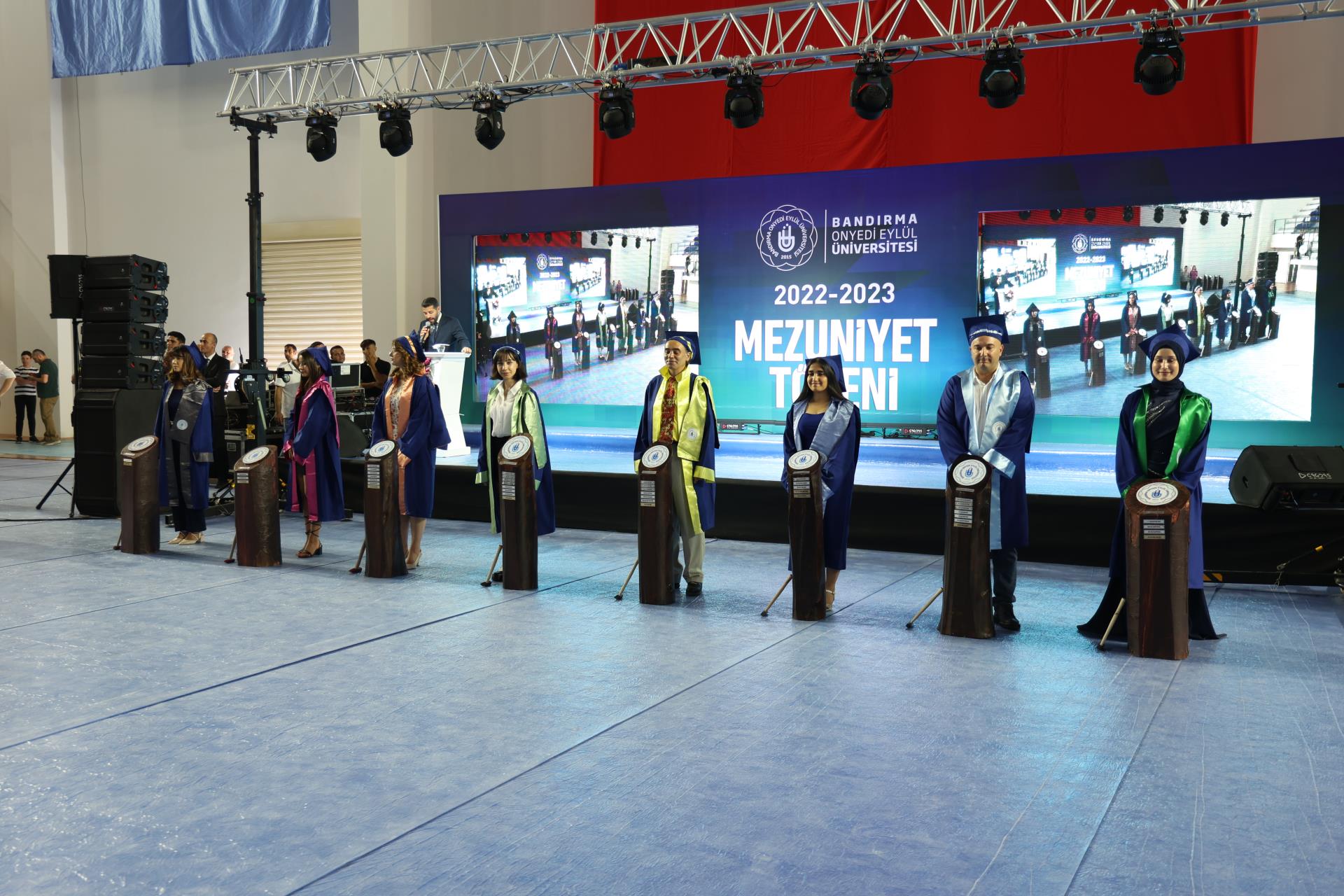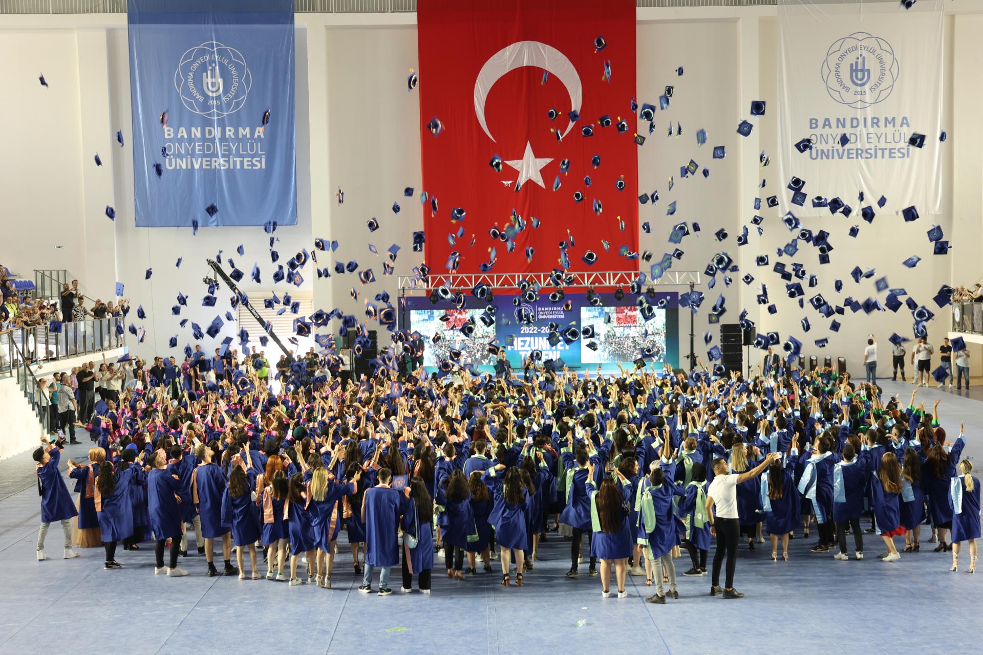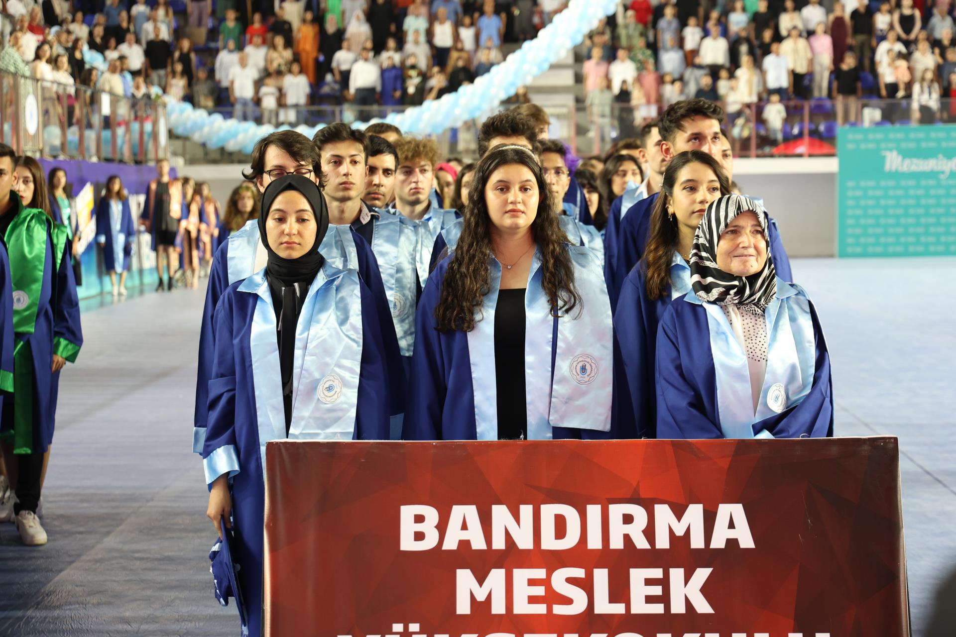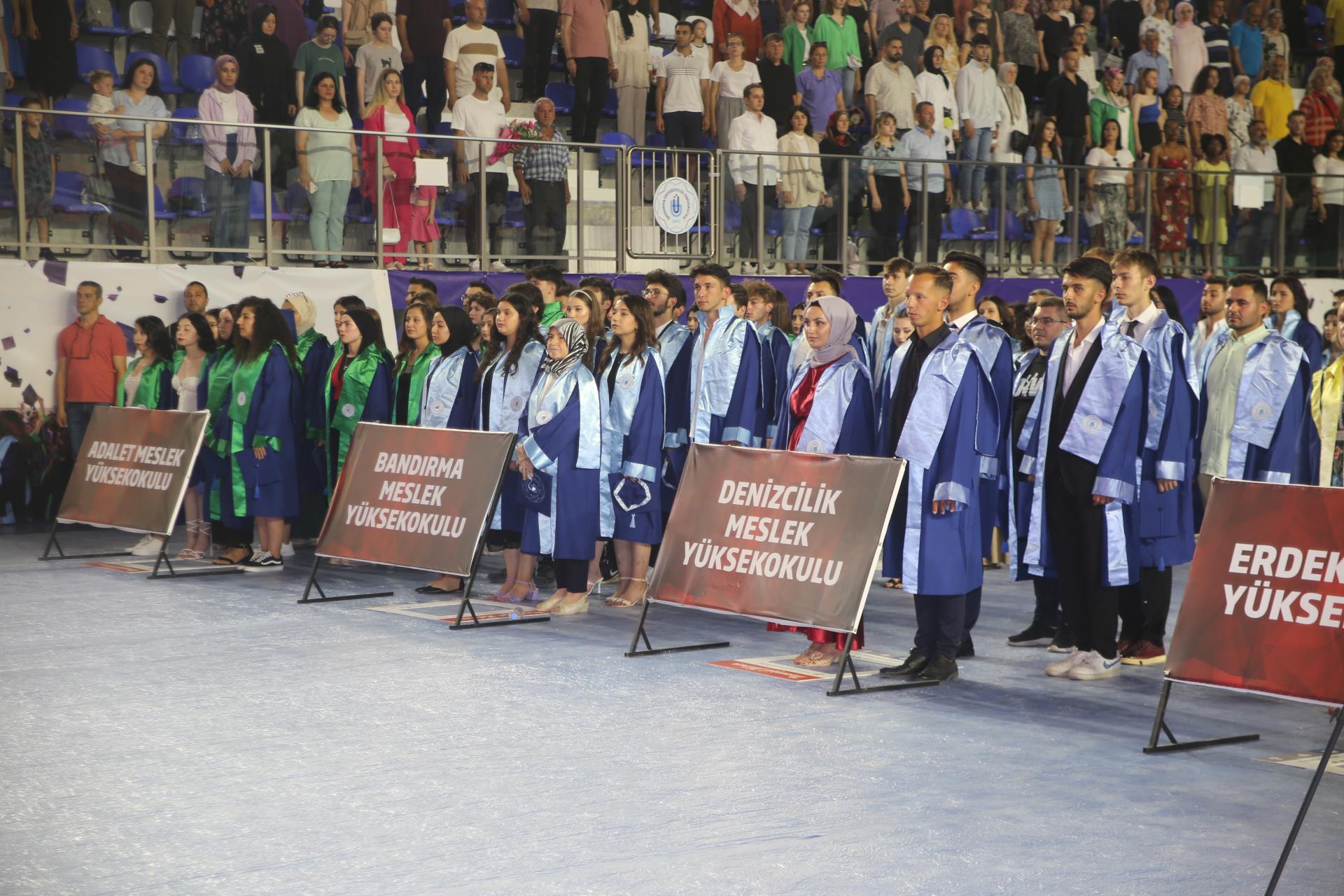 Adalet Meslek Yüksekokulu, Bandırma Meslek Yüksekokulu, Denizcilik Meslek Yüksekokulu, Erdek Meslek Yüksekokulu, Gönen Meslek Yüksekokulu, Manyas Meslek Yüksekokulu, Sağlık Hizmetleri Meslek Yüksekokulu ile Susurluk Tarım ve Orman Meslek Yüksekokulu’ndan mezun olan öğrencilerimize hocaları tarafından mezun belgeleri takdim edildikten sonra Rektörümüz Prof. Dr. Süleyman Özdemir’in geri sayımı ve müzik eşliğinde keplerini havaya fırlatmasıyla son buldu.