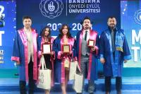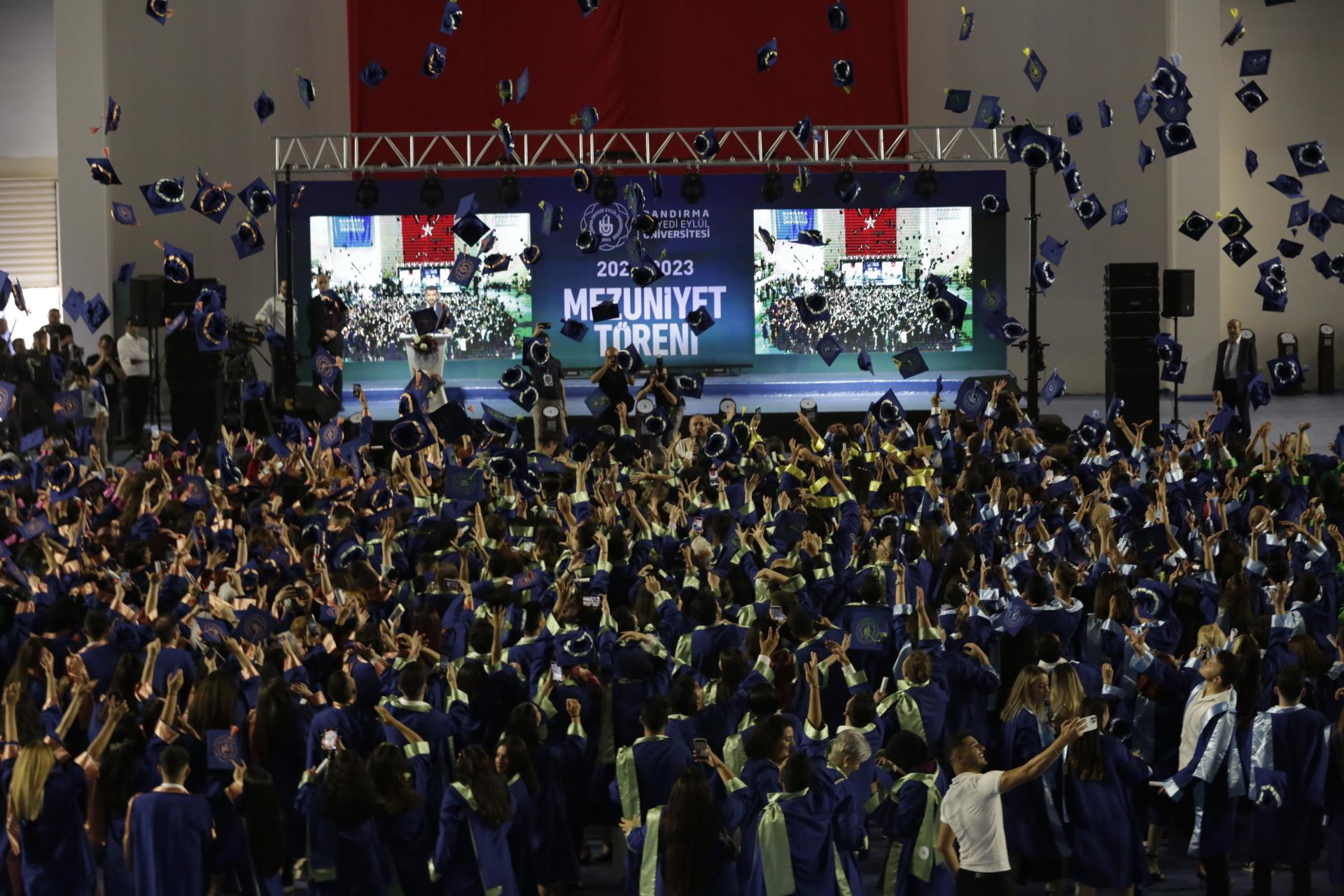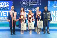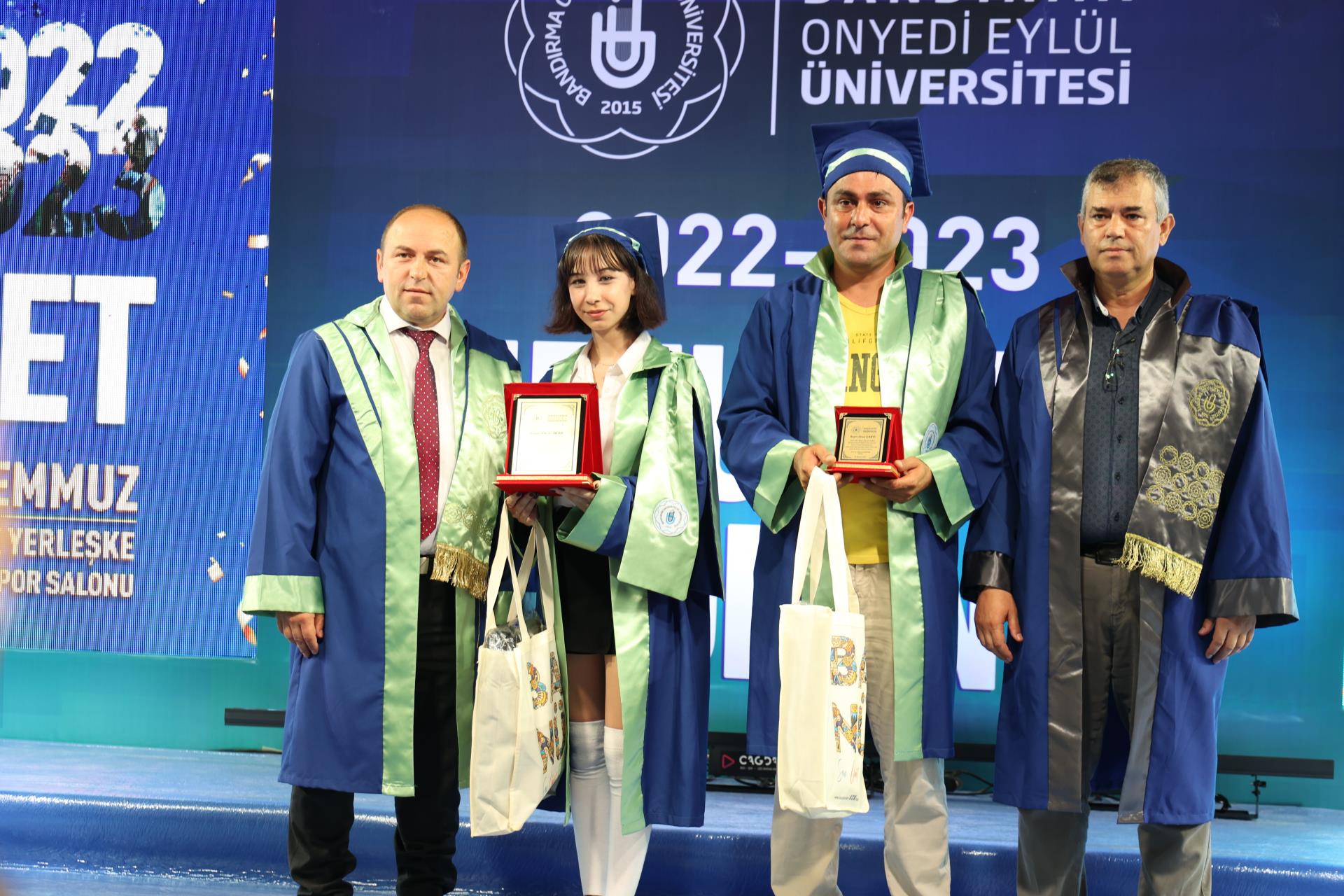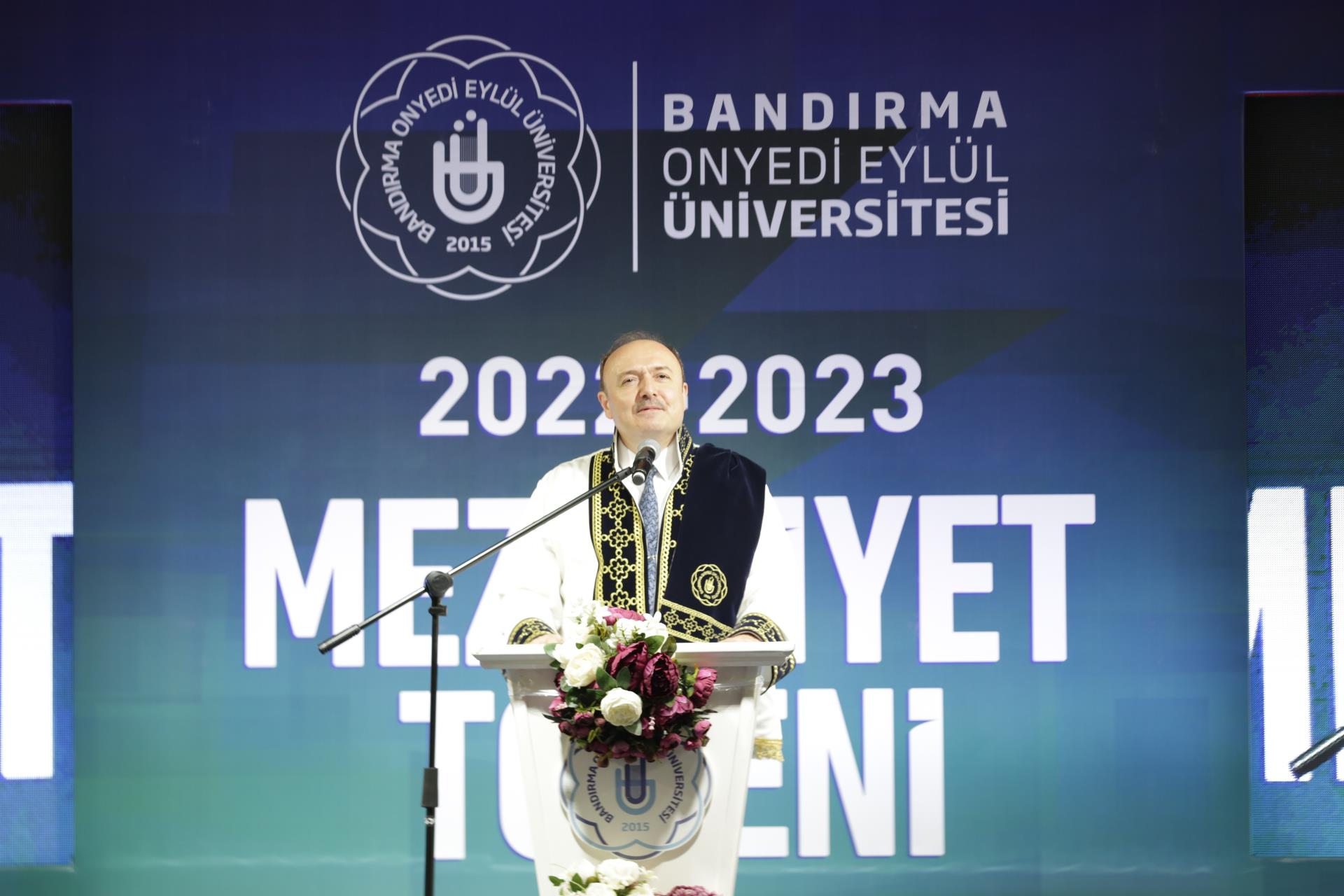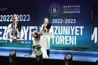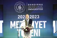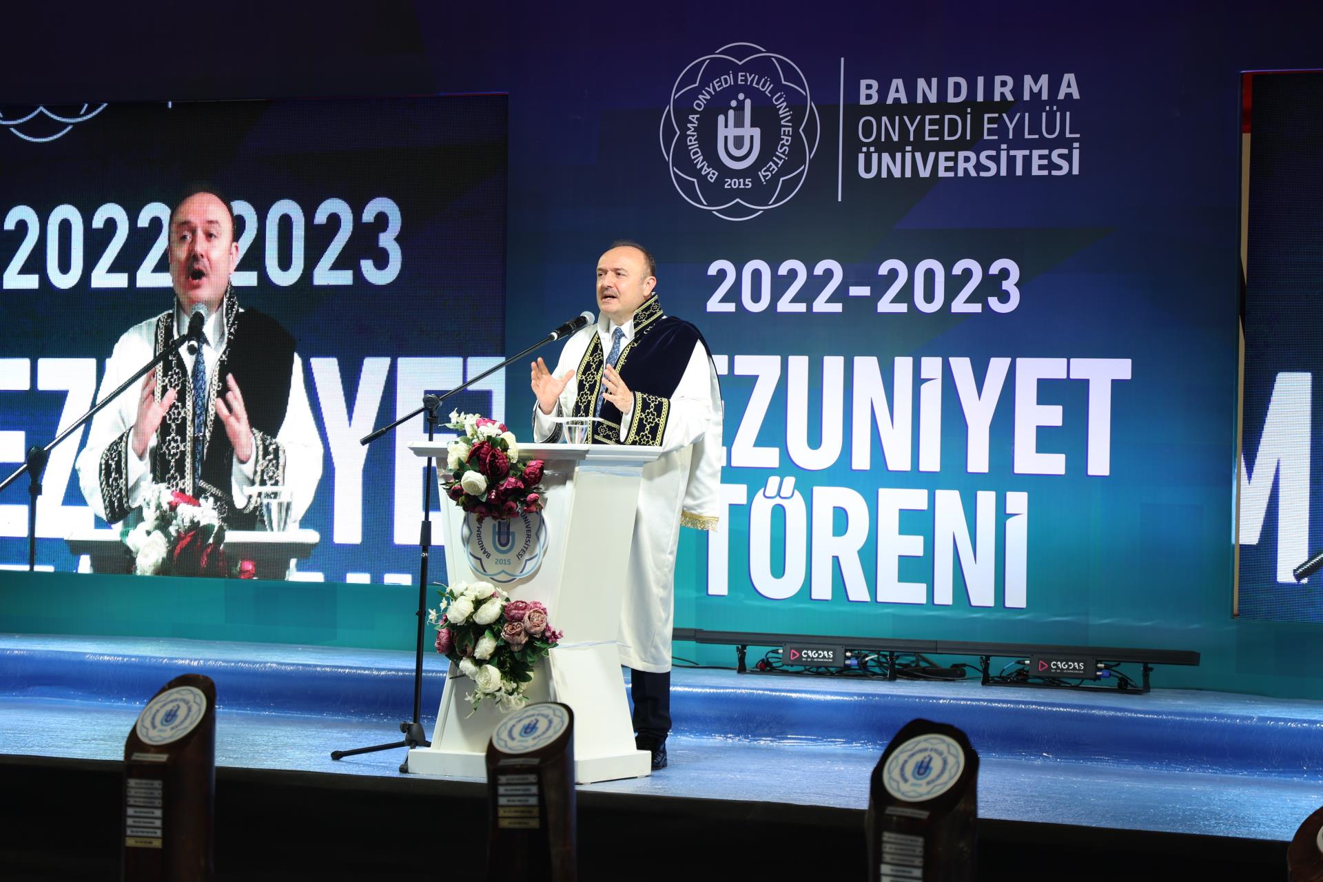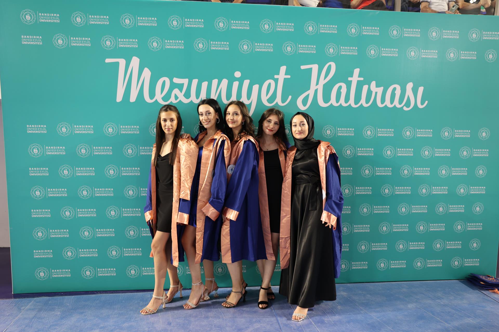 Adalet Meslek Yüksekokulu, Bandırma Meslek Yüksekokulu, Denizcilik Meslek Yüksekokulu, Erdek Meslek Yüksekokulu, Gönen Meslek Yüksekokulu, Manyas Meslek Yüksekokulu, Sağlık Hizmetleri Meslek Yüksekokulu ile Susurluk Tarım ve Orman Meslek Yüksekokulu’ndan mezun olan öğrencilerimize hocaları tarafından mezun belgeleri takdim edildikten sonra Rektörümüz Prof. Dr. Süleyman Özdemir’in geri sayımı ve müzik eşliğinde keplerini havaya fırlatmasıyla son buldu.