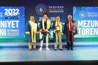 Saygı duruşu ve İstiklal Marşımızın okunmasıyla başlayan programda Rektörümüz Prof. Dr. Süleyman Özdemir tarafından yapılan açış konuşmasının ardından meslek yüksekokullarımızı birincilikle bitiren öğrencilerimizin tüm mezunlar adına kütüğe plaket çakma seramonisi gerçekleşti.