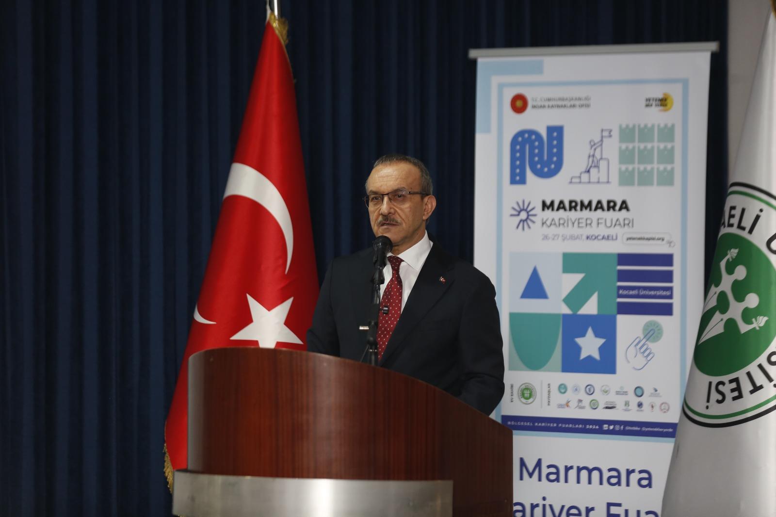 Çalıştayın açılış konuşmasını gerçekleştiren Kocaeli Üniversitesi KAGEM Müdürü Prof. Dr. Birsen Bilgili, çalıştay hakkında bilgiler ve üniversitenin kariyer merkezi çalışmalarını paylaştı. Ardından konuşmalarını gerçekleştirmek için kürsüye gelen Rektör Cantürk, Marmara Kariyer Fuarı'nın gençler ve firmalar için önemli bir fırsat olduğunu vurgulayarak destekleri için diğer üniversitelerin rektörlerine ve yönetimlerine teşekkür etti. Akabinde konuşmalarını gerçekleştirmek için kürsüye gelen Kocaeli Büyükşehir Belediye Başkanı Doç. Dr. Tahir Büyükakın, belediye olarak çalıştaya destek vereceklerini belirtirken, Kocaeli Valisi Seddar Yavuz ise şehirlerinde gerçekleştirilen çalıştaydan mutluluk duyduğunu ifade etti. CBİKO Başkanı Doç. Dr. Salim Atay’ın da bir konuşma gerçekleştirdiği çalıştayda Atay, Cumhurbaşkanlığı İnsan Kaynakları Ofisi Başkanlığı'ndaki çalışmalar hakkında bilgiler vererek Marmara bölgesinin sanat, kültür ve sanayide öncü olması gerektiğini belirtti ve destek sözü verdi.