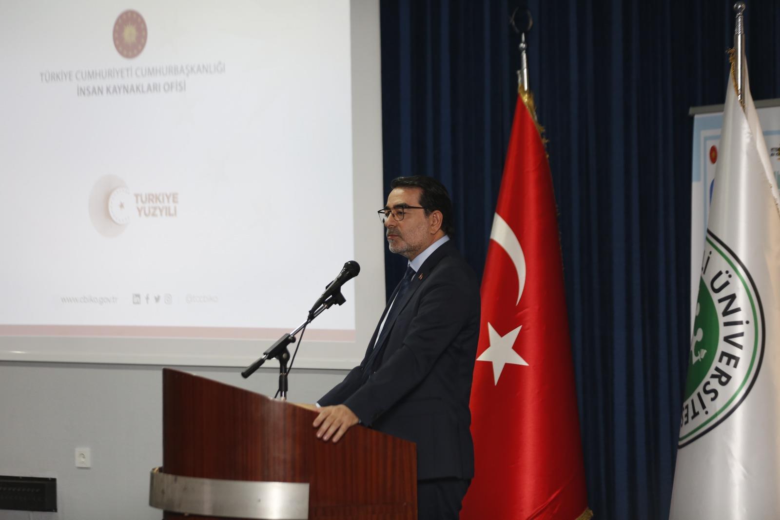 Rektörümüz Prof. Dr. Süleyman Özdemir, Cumhurbaşkanlığı İnsan Kaynakları Ofisi Başkanlığı'nın koordinasyonu ile 26-27 Şubat 2024 tarihlerinde Kocaeli Üniversitesi ev sahipliğinde gerçekleştirilecek olan Marmara Kariyer Fuarı çalıştayına katıldı. Çalıştaya, Cumhurbaşkanlığı İnsan Kaynakları Ofisi Başkanı Doç. Dr. Salim Atay, Kocaeli Valisi Seddar Yavuz, Kocaeli Büyükşehir Belediye Başkanı Doç. Dr. Tahir Büyükakın, Kocaeli Üniversitesi Rektörü Prof. Dr. Nuh Zafer Cantürk katılırken, Rektör Yardımcımız Prof. Dr. Celalettin Yanık, Üniversitemiz KAGEM Müdürü Doç. Dr. Armağan Türk ve Müdür Yardımcısı Öğretim Görevlisi Doktor Mustafa Cem Aldağ ile Öğretim Görevlisi Emrullah Tekin de hazır bulundu.