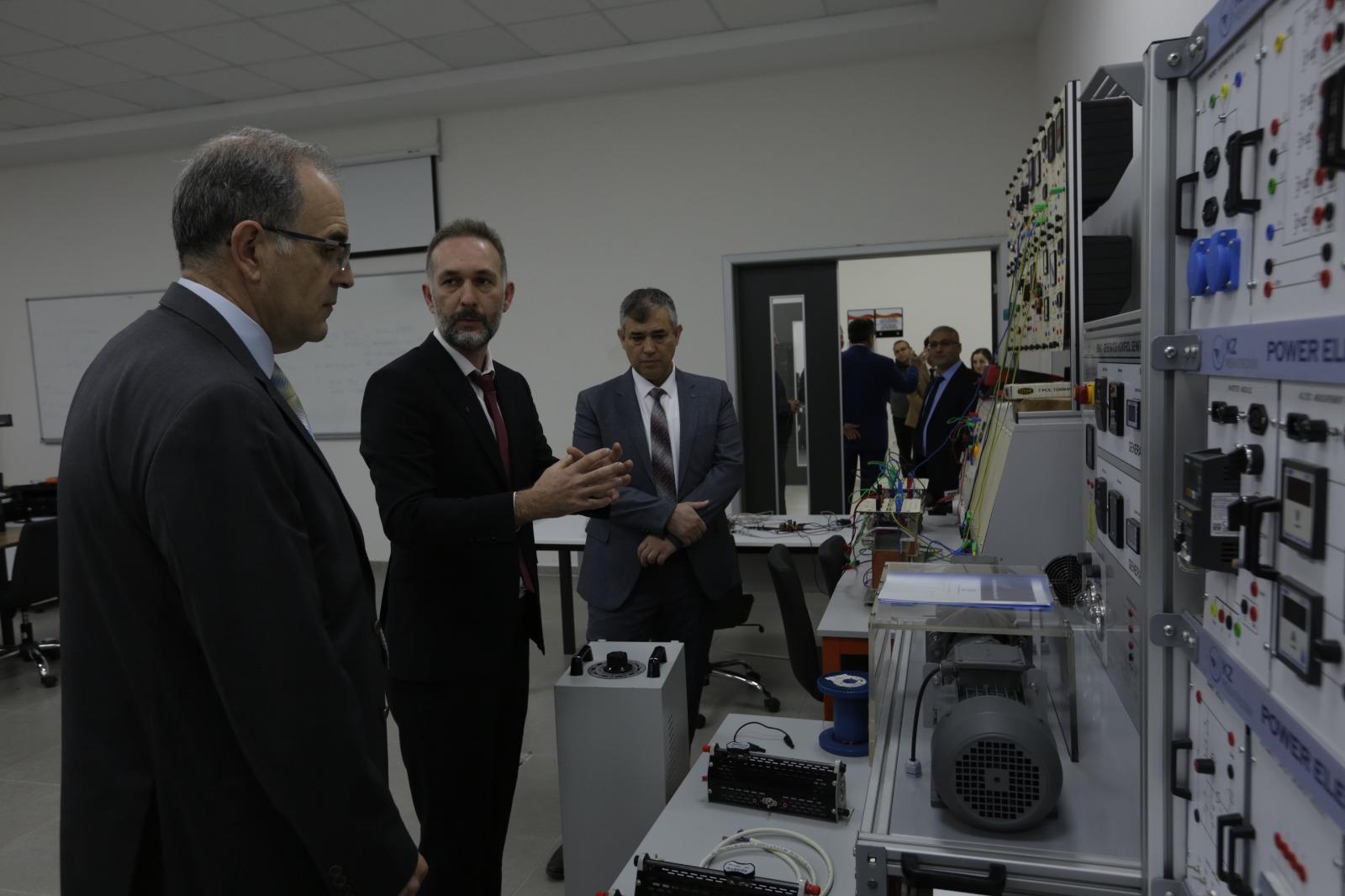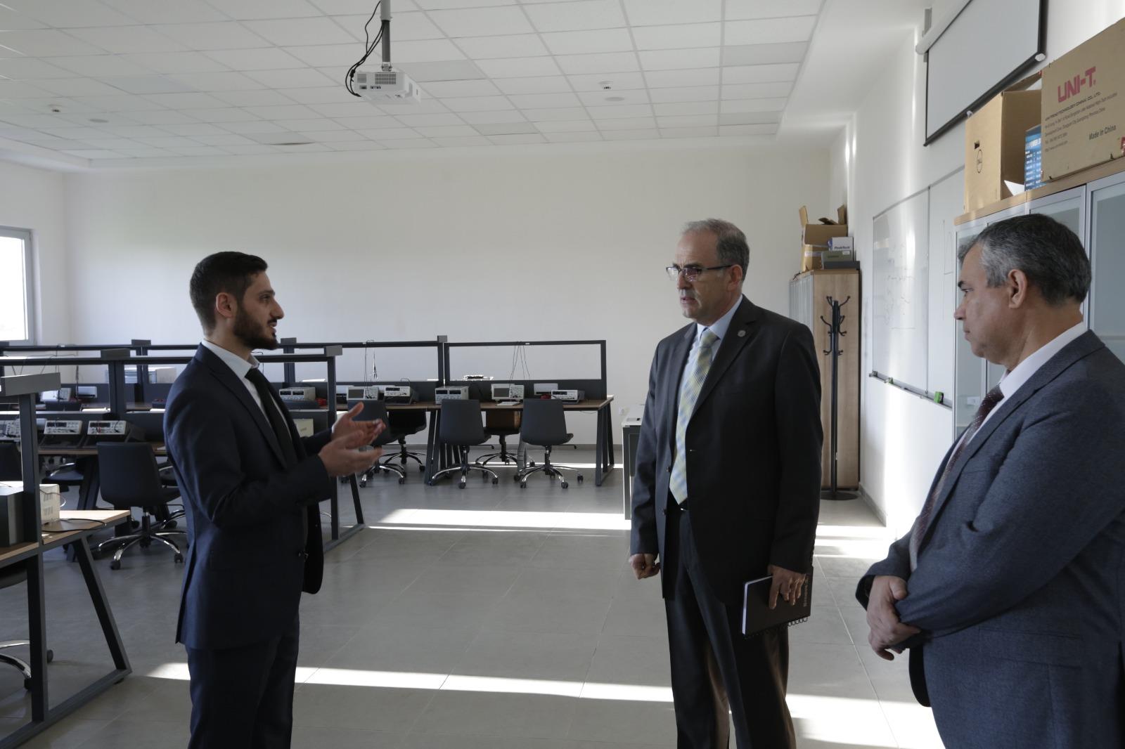 Akademik Kurul Toplantısı öncesinde Mühendislik ve Doğa Bilimleri Fakültesi binası, derslikleri ve laboratuvarlarını gezen Rektörümüz Prof. Dr. İsmail Boz, binanın fiziki yapısı, mevcut durumu ile ihtiyaç duyulan araç gereçler hakkında bilgiler aldı.