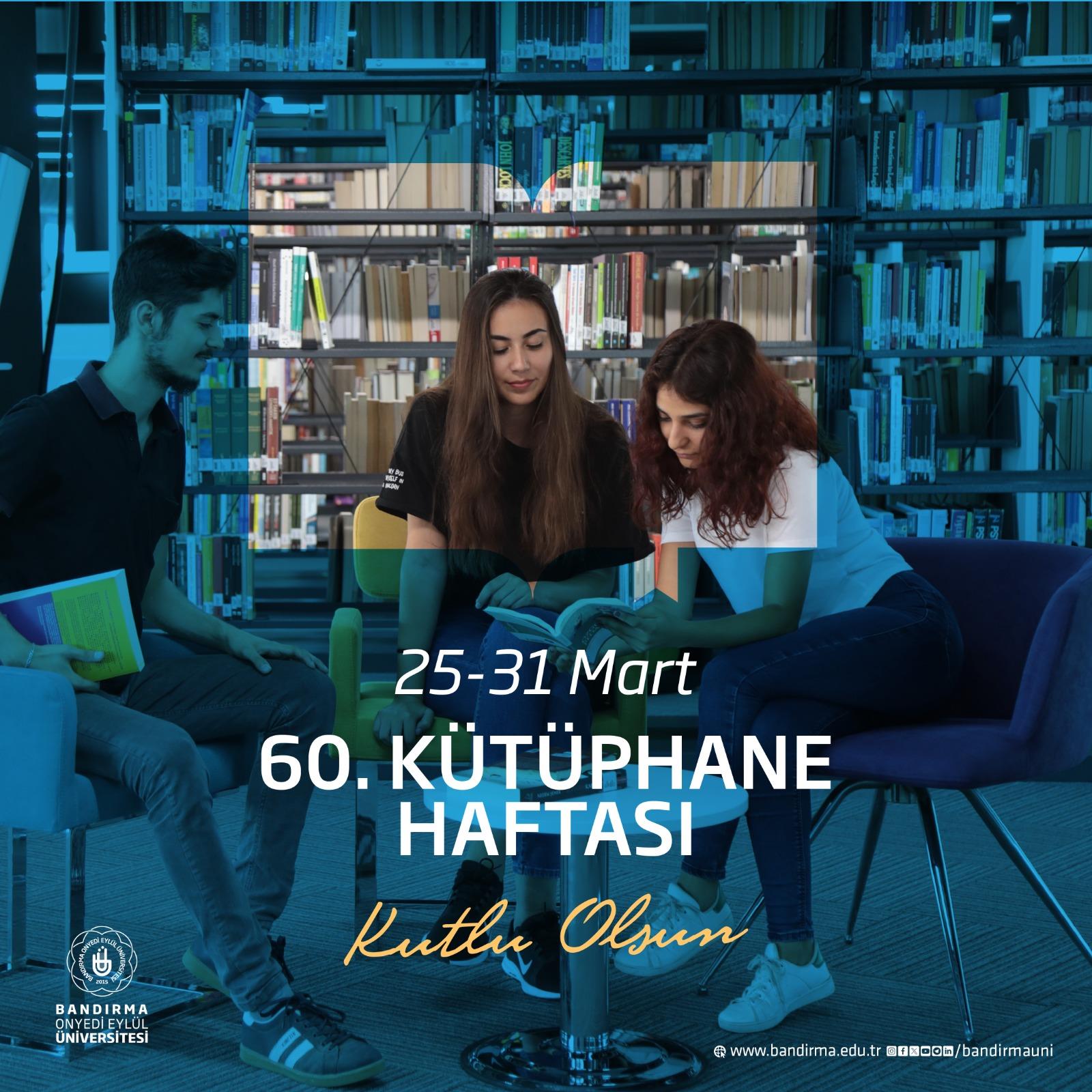 Ülkemizde her yıl Mart ayının son haftası, okuma alışkanlığı kazandırmak, kitap sevgisini artırmak ve kütüphanelerimizin gelişmesi için gerekli bilinci oluşturmak amacıyla “Kütüphane Haftası” olarak kutlanmaktadır. Mart ayının son pazartesi günü ile başlayarak ve bir hafta boyunca çeşitli etkinliklerle sürecek kütüphane haftası bu yıl “Dijital Geleceğin Anahtarı: Yapay Zekâ Temelli Akıllı Kütüphaneler” ana temasıyla kutlanacaktır.