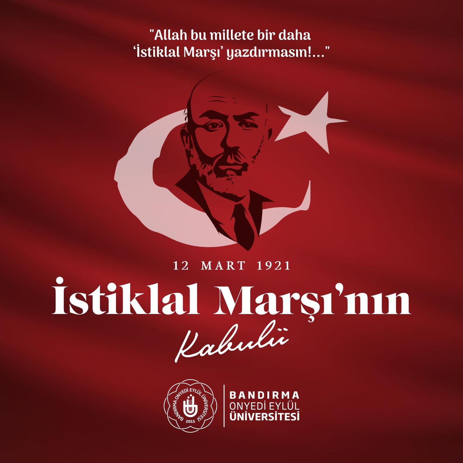 Kabul edilişinin 102. yıl dönümünü idrak ettiğimiz bu önemli günde, “Allah bu millete bir daha istiklal marşı yazdırmasın" diyerek böylesi kıymetli bir eseri kaleme alan ve Türk milletine armağan eden Milli Şairimiz Mehmet Akif Ersoy’u ve tüm İstiklal şehitlerimizi minnet, rahmet ve saygıyla anıyorum.