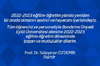 Rektörümüz Prof. Dr. Süleyman Özdemir’in 2022-2023 Eğitim-Öğretim Yılı Başlangıcı Dolayısıyla Mesajı