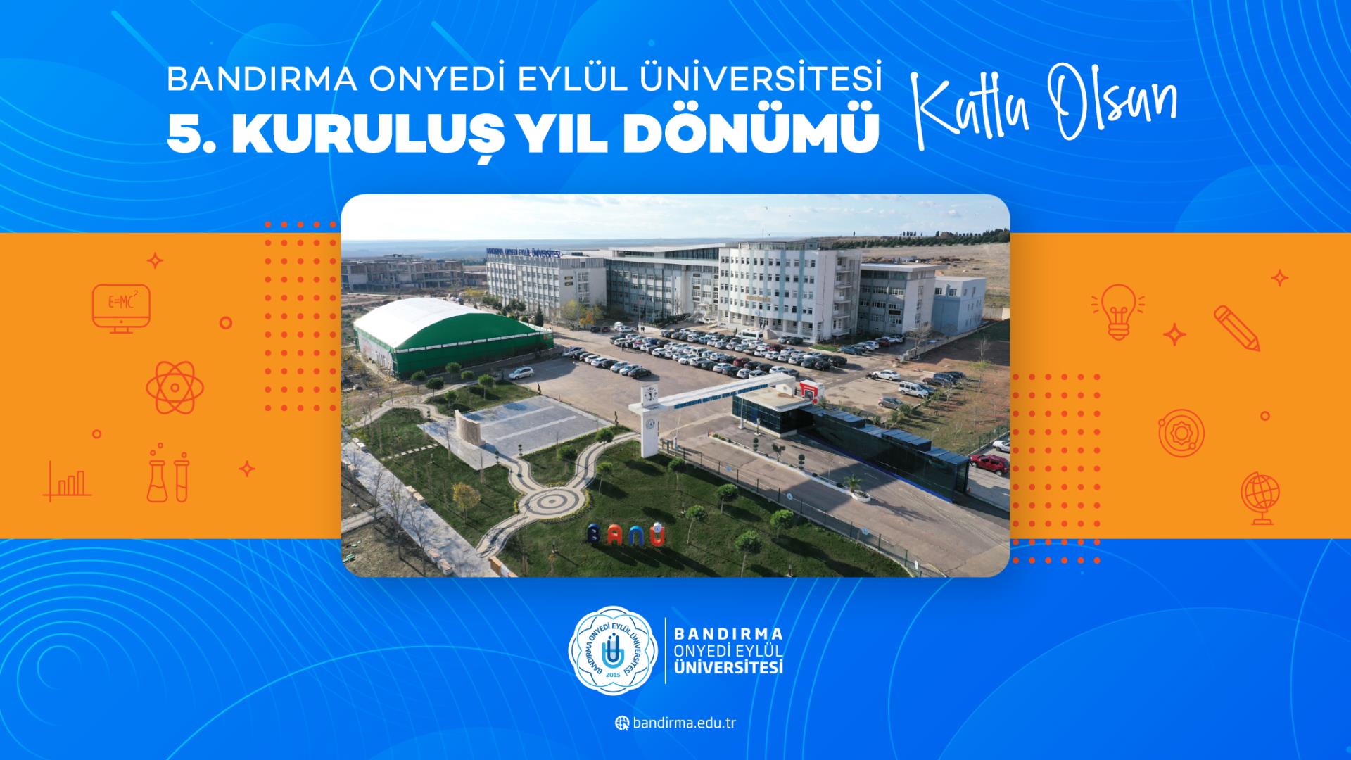 Türkiye Cumhuriyeti’nin temel değerleri çerçevesinde eğitim-öğretim faaliyetlerini sürdüren Bandırma Onyedi Eylül Üniversitesi, barındırdığı dinamik unsurlar ile aynı zamanda bir dünya üniversitesi olmayı da hedeflemektedir. Amacımız, zengin tarihi ve kültürel birikime sahip ve jeopolitik olarak önemli bir kavşak olma niteliği taşıyan bir şehirde kurulmuş olan Üniversitemizi, uluslararası saygınlığa sahip, bölgemizin kalkınmasında lokomotif görevi üstlenen, öğrencilerimizin ve çalışanlarımızın mensubu ve mezunu olmaktan gurur duyduğu bir üniversite yapmaktır.