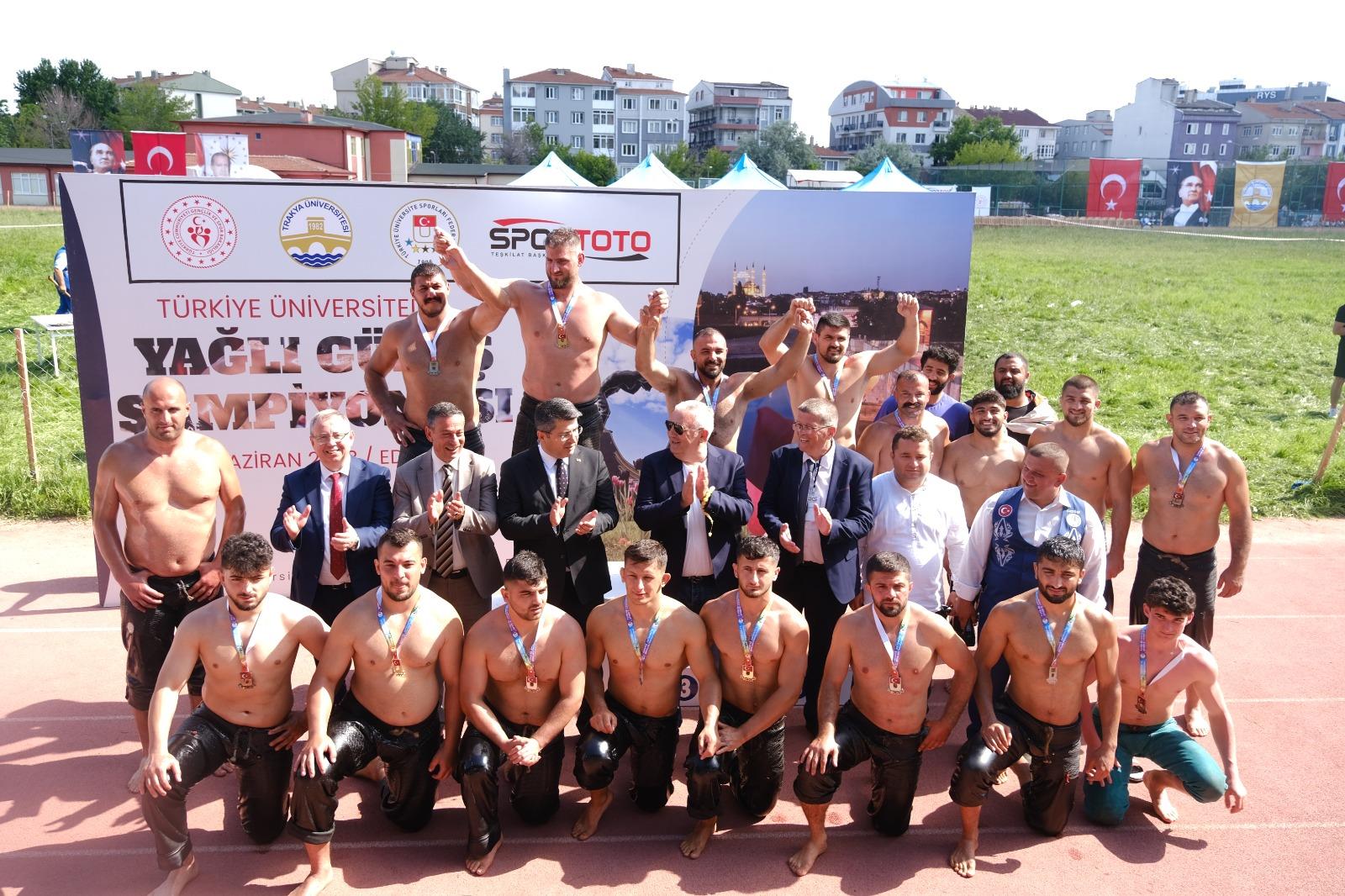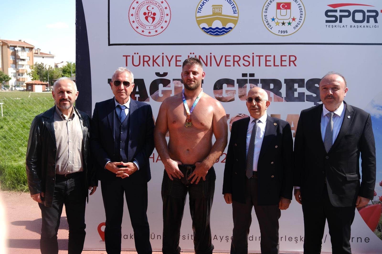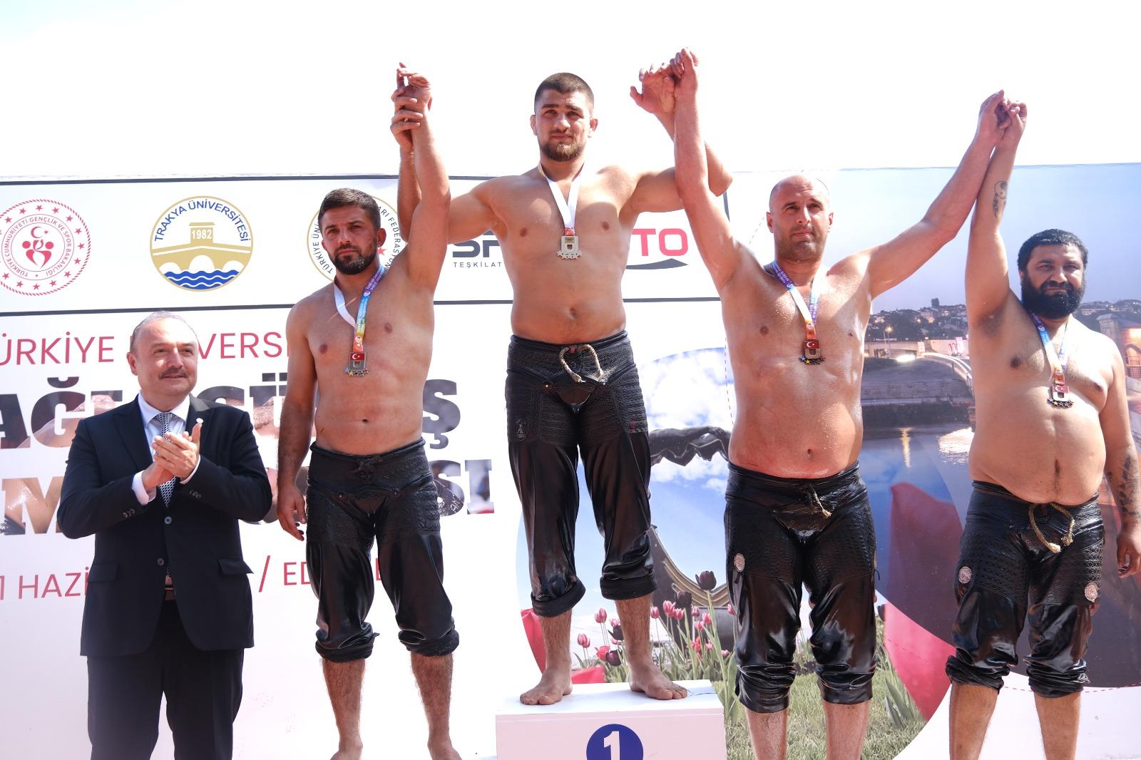 Dereceye giren pehlivanlara madalyaları Edirne Valisi Hüseyin Kürşat Kırbıyık, Rektörümüz Prof. Dr. Süleyman Özdemir, Trakya Üniversitesi Rektörü Prof. Dr. Erhan Tabakoğlu, Türkiye Üniversite Sporları Federasyonu Başkanı Prof. Dr. Mehmet Günay, ve Tarihi Kırkpınar Yağlı Güreşleri Güreş Ağası Seyfettin Selim tarafından takdim edildi.