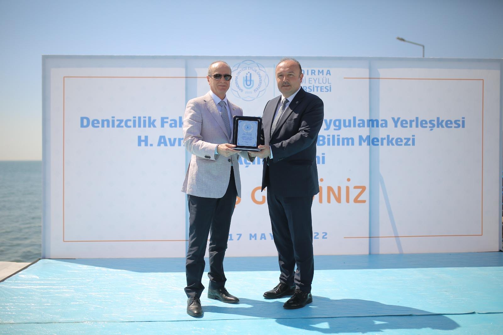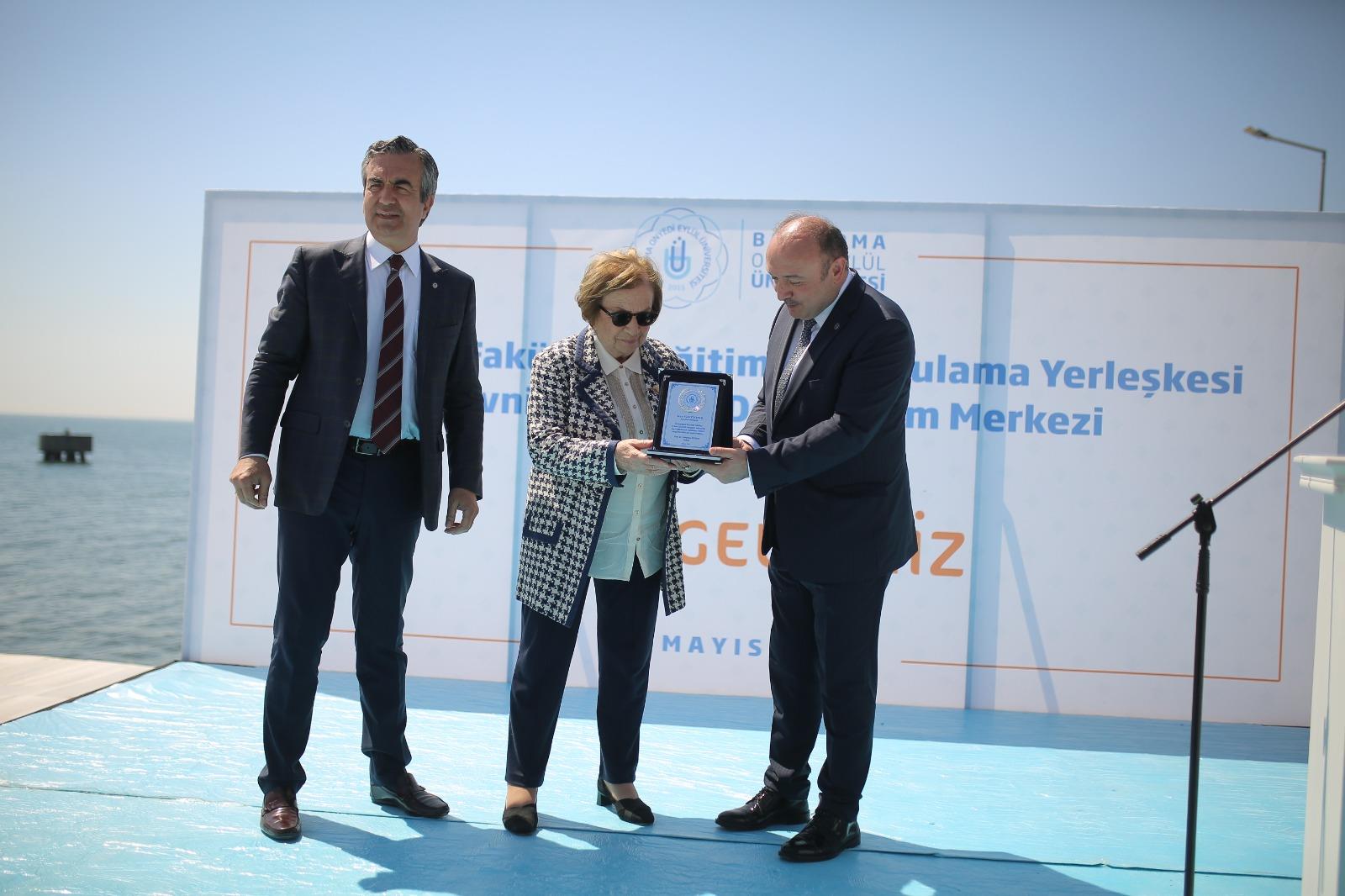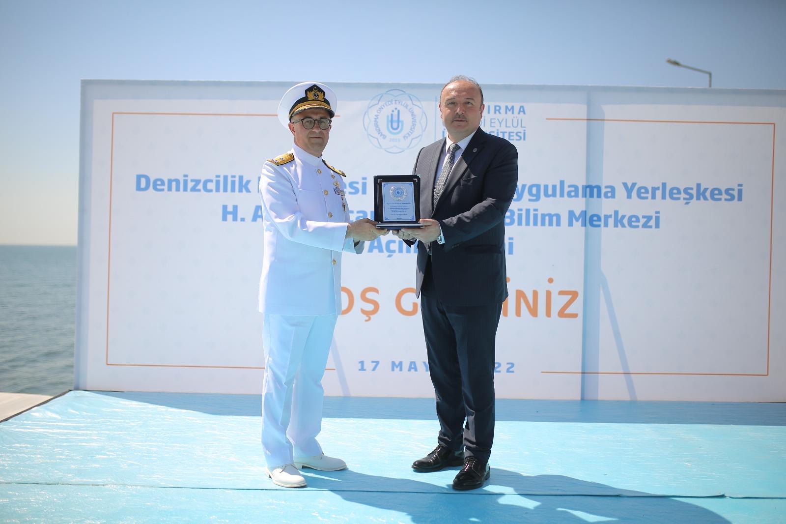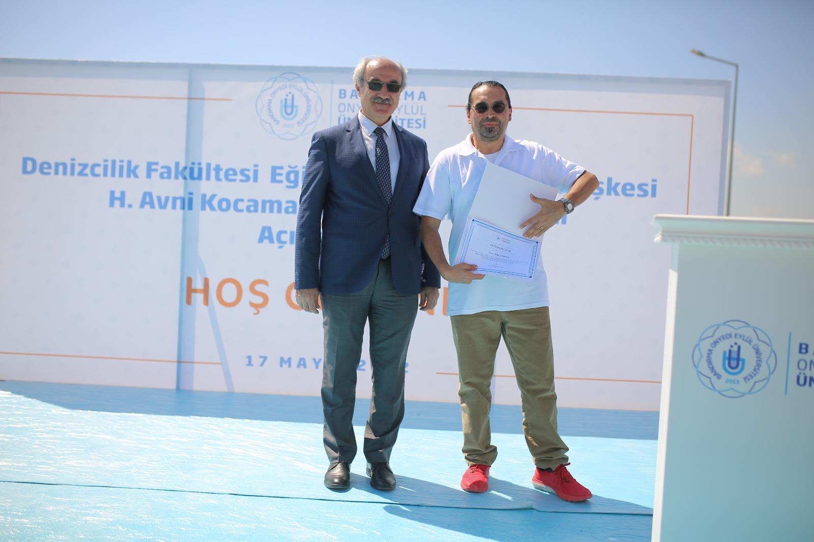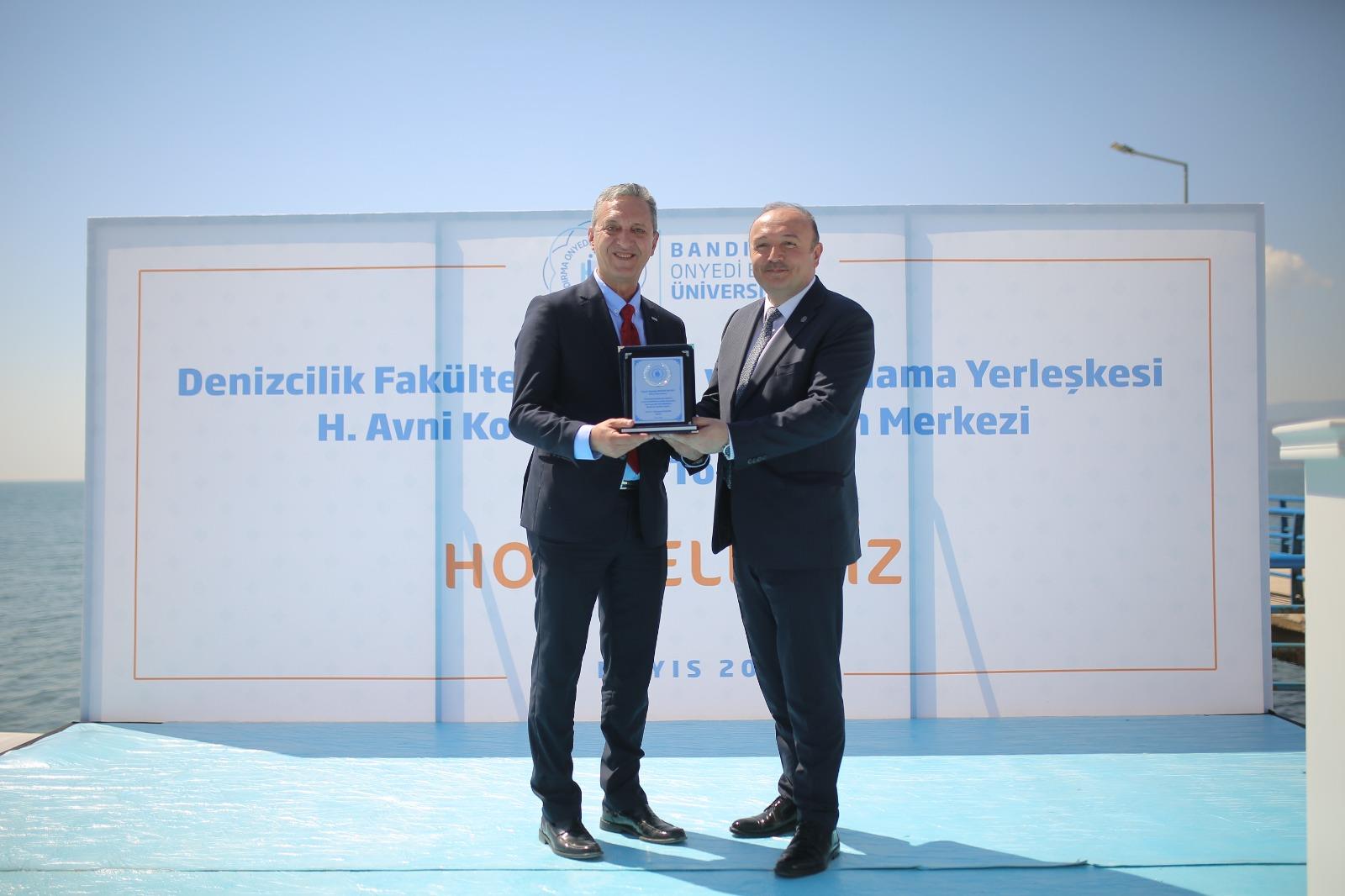 Protokol konuşmalarında kürsüye son olarak Rektörümüz Prof. Dr. Süleyman Özdemir geldi ve “Üniversitemizin kuruluşundan beri belki de en çok keyif aldığım, en çok mutlu olduğum etkinliklerden birinde bir aradayız. Buradaki deniz bilim merkezimiz benim de çok değer verdiğim bir yer. Geçtiğimiz 23 Nisan itibariyle 7. Yaşını tamamlayan ve her geçen gün büyüyen Üniversitemiz için Denizcilik Fakültesi hep ön planda oldu. Denizcilik Fakültesi ve denizcilikle ilgili atılımlarda da iki ismin çok etkisi oldu. Bunlardan biri Osman Bey’dir. Çünkü bir araya geldiğimizde hep bana bunu sordu ve bunu önceledi. Buradan hareketle ve deniz şehrinde yaşıyor olmamız sebebiyle denizcilik fakültemize önem verdik. Bu anlamda Türkiye’de ihtiyaç var. Çünkü çok fazla denizcilik fakültesi yok. Bugün en önde gelen denizcilik fakültelerinden biri olduğumuzu söyleyebilirim. Abartmadan söylüyorum; en modern, en çağdaş alt yapıya sahip denizcilik fakültesine sahibiz. Burayı açmamızda pek çok kişinin emeği var. Özellikle bilim merkezimize ismini verdiğimiz, çok büyük destekleri olan Avni Kocaman’ı rahmetle anıyoruz. Ve emeği geçen herkese teşekkür ediyoruz.” dedi.