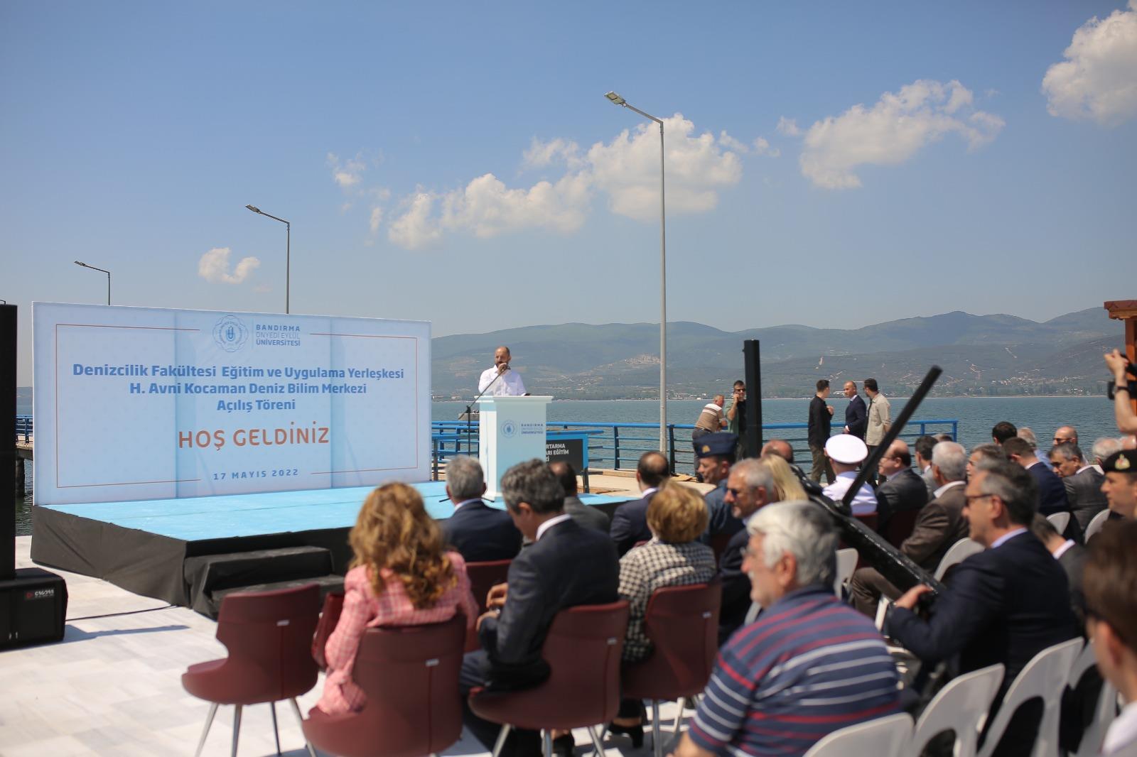 Üniversitemiz Denizcilik Fakültesi Eğitim ve Uygulama Yerleşkesi H. Avni Kocaman Deniz Bilim Merkezi açılışı 17 Mayıs günü Rektörümüz Prof. Dr. Süleyman Özdemir’in ev sahipliği yaptığı bir programla gerçekleşti. Programa Bandırma Kaymakamı Engin Aksakal, Gönen Kaymakamı Arslan Yurt, Manyas Kaymakamı Koray Çelik, Erdek Mayın Filosu Komutanı Tuğa. Refik Levent Tezcan, 6. Ana Jet Üs Komutanı Hv. Plt. Tuğg. Selahattin Akalp, Balıkesir Cumhuriyet Başsavcısı Alpaslan Kaplan, Bandırma Belediye Başkan V. A. Levent Coşkun, Bandırma Cumhuriyet Başsavcısı Cüneyt Demirdaş, Bandırma Ağır Ceza Mahkemesi Başkanı ve Adalet Komisyonu Başkanı Mehmet Tarakçı, Kocaman Balıkçılık ailesi, il ve ilçe protokolü, Rektör Yardımcılarımız Prof. Dr. Alpaslan Serel, Prof. Dr. Feyzullah Temurtaş ve Prof. Dr. Celalettin Yanık, Genel Sekreterimiz Cihangir Boz, Denizcilik Fakültesi Dekanımız Prof. Dr. Mustafa Sarı, akademik ve idari yöneticilerimiz ve personelimiz, öğrencilerimiz, basın mensupları ve çok sayıda misafir katıldı.