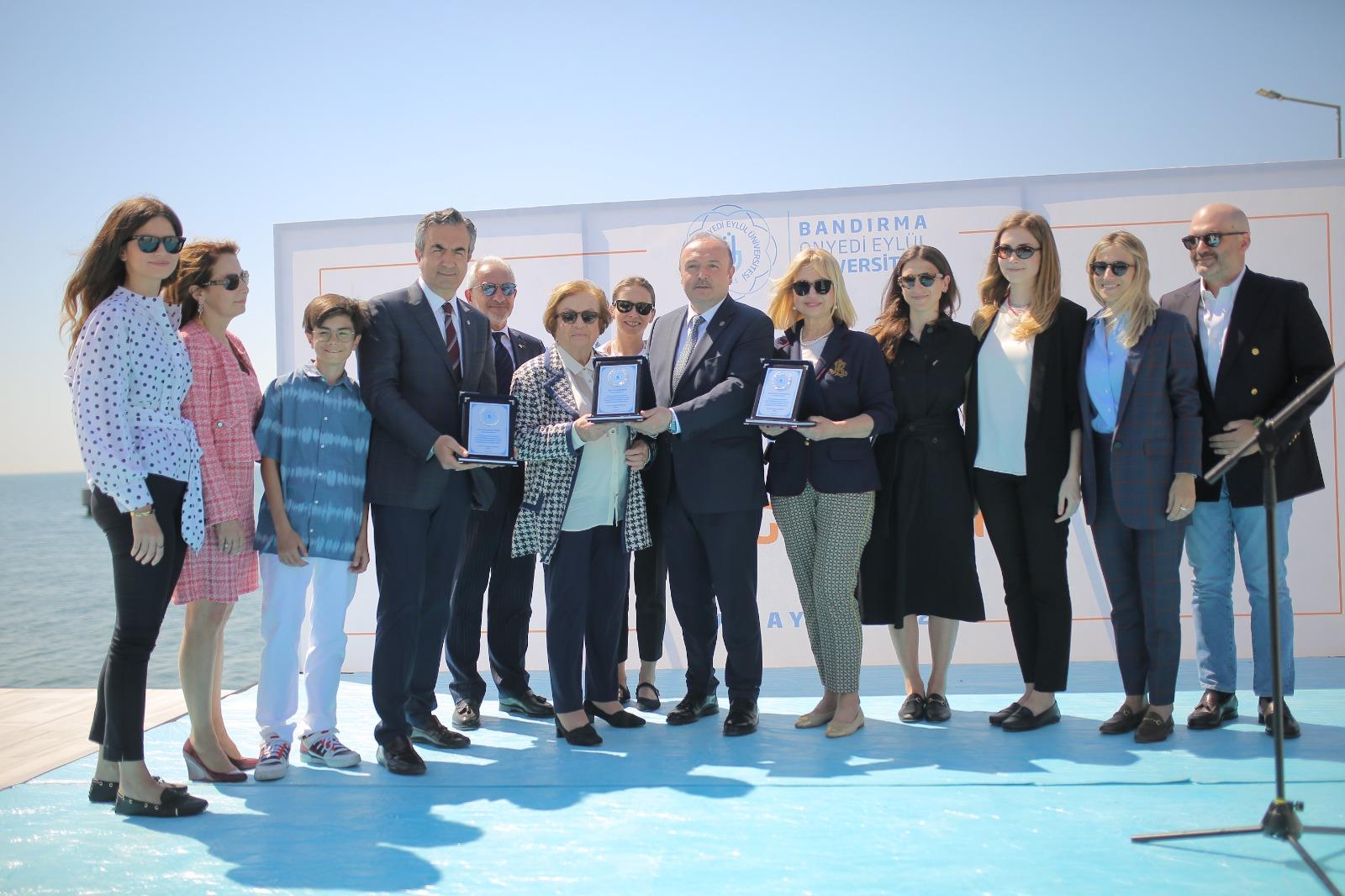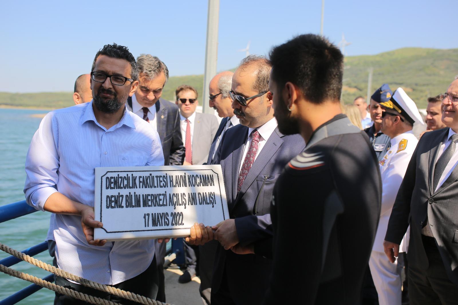 Konuşmaların ardından plaket takdim törenine geçildi. Kocaman ailesi, Deniz Kuvvetleri Komutanlığı, Bandırma Belediyesi, Marmara Belediyesi ve Kale Grubu’na plaketleri Rektörümüz Prof. Dr. Süleyman Özdemir tarafından verilirken Pehlivan Orman Ürnleri, Soylu Ajans, Jotun Boya, Aqua Grubu, Burhaniye Ticaret Odası, Erdek Dalış Kulübü, Yücel Kocabıyık’a Denizcilik Dekanımız Prof. Dr. Mustafa Sarı tarafından verildi. Deniz Bilim Merkezimize sanat eserleriyle katkı sağlayan sanatçılara da ayrıca katılım belgesi takdimi yapıldı.
