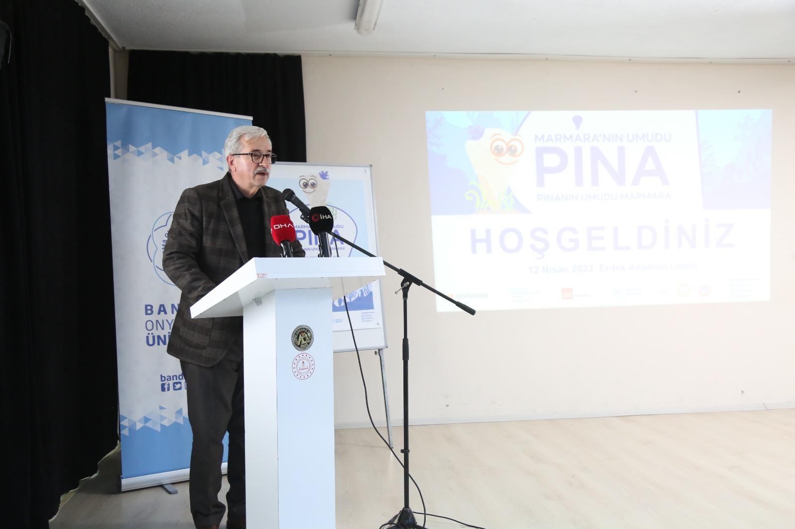 Denizcilik Fakültemizin koordinasyonu ve Borusan Holding ile Impact Hub İstanbul’un ‘Sürdürülebilirlik Fayda Programı’ kapsamında, Erdek Kaymakamlığı, Erdek Belediyesi ve Erdek Ticaret Odası'nın destekleriyle yürütülen ‘Marmara’nın Umudu Pina’ projesinin ilk toplantısı gerçekleştirildi. Erdek Anadolu Lisesi’nde gerçekleşen toplantıya Rektörümüz Prof. Dr. Süleyman Özdemir, Erdek Belediye Başkanı Burhan Karışık, Erdek Ticaret Odası Başkanı Turan Gün, Erdek İlçe Milli Eğitim Müdürü Şafak Turan, Denizcilik Fakültesi Dekanımız Prof. Dr. Mustafa Sarı, Denizcilik Meslek Yüksekokulu akademisyenlerimizden Doç. Dr. Uğur Karadurmuş, basın mensupları ve vatandaşlar katıldı.