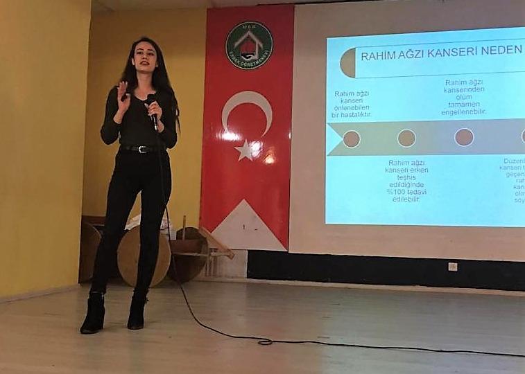 Üniversitemiz Sağlık Bilimleri Fakültesi Hemşirelik Bölümü öğrencileri, Erdek Halk Eğitim Merkezi’nde kursiyerlere yönelik olarak "Kanserden Primer Korunma: Erken Tanı ve Tarama Programları" konulu bir eğitim gerçekleştirdi.