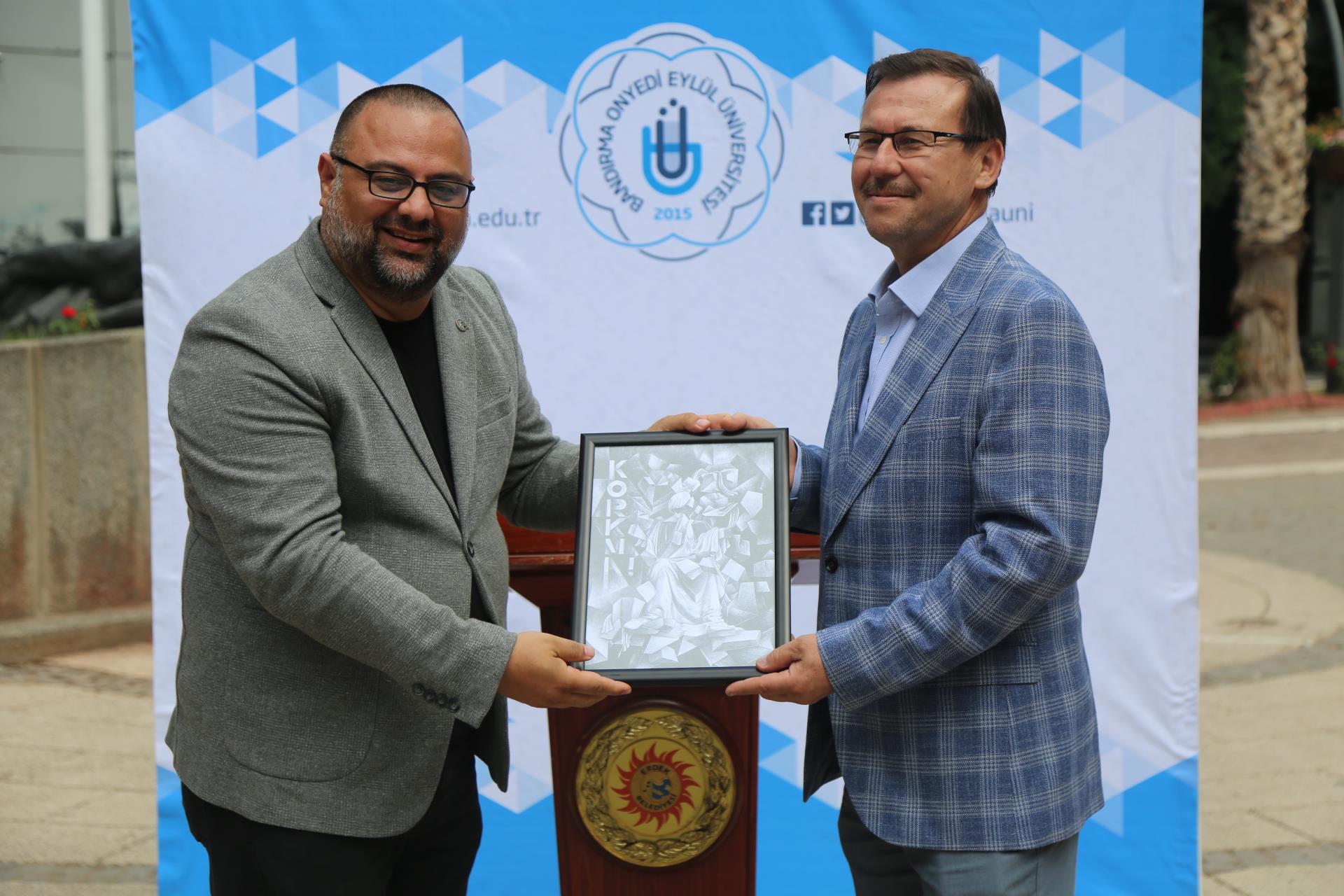 Konuşmaların ardından tüm protokol üyelerinin katılımıyla kurdele kesim töreni gerçekleştirildi. Törende ayrıca Rektörümüz Prof. Dr. Süleyman Özdemir tarafından sergiye desteklerinden dolayı Erdek Belediye Başkanı Burhan Karışık’a plâket takdiminde bulunurken, Başkan Burhan Karışık tarafından da günün anısına Rektörümüze hediye takdiminde bulunuldu. Programda daha sonra sergilenen eserler incelendi.