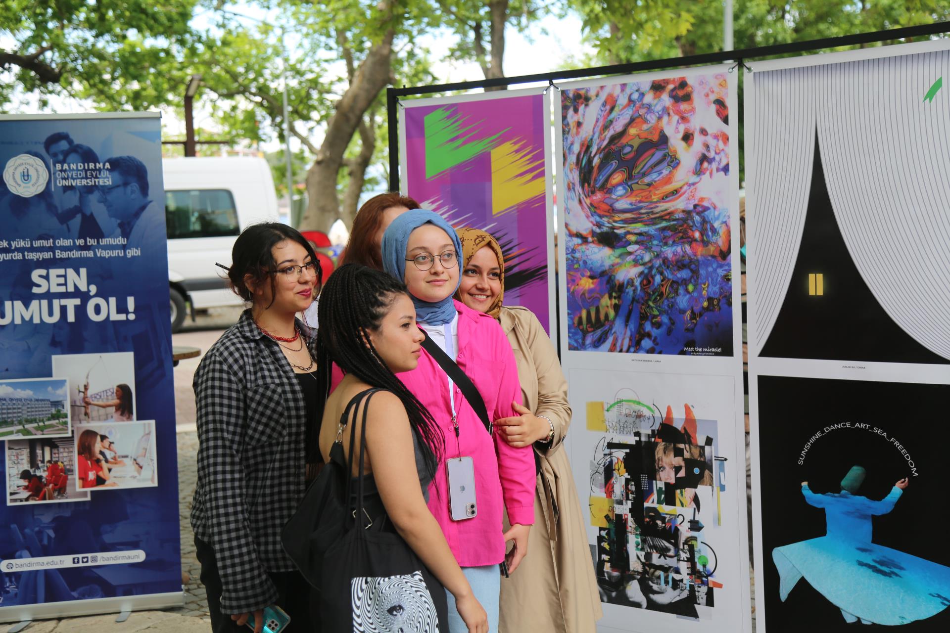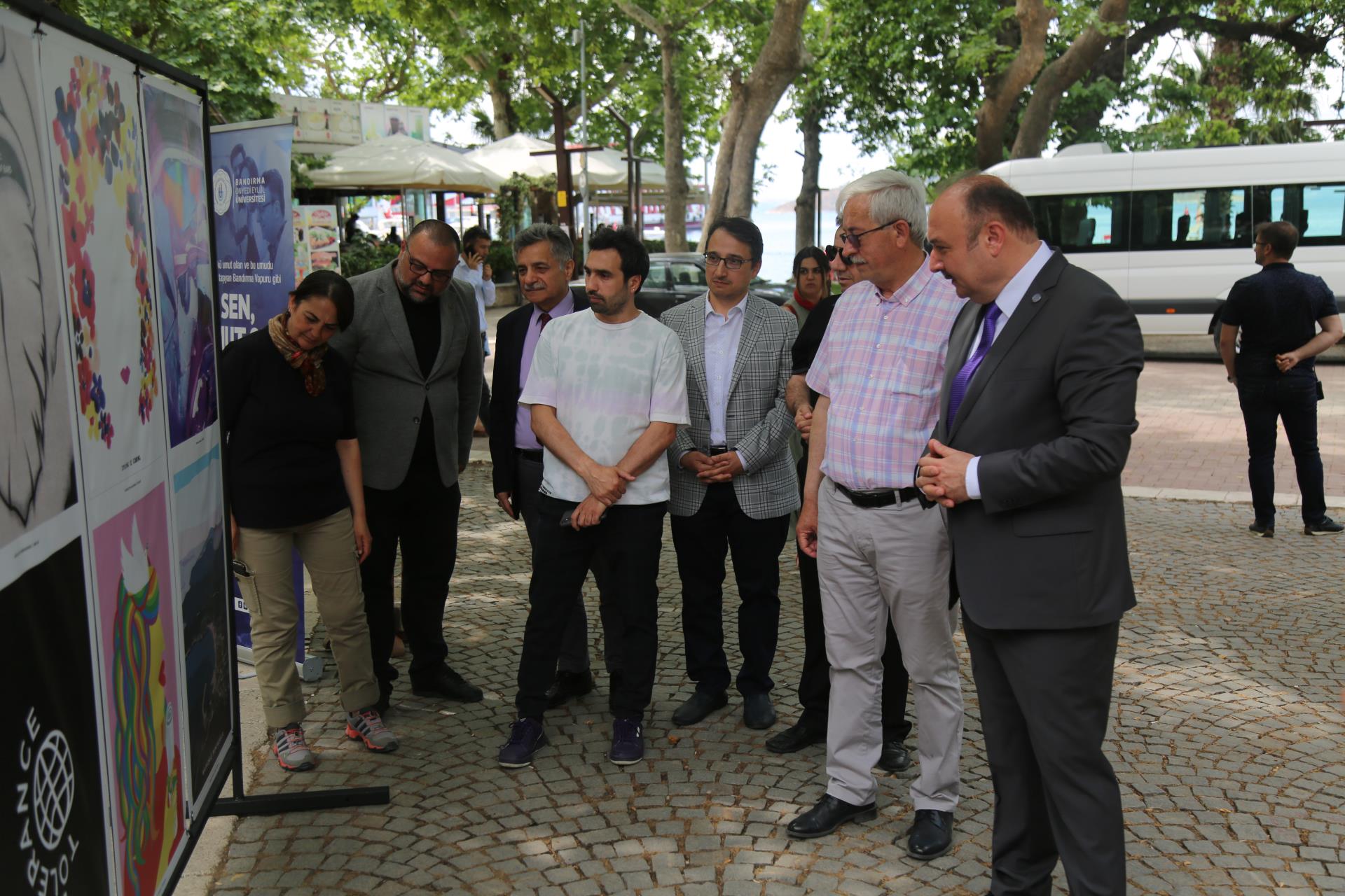 Üniversitemiz Sanat, Tasarım ve Mimarlık Fakültesi tarafından Erdek Belediyesi iş birliği ile düzenlenen “2. Uluslararası Davetli Kapıdağ Görsel Sanatlar Sergisi” açıldı. Erdek Cumhuriyet meydanında gerçekleşen serginin açılışına Rektörümüz Prof. Dr. Süleyman Özdemir, Erdek Belediye Başkanı Burhan Karışık, Rektör Yardımcımız ve aynı zamanda Sanat, Tasarım ve Mimarlık Fakültesi Dekanımız Prof. Dr. Celalettin Yanık, Genel Sekreterimiz Cihangir Boz, sergi küratörleri Sanat, Tasarım ve Mimarlık Fakültesi akademisyenlerimiz Doç. Dr. Refik Yalur, Dr. Öğr. Üyesi İbrahim Yılmaz, Dr. Öğr. Üyesi Ersan Sarıkahya, sivil toplum kuruluşları temsilcileri, basın mensupları, öğrencilerimiz ve çok sayıda vatandaş katıldı.
