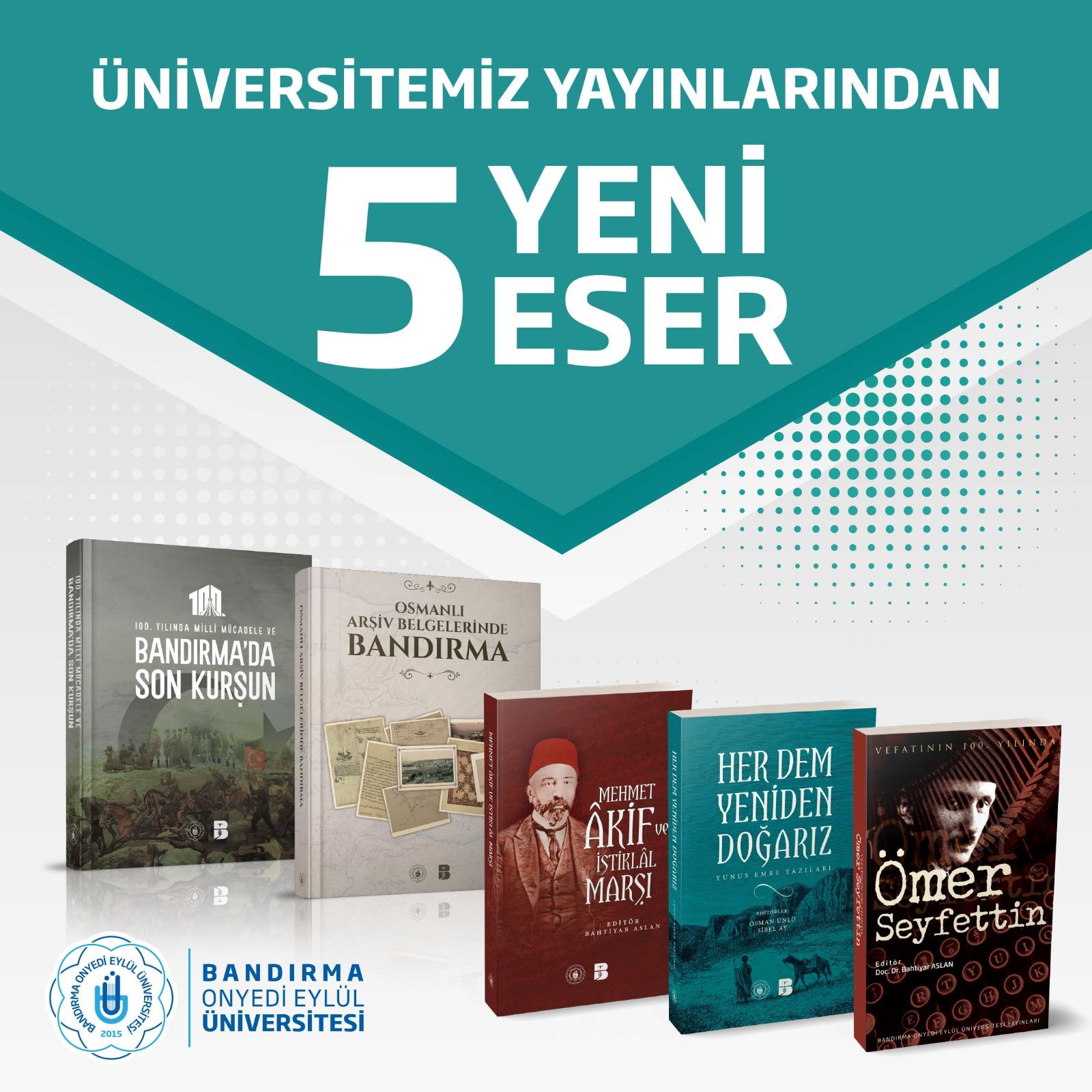 Hazırlanması ve yayımlanmasında emeği geçen kıymetli bilim insanlarına, Kurumsal İletişim Koordinatörlüğümüzün değerli personeline ve basımına katkı veren Balıkesir Büyükşehir Belediye’sine teşekkürlerimizi sunar, bu 5 kıymetli eserin şehrimize, ülkemize ve bilim dünyasına hayırlı olmasını dileriz.