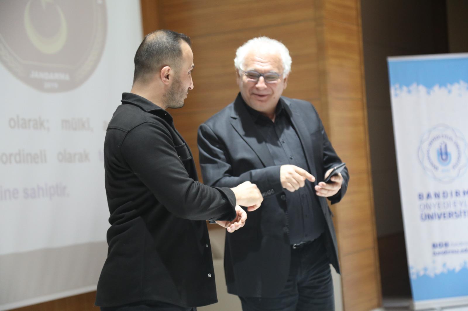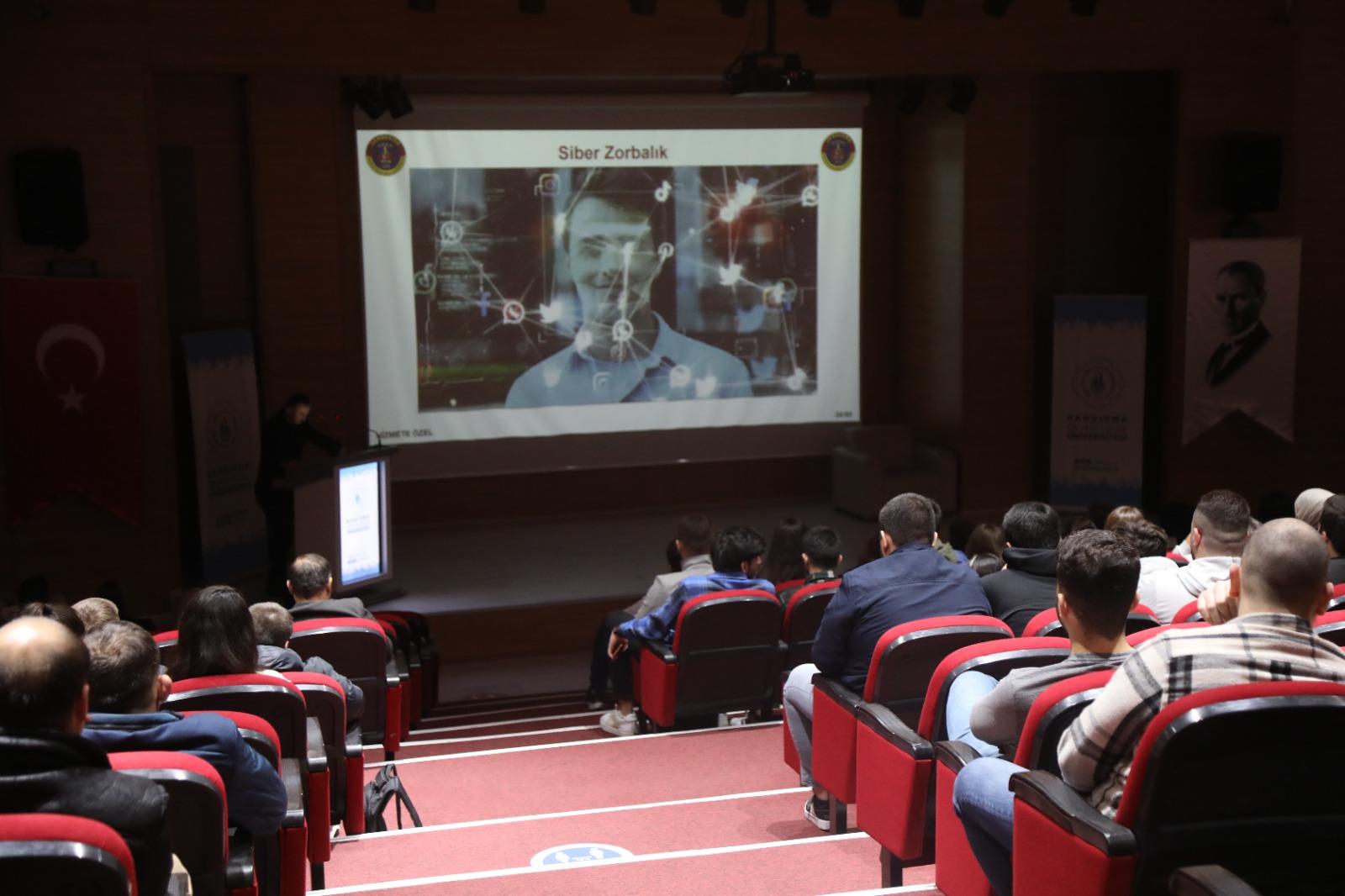 Üniversitemiz ve Balıkesir Valiliği İl Jandarma Komutanlığı İş Birliği ile kişisel güvenlik, suçtan korunma yöntemleri, siber güvenlik ve siber zorbalık eğitimi düzenlendi. Prof. Dr. Fuat Sezgin Konferans Salonu’muzda Jandarma Astsubayı, Siber Suç Araştırma Tim Komutanı Çağlar Taçyıldız tarafından verilen eğitim programına Rektör Yardımcımız Prof. Dr. Alpaslan Serel, Genel Sekreterimiz Cihangir Boz, Öğrenci İşleri Daire Başkanımız Davut Araç ile akademik ve idari personelimiz ve öğrenclerimiz katıldı.