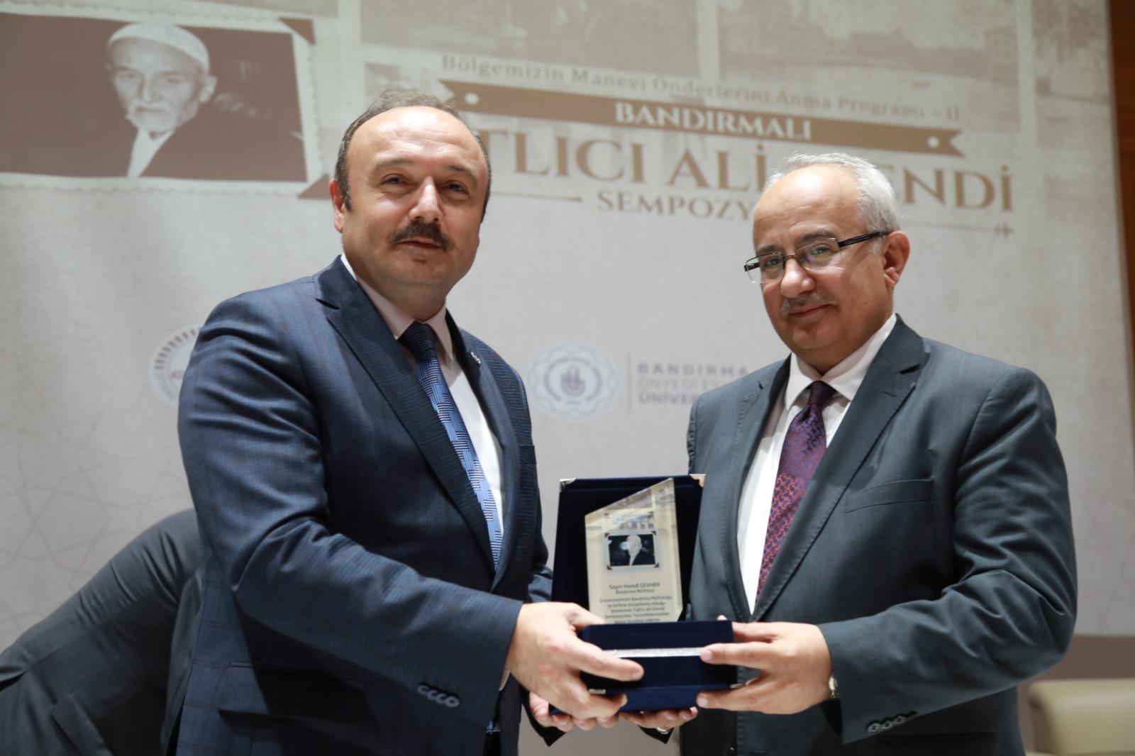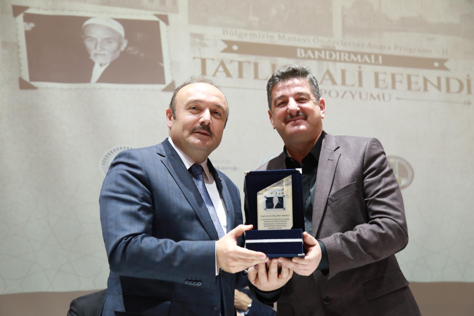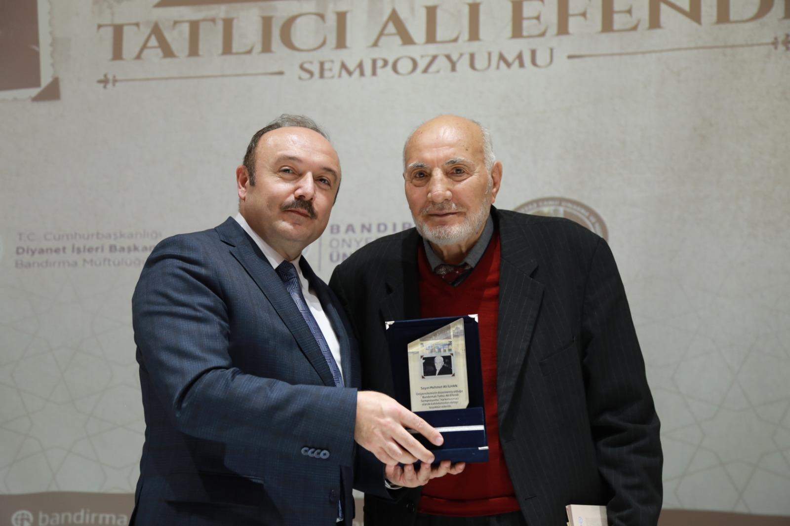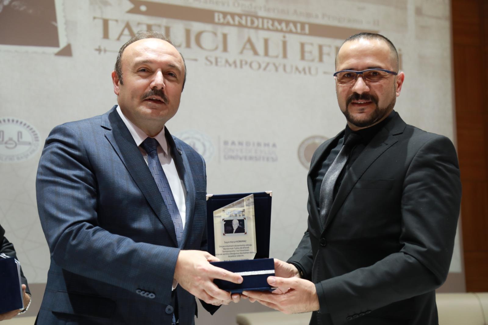 Sempozyumda son konuşmayı ise; Bandırmalı Tatlıcı Ali Efendi’nin hayatını konu alan “İncitmedi İncinmedi” belgeselinin yönetmeni Harun Korkmaz gerçekleştirdi. Sempozyum moderatör ve konuşmacılara Rektörümüz Süleyman Özdemir tarafından plaket takdim edilmesiyle son buldu. Sempozyumda ayrıca tüm katılımcılara sempozyum için hazırlanmış olan ve Bandırmalı Tatlıcı Ali Efendi’nin hayatını konu alan “İncitmedim İncinmedim” adlı kitap hediye edildi.