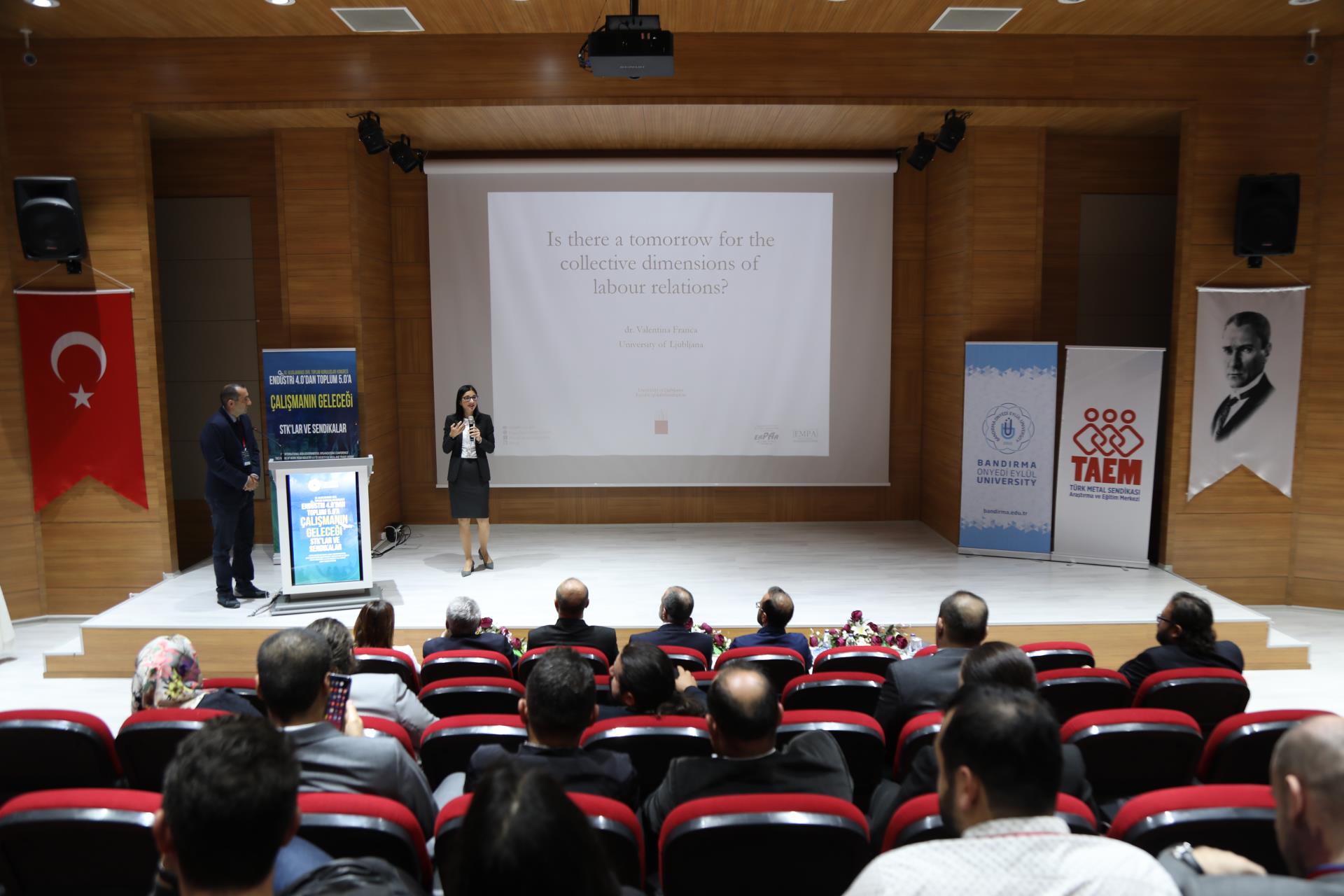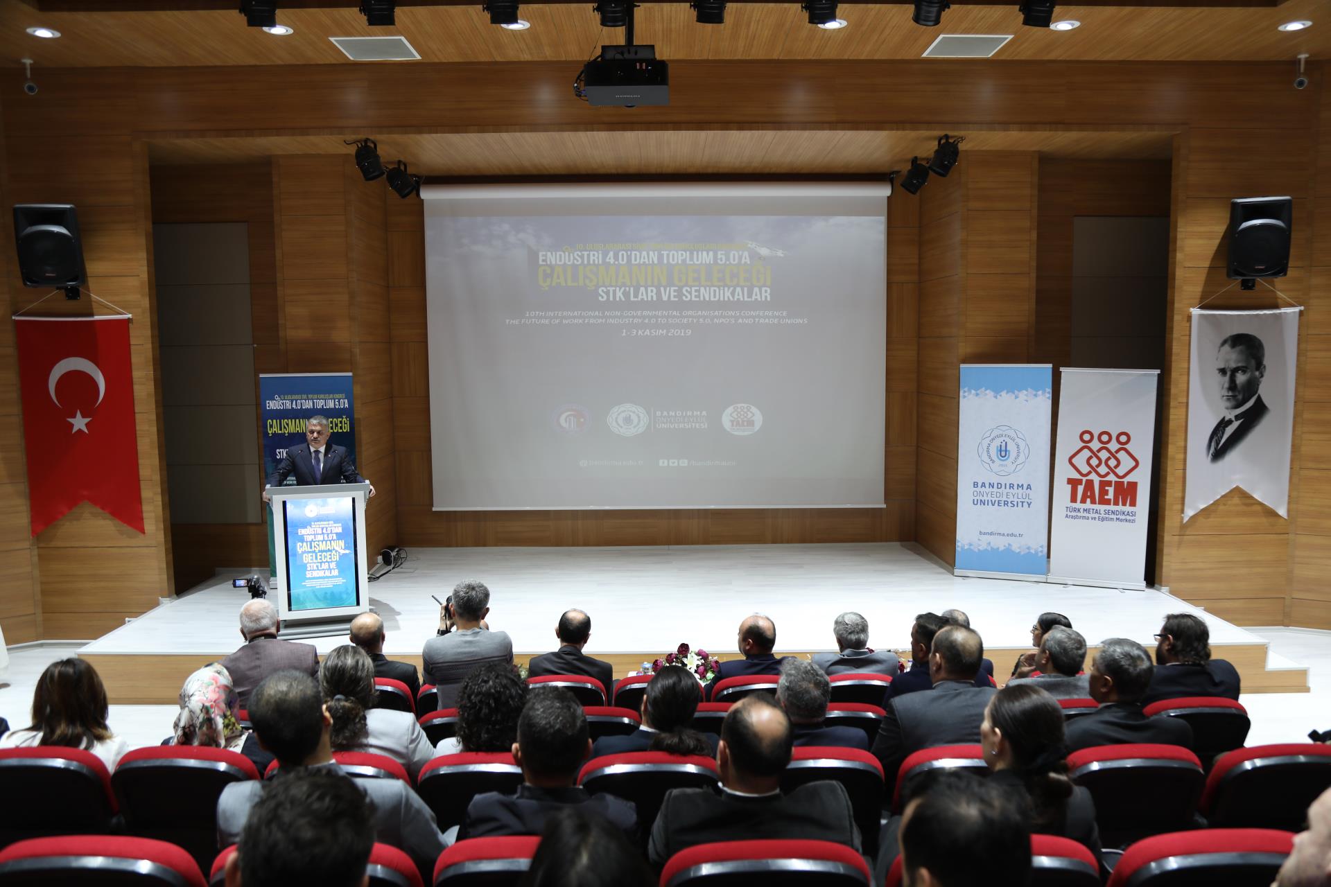 Açılış konuşmasını Kongre Düzenleme Kurulu Başkanı, Üniversitemiz Sosyal Bilimler Enstitüsü Müdürü Prof. Dr. Serap Palaz’ın yaptığı programda, sırasıyla Türk Metal Sendikası Genel Sekreteri Av. Taliphan Yıldız, Çanakkale Onsekiz Mart Üniversitesi Rektör Yardımcısı Prof. Dr. Bünyamin Bacak, Rektörümüz Prof. Dr. Süleyman Özdemir, Balıkesir milletvekili Yavuz Subaşı ve Balıkesir Valimiz Ersin Yazıcı konuşmalarını gerçekleştirdi. Protokol konuşmaları sonrasında, İskenderun teknik Üniversitesi Rekrörü Prof. Dr. Türkay Dereli ile Ljunljana Üniversitesi Öğretim Üyesi Doç. Dr. Valentina Franca tarafından sunumlar gerçekleştirildi.