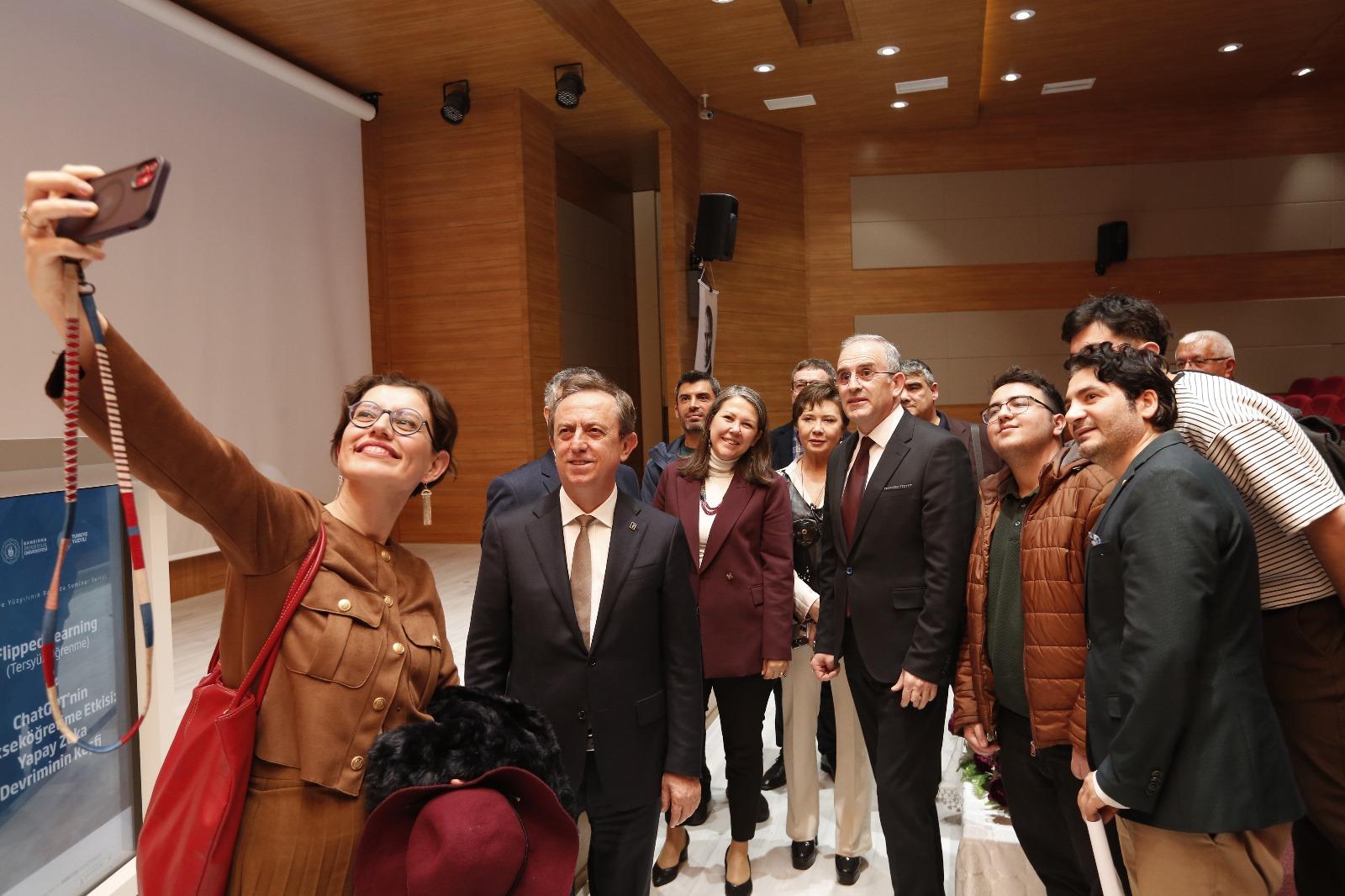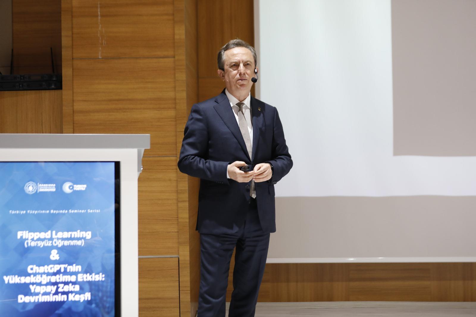 “Türkiye Yüzyılının Başında” seminer serimiz kapsamında, MEF Üniversitesi Rektörü Prof. Dr. Muhammed Şahin’in davetli konuşmacı olduğu “Flipped Learning/Tersyüz Öğrenme & ChatGPT’nin Yükseköğretime Etkisi: Yapay Zeka Devriminin Keşfi” konulu seminer, Rektörümüz Prof. Dr. İsmail Boz’un katılımıyla gerçekleştirildi.