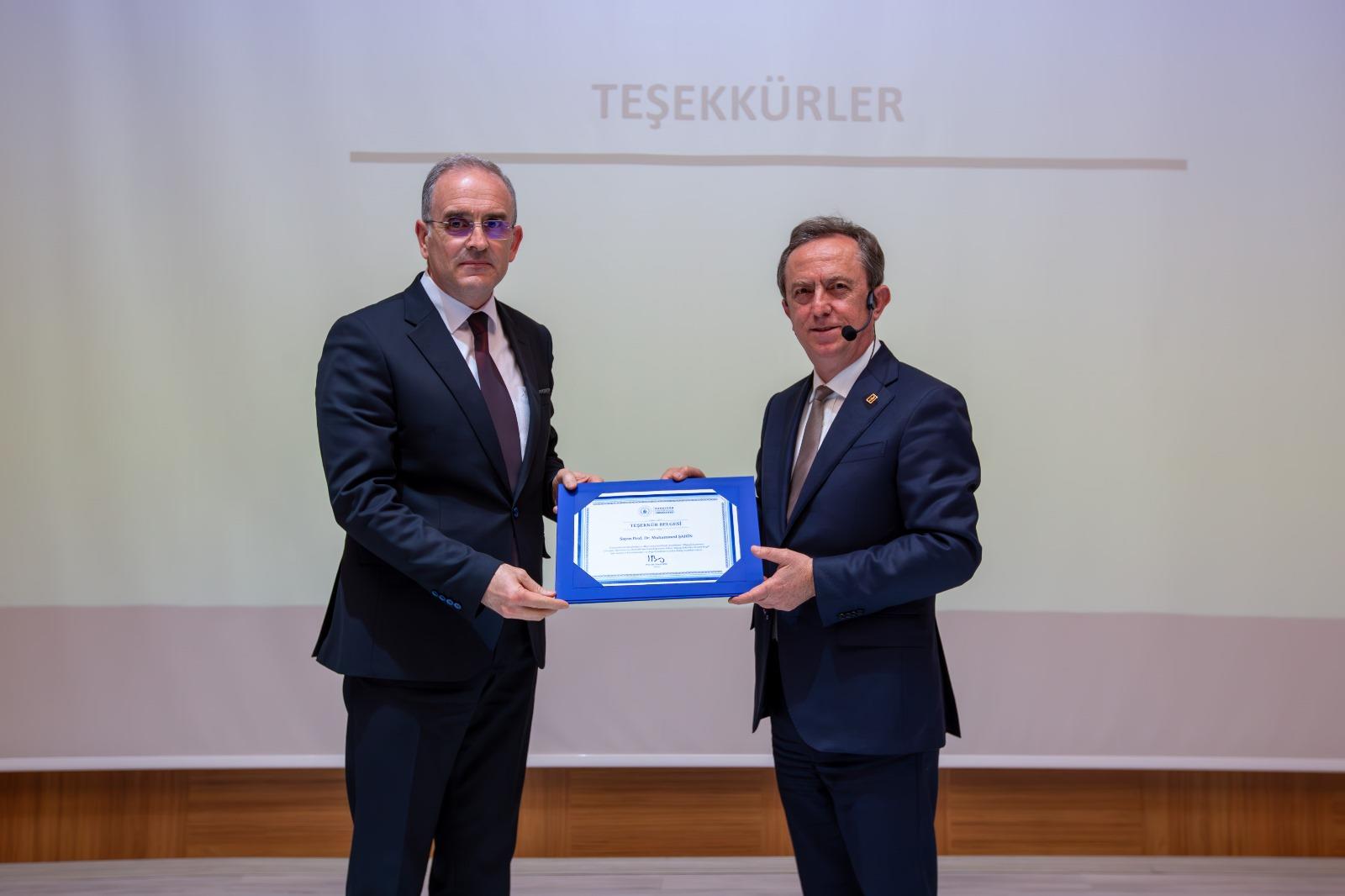 “Türkiye Yüzyılının Başında” seminer serisi kapsamında düzenlenen “Flipped Learning/Tersyüz Öğrenme & ChatGPT’nin Yükseköğretime Etkisi: Yapay Zeka Devriminin Keşfi” konulu seminer, Rektörümüz Prof. Dr. İsmail Boz’un davetli konuşmacımız MEF Üniversitesi Rektörü Prof. Dr. Muhammed Şahin’e kitap ve teşekkür belgesi takdimlerinin ardından sona erdi.