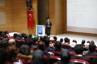 Prof. Dr. Fuat Sezgin Konferans Salonu’nda gerçekleşen seminere Rektör Yardımcılarımız Prof. Dr. Feyzullah Temurtaş ile Prof. Dr. Ebru Kaya Mutlu, akademik ve idari personelimiz, basın mensupları, vatandaşlar ve öğrenciler katılım gösterdi.