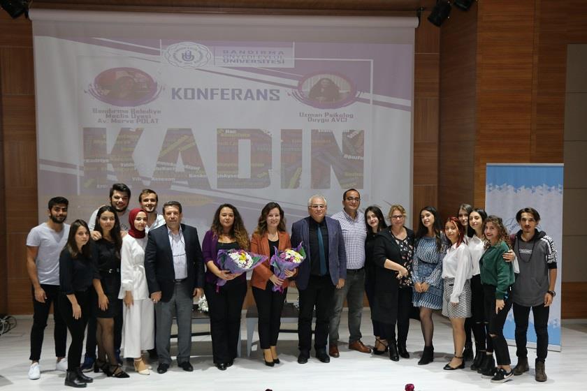 Atatürkçü Düşünce Topluluğumuz tarafından kadına yönelik şiddete karşı "Kadın" konulu konferans düzenlendi. Konuşmacı olarak Bandırma Belediye Meclis Üyesi Av. Merve Polat ve Uzman Psikolog Duygu Avcı'nın katıldığı konferansa Bandırma Belediye Başkanı Av. Tolga Tosun, Rektör Yardımcımız Prof. Dr. Alpaslan Serel, üniversitemiz personeli ve öğrencilerimiz katıldı.