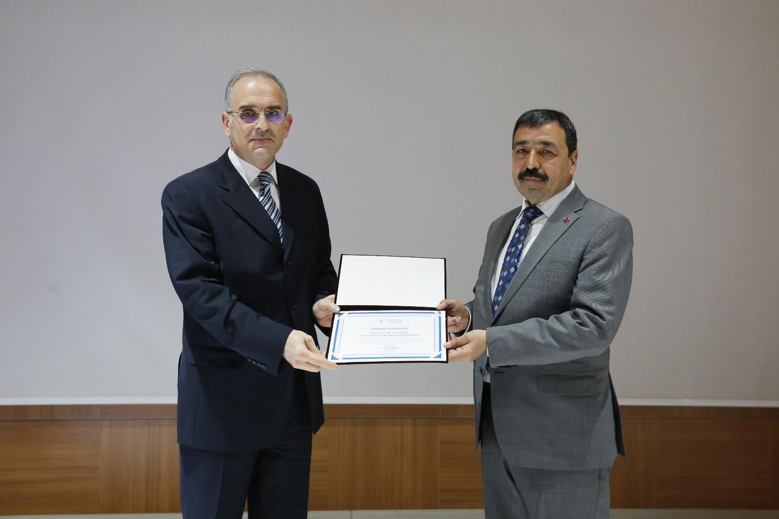 “Türkiye Yüzyılının Başında” seminer serisi kapsamında düzenlenen “Türkiye Yüzyılında Fıkhî Mirasımız” konulu seminer, konuklardan gelen soruların cevaplandırılmasının ardından günün anısına çekilen hatıra fotoğrafı ile son buldu. Program sonunda Rektörümüz Prof. Dr. İsmail Boz ve İslami İlimler Fakültesi Dekanımız Prof. Dr. Abdurrahman Özdemir, davetli konuşmacımız İzmir Katip Çelebi Üniversitesi Rektörü Prof. Dr. Saffet Köse’ye kitap ve teşekkür belgesi takdim etti.