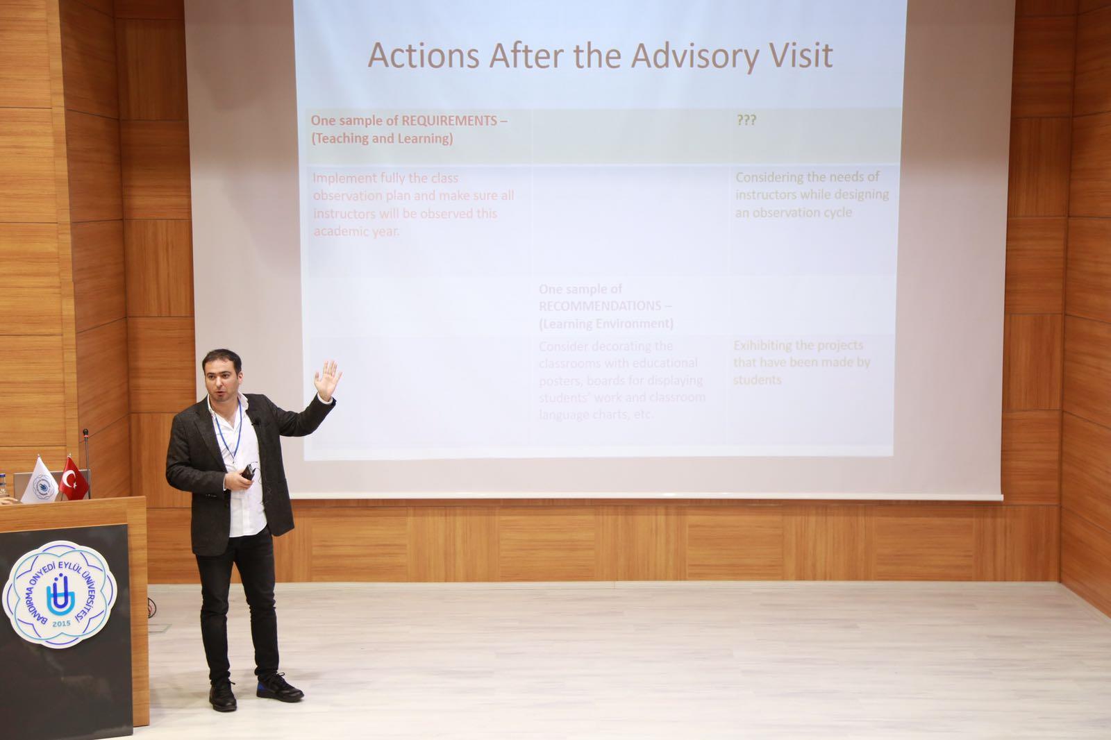 Konferansın ikinci gününde Özyeğin Üniversitesi’nden Gökçe Ünlü ve Serkan Aras, İstanbul Teknik Üniversitesi’nden Hacer Şivil, Beykent Üniversitesi’nden Ceren Aktay Eryılmaz ve Gizem Arslan, İngiltere Eaquals Akreditasyon Müdürü Ludka Kotarska, Pakistan Khyber Sağlık Üniversitesi Kalite Gelişim Müdürü Syeda Asiyah Bukhari, Washington İngilizce Akreditasyon Komisyonu Müdürü Dr. Mary Reeves, Bahreyn Üniversitesi’nden Kalite Güvencesi ve Akreditasyon Merkezi Müdürü Dr. Bassam AlHamad, İzmir Ekonomi Üniversitesi’nden Dr. Bahar Gün, Yaşar Üniversitesi’nden Ian Collins ve Amerika Tennessee State Üniversitesi’nden Engin Ayvaz sunumlarını gerçekleştirdiler. Konferansın ikinci gününde yoğunlaşılan konu ise akreditasyon ve kalite güvencesinin nasıl yapıldığı ve nasıl sürdürülebileceği üzerine oldu. Çalıştaylarla devam eden programda vak’a analizleri ve örnekler üzerinden katılımcılar birbiriyle etkileşim halinde çalışmalar yürüttü.