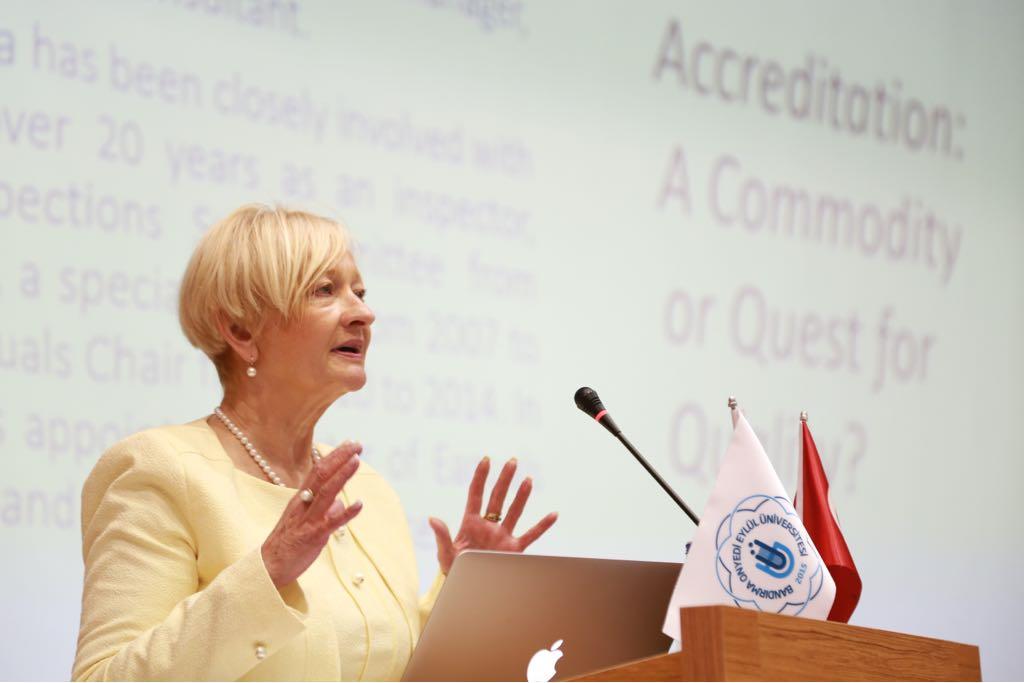 Konferansın birinci gününde Konferans Düzenleme Kurulu Başkanı ve Üniversitemiz Öğretim Üyesi Dr. Donald Staub, İngiltere Eaquals Akreditasyon Müdürü Ludka Kotarska, Amerika Birleşik Devletleri Akreditasyon Komisyonu Müdürü Dr. Mary Reeves, Bahreyn Üniversitesi’nden Kalite Güvencesi ve Akreditasyon Merkezi Müdürü Dr. Bassam AlHamad, Pakistan Khyber Sağlık Üniversitesi Kalite Gelişim Müdürü Syeda Asiyah Bukhari, British Council Temsilcisi Ayşen Güven, Cambridge Üniversitesi’nden Mustafa Akıncıoğlu, Pearson Eğitim’den Tony Gurr ve Türkiye’de de kuruluş aşamasını tamamlamakta olan Dil Eğitim Değerlendirme ve Akreditasyon Kurumu (DEDAK) sunumlarını gerçekleştirdiler. İlk günkü sunumlarda, dünyada akreditasyona neden ihtiyaç olduğu, kalite sisteminin neden var olduğu, yükseköğretim kurumlarının neden buna ihtiyaç duyduğu ve neden çok önemli hale geldiği konuları ele alındı.
