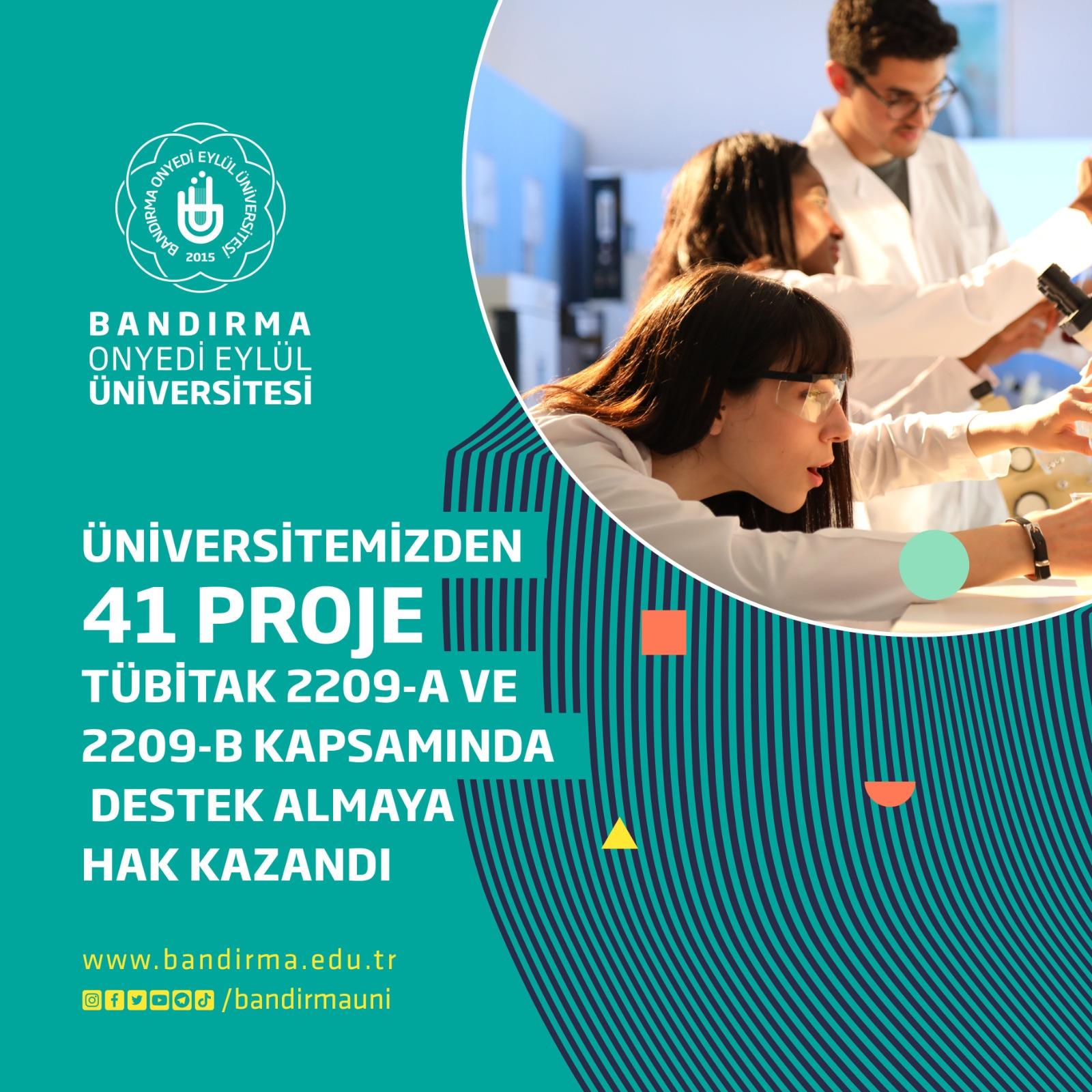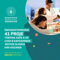TÜBİTAK 2209-A kapsamında Sağlık Bilimleri Fakültemizden 11, Susurluk Meslek Yüksekokulumuzdan 10, Ömer Seyfettin Uygulamalı Bilimler Fakültemizden 6, İktisadi ve İdari Bilimler Fakültemizden 3, İnsan ve Toplum Bilimleri Fakültesi ile Mühendislik ve Doğa Bilimleri Fakültemizden 2’şer, Denizcilik Fakültesi ile Spor Bilimleri Fakültemizden 1’er proje olmak üzere toplamda 36 proje desteklenmeye hak kazandı.
